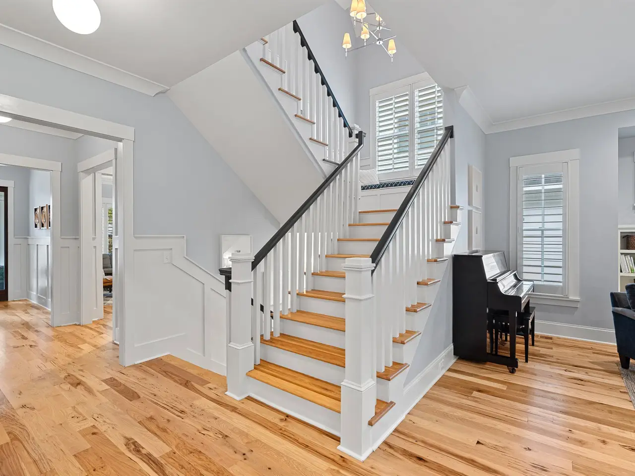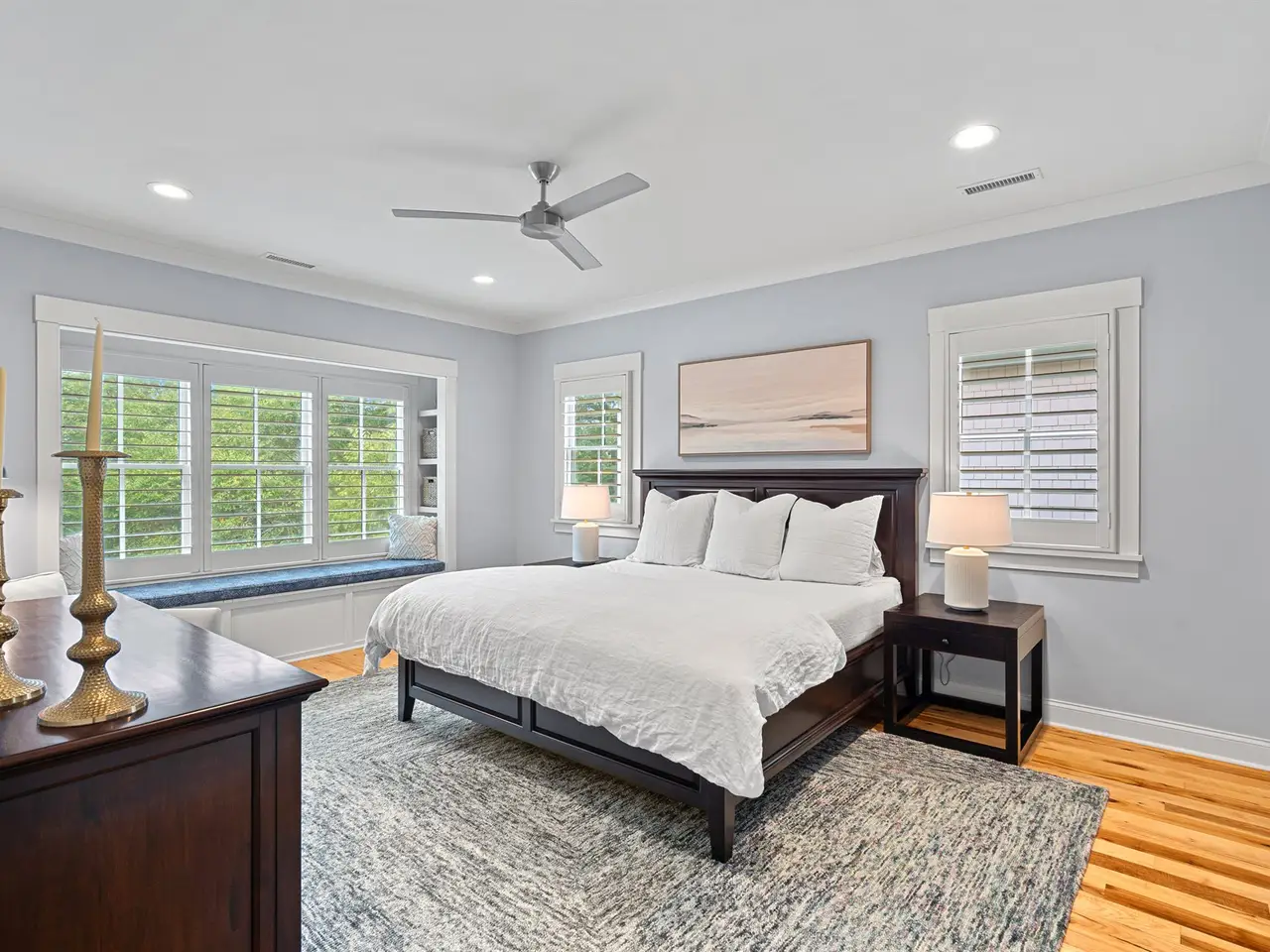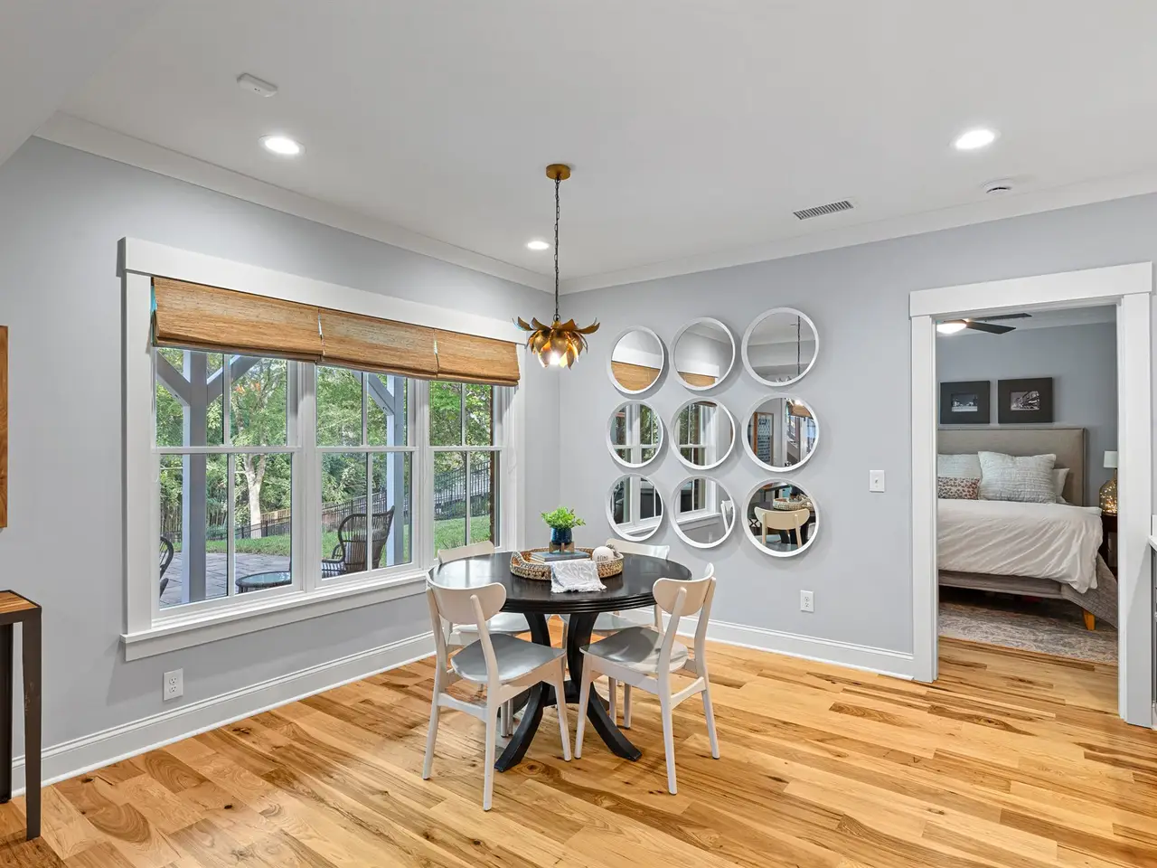 Welcome home to this beautiful gem just blocks from Davidson College and historic downtown! This exceptional John Marshall Custom Home blends timeless elegance with modern sustainability, proudly LEED Certified and designed for multigenerational living. Six bedrooms and five baths showcase thoughtful craftsmanship, real hardwood floors throughout, and custom wood closet shelving in every room. The light-filled plan features rich hickory floors, a chef's kitchen with quartz countertops, Thermador appliances, double ovens, gas cooktop, and large island. The family room with gas fireplace and built-ins opens to a serene screened porch overlooking the wooded greenway. A main-level office/bedroom with full bath offers flexible living options.Upstairs, the primary suite impresses with a spa bath, soaking tub, large walk-in shower, and expansive closet. The finished basement offers a second family room with kitchenette, bedroom, bath, play nook, and rock-climbing wall. Outdoor living shines with a covered patio, swing, Clearlight Sauna, and stone terrace perfect for relaxing or entertaining. Set in Davidson's most sought-after community, this home offers comfort, connection, and sustainability at its finest.