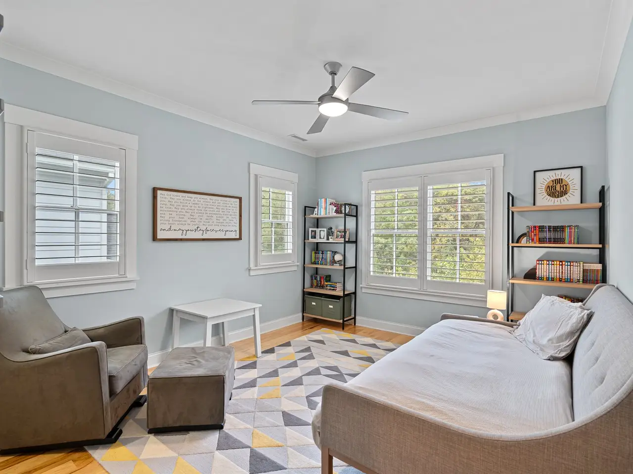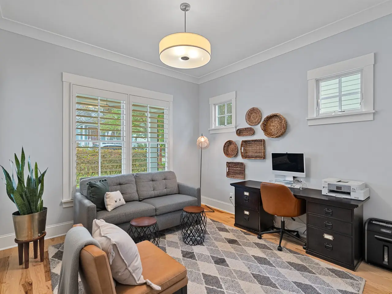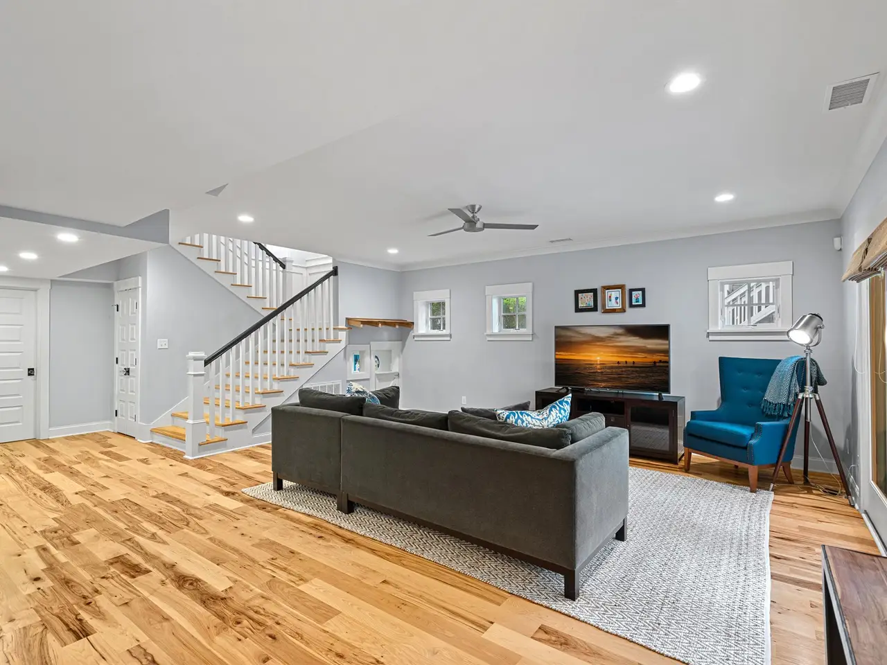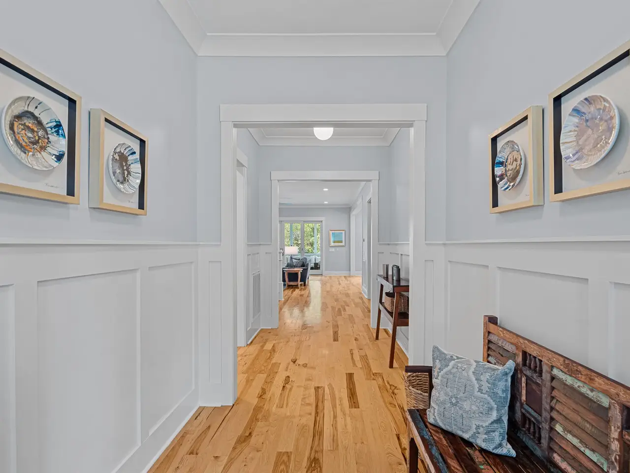 Welcome home to this beautiful gem just blocks from Davidson College and historic downtown! This exceptional John Marshall Custom Home blends timeless elegance with modern sustainability, proudly LEED Certified and designed for multigenerational living. Six bedrooms and five baths showcase thoughtful craftsmanship, real hardwood floors throughout, and custom wood closet shelving in every room. The light-filled plan features rich hickory floors, a chef's kitchen with quartz countertops, Thermador appliances, double ovens, gas cooktop, and large island. The family room with gas fireplace and built-ins opens to a serene screened porch overlooking the wooded greenway. A main-level office/bedroom with full bath offers flexible living options.Upstairs, the primary suite impresses with a spa bath, soaking tub, large walk-in shower, and expansive closet. The finished basement offers a second family room with kitchenette, bedroom, bath, play nook, and rock-climbing wall. Outdoor living shines with a covered patio, swing, Clearlight Sauna, and stone terrace perfect for relaxing or entertaining. Set in Davidson's most sought-after community, this home offers comfort, connection, and sustainability at its finest.