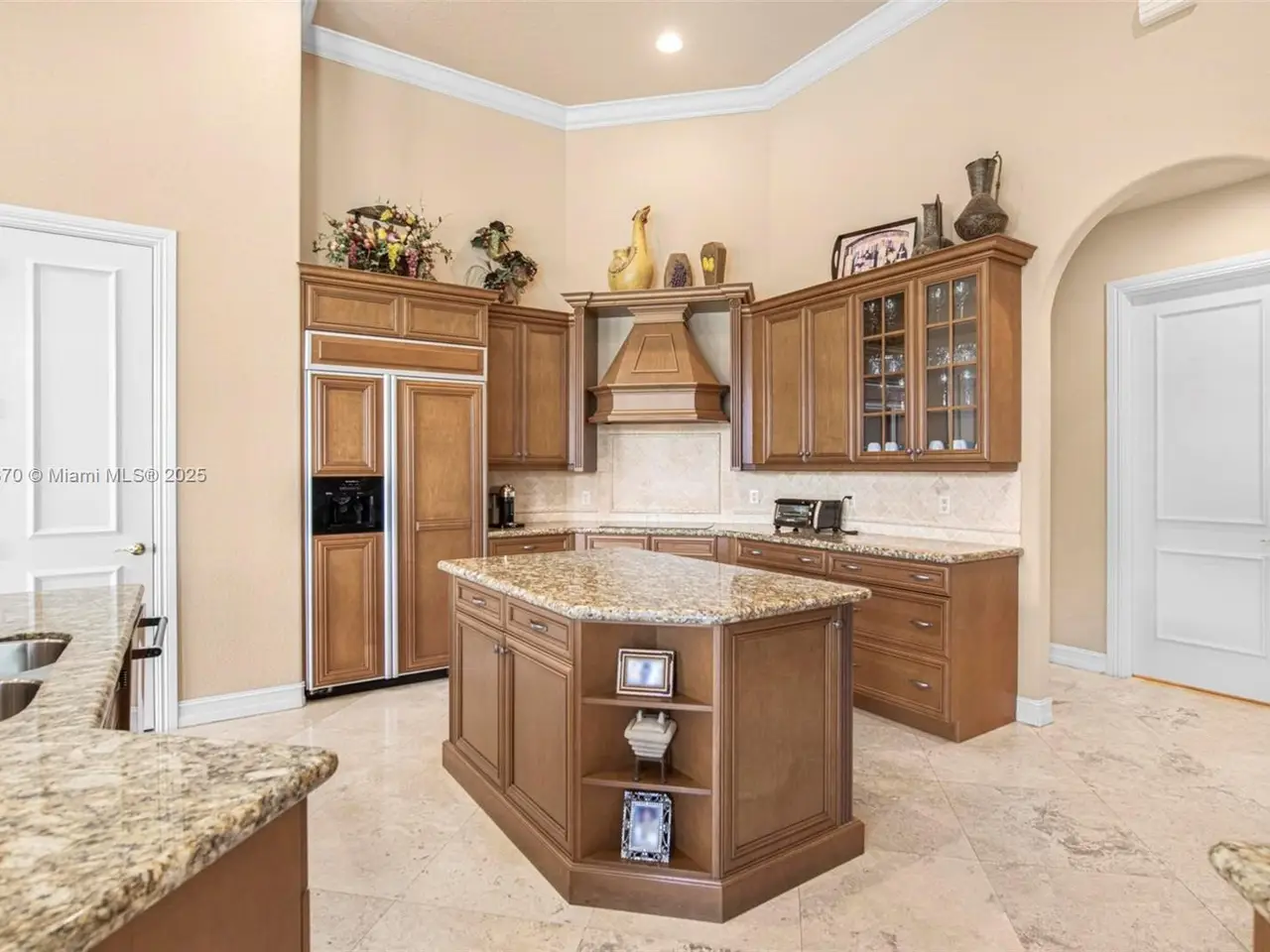 Custom gourmet kitchen opening to light-filled living spaces
