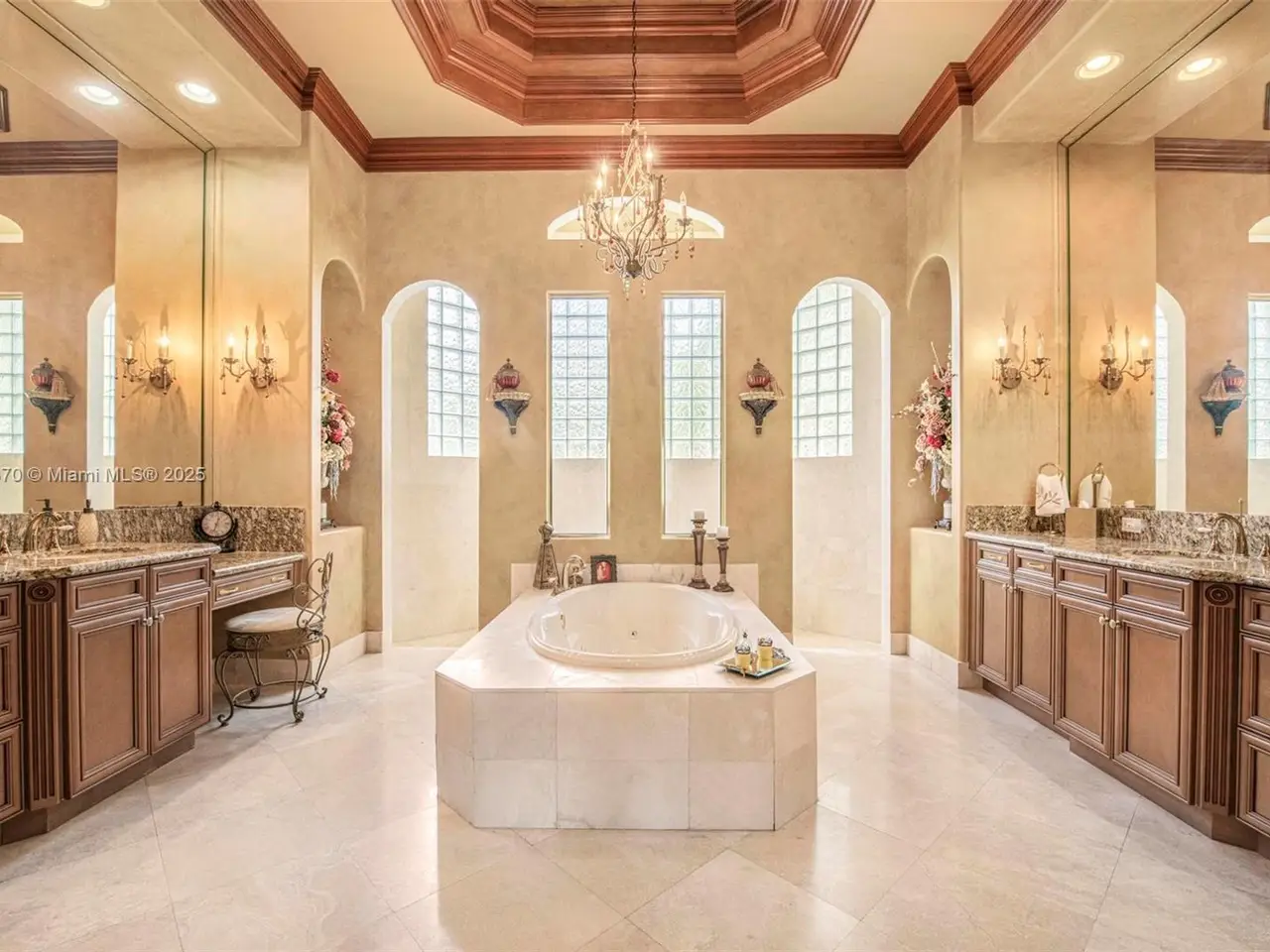 Luxurious primary suite with sitting area and dual walk-in closets