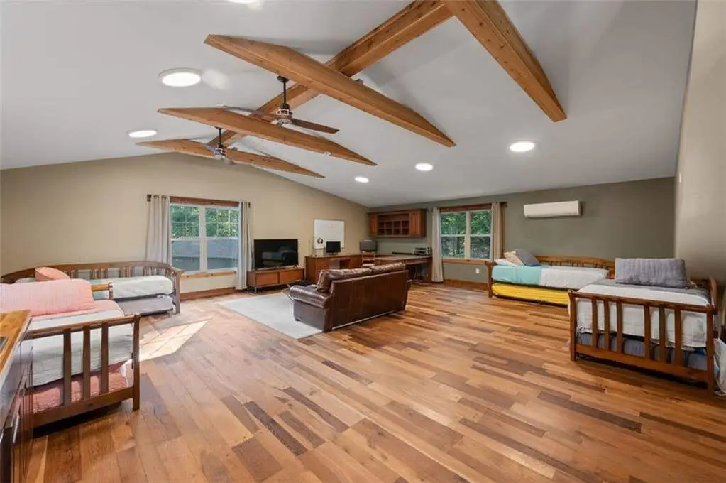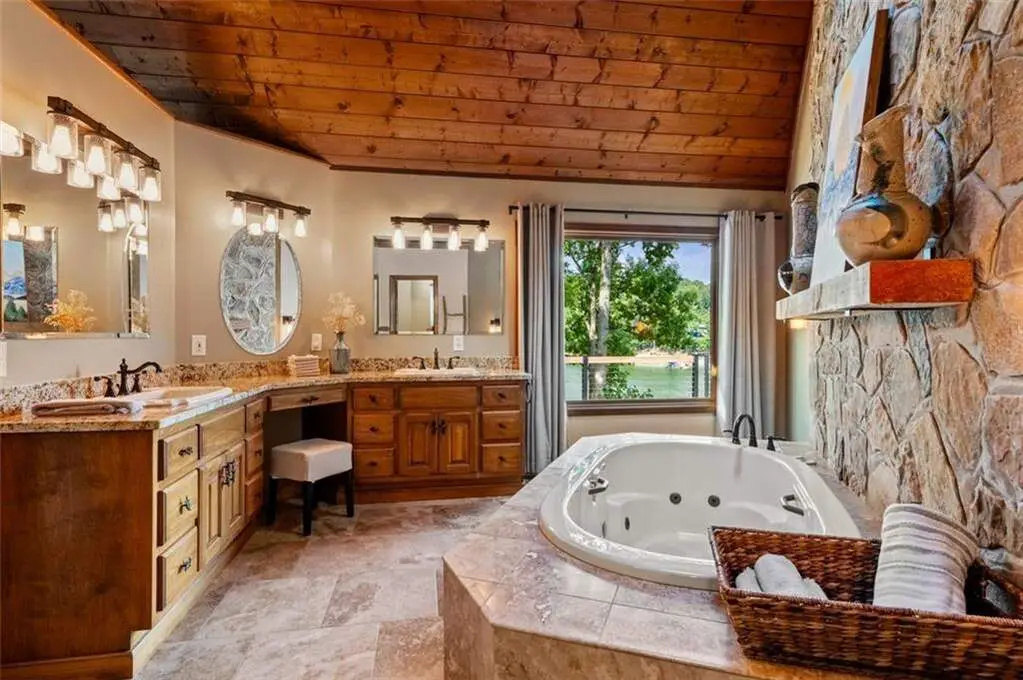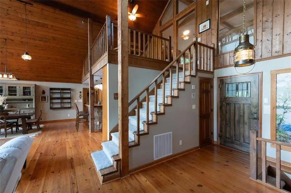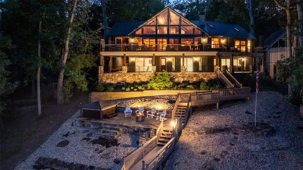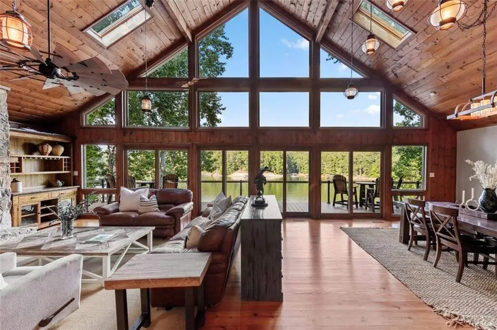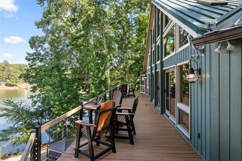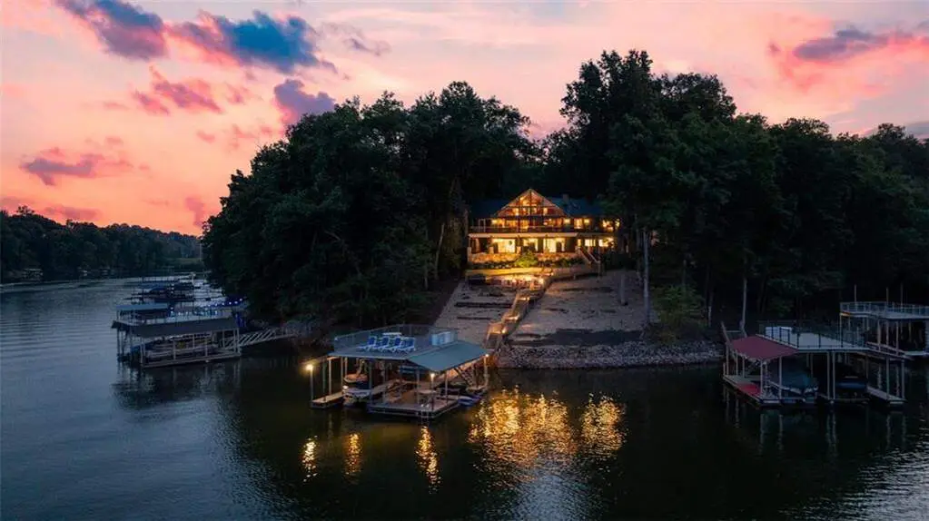 Imagine waking up to panoramic 180 views of Lake Lanier, where the sunrise paints the sky and the water stretches endlessly beyond your back door. Perfectly positioned on a private point lot, this rare property delivers the best of resort-style living without restrictions or dues. Just a short stroll from the award-winning Chestatee Golf Course and Restaurant, it's where lake life and luxury living truly meet. Few homes on Lake Lanier can match what this one offers! Year round deep water, breathtaking sunrise vistas, and The Army Corps of Engineers line that runs all the way into the lake, unlocking endless opportunities for your dream backyard oasis. Picture an infinity edge pool spilling toward the shoreline, a terraced garden, or an outdoor entertaining space like no other. Here, imagination becomes reality. Follow the professionally landscaped, stepped path to your private 32x32 double-slip dock with a party deck, complete with an 8,000-lb boat lift and new jet ski ports. Whether you're hosting friends or going for a quiet paddle at sunrise, every day is a lake day. Designed with both relaxation and entertaining in mind, the home offers two expansive Trex decks, a new hot tub with automatic cover, and an oversized flagstone patio ideal for fireside evenings under the stars. The entire back of the house is framed in sliding glass doors, creating a seamless flow between indoor comfort and outdoor living. Inside, light filled spaces open to sweeping lake views from nearly every room. The main level primary suite is a warm, inviting retreat with wide plank pine floors, while the chef's kitchen features a gas range, double ovens, and granite countertops. Upstairs, a spacious loft adds flexibility for a bunk room, office, or epic game room. On the terrace level, you'll find three bedrooms, including a private suite with its own fireplace, plus an additional living room and an incredibly designed bathroom that elevates guest comfort. This level was created with gathering in mind.