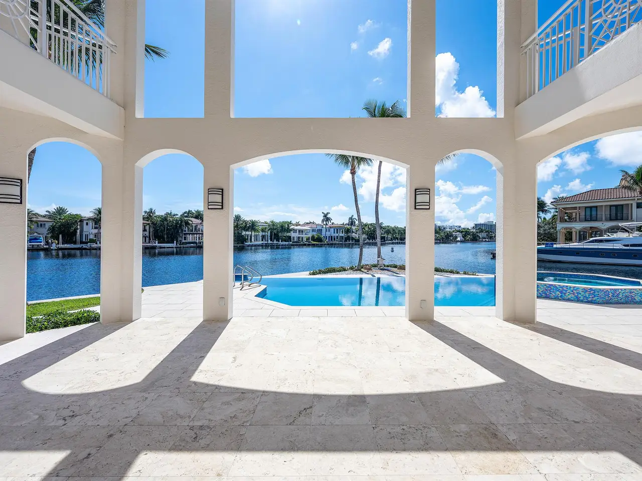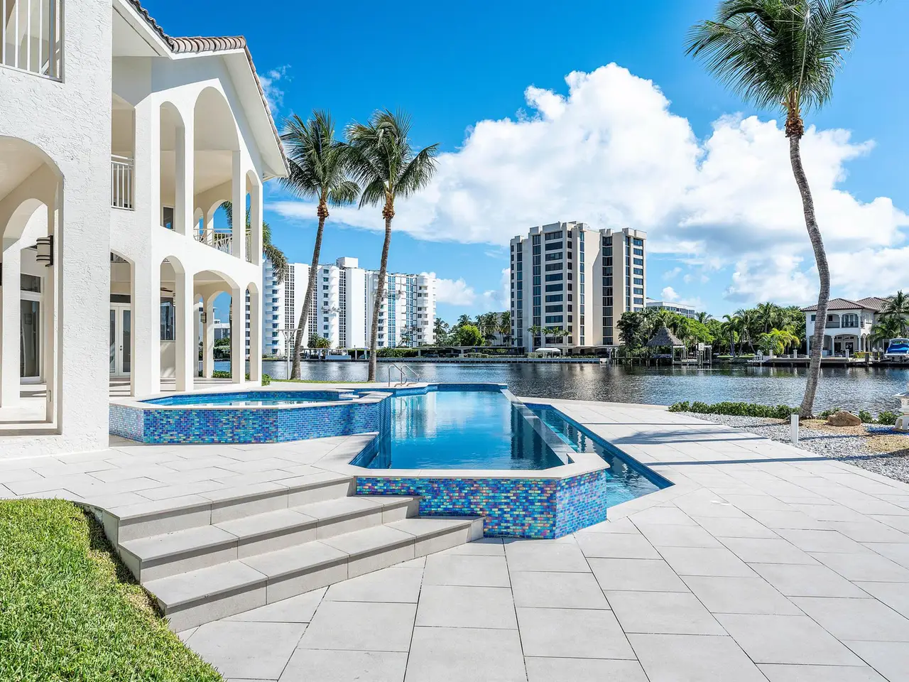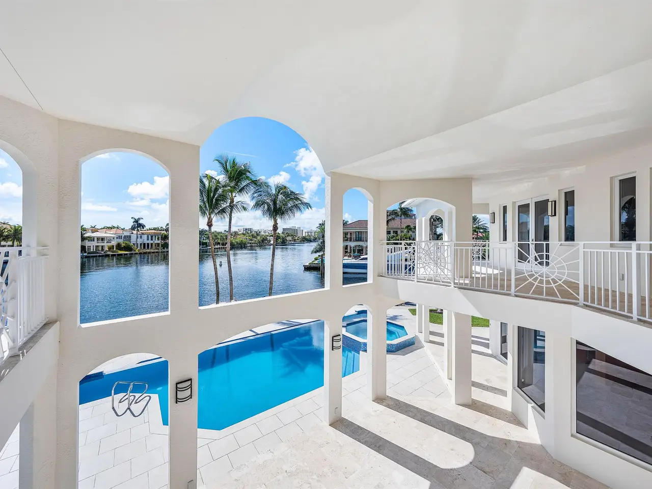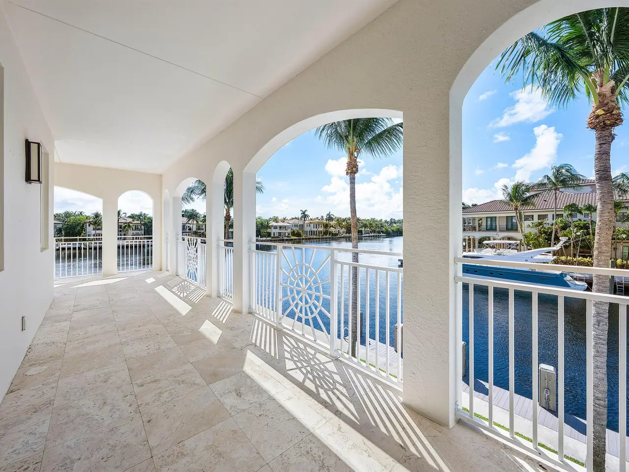 Exceptional Waterfront Estate | Intracoastal Point Lot. This extraordinary residence offers over 7,300 ft under air plus an additional 2,000 ft of covered outdoor living space and balconies, creating the perfect blend of indoor-outdoor living. Featuring 5 bedrooms and 9 baths, this estate is thoughtfully designed for both elegance and comfort, with two primary suites, one on each floor. Situated on a coveted point lot in Delray Beach Florida, the home enjoys 126 ft of direct Intracoastal frontage and 125 ft of canal frontage, with direct ocean access and no fixed bridges. A 50 ft dock with electric service and a 100 ft canal width allow for effortless yacht maneuvering and docking. From the moment you enter, you're captivated by panoramic water views from every room. The