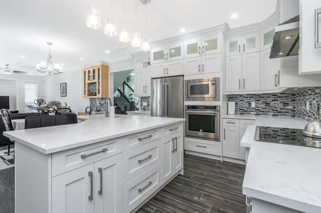 A distinguished custom built, two-storey w/bsmnt (3 level) home offering over 5,200 sq.ft. of refined living on a gated 9,315 Sq.ft huge lot. Thoughtfully designed, this home blends elegance with function has total 9 Bdrm & 8 Bath, with main level offers, open foyer, Gourmet chef’s kitchen, spacious SPICE/Wok kitchen, Living rm, family rm, 1 guest room with full ensuite bath, Den/Bdrm, 2pc powder bath, large patio. Above 4 spacious bdrms with + 3 full Bath, nice Loft & Laundry. The lower level features a 2 bed legal suite plus potential for an additional 1 or 2 bed suite with separate entries. Fenced large yard, vaulted ceilings, built-in vacuum, AC/HRV, Alarm system & superior Roxul insulation. Ample parking, RV space, and a finished 12' x 10' wired shed complete this exceptional offering.