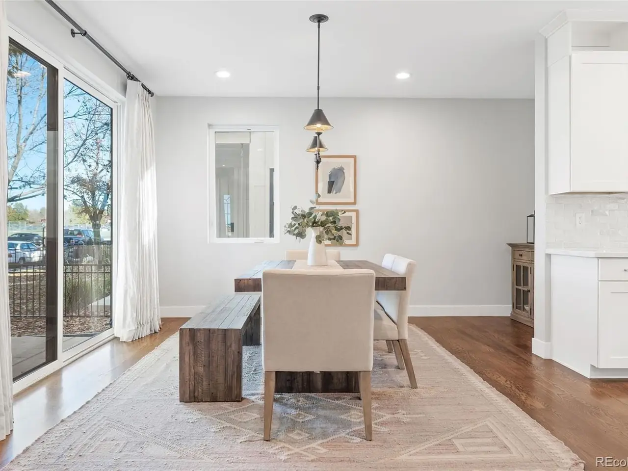 Warm and welcoming, this modern Cory-Merrill home features an expansive open floor plan flooded with natural light throughout. With high ceilings and hardwood floors that carry throughout the main floor, youre welcomed into the dining room and spacious new kitchen, located at the heart of the home. Renovated in 2025, the kitchen features new Moroccan Zellige tile backsplash, quartz countertops, and new lighting, as well as KitchenAid range, dishwasher and refrigerator, creating a sophisticated space ready for any cook. With room for many, the white oak 10-foot island provides enough counter space for socializing or meal time. Just off the kitchen is a cozy breakfast nook with built-in banquette seating, as well as a walk-in pantry and a separate mini bar area for entertaining. The great room features a 2-way fireplace that looks over the backyard patio, perfect for summer nights out or warm nights in. A generous mudroom with built-ins provides catch-all space for shoes and jackets, and a private main floor office is perfect for any work-from-home days. Upstairs, a large primary suite with a private deck, fireplace and luxurious 5-piece bathroom looks over the backyard. Three additional bedrooms upstairs offer flexible living space, a full bathroom and separate laundry room with washer, dryer and storage. The well-appointed lower level includes an additional bedroom and bath, large gym, and a grand rec/media room flex space with an L-shaped bar, dishwasher, and fridge perfect for game days or movie nights. With four bedrooms upstairs, this centrally located property is a unique gem just minutes to both Cory Elementary, C3 and Merrill Middle schools and a quick drive to Cherry Creek North or I-25. This home wonderfully marries clean, modern living with warm, inviting design.