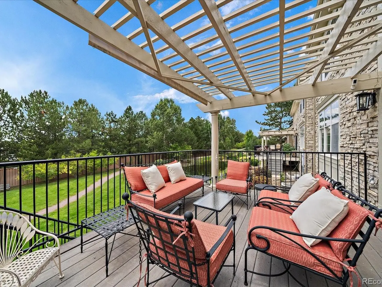 Luxury Maintenance-Free Living in the Heart of DTC Discover the perfect blend of elegance, convenience, & low-maintenance living in this exceptional residence, ideally situated within the gated and private enclave of The Villas at Cherry Hills. This spacious 4-bedroom (1 non-conforming), 4-bath garden-level end unit lives like a single-family home while offering the ease of a lock-and-leave lifestyle. Inside, youll find thoughtful design and flexible spaces for todays lifestyle, including two luxurious primary suitesone on the main level and another upstairsfeaturing a full walk-in dressing room with custom built-ins. A main-level office, a light-filled loft, & a full guest suite in the finished basement provide plenty of room for work, play, & overnight guests.The open, airy floor plan is bathed in natural light and showcases an oversized chefs kitchen with 42-inch cabinetry, slab granite counters, stainless appliances, & a generous center island. The kitchen flows seamlessly into the vaulted family room with a cozy gas fireplace & sliding doors that open to an expanded Trex deckthe perfect spot to relax or entertain while overlooking the serene pond, greenbelt, & the majestic pines of Cherry Hills with mountain views beyond.Additional highlights include hardwood floors, plantation shutters, a large basement rec room, exterior electric shades for privacy and security, and an attached 2-car side-load garage.At The Villas, the HOA takes care of everythingroof, exterior, lawn care, snow removal, water, & sewerso you can spend time enjoying life & less time worrying about maintenance. Step outside your door and walk to Belleview Stations shops and restaurants, the High Line Canal, & adjacent parks & trails. Light rail and major roadways just minutes away, making commuting and travel effortless.This is one of the most coveted locations within The Villasprivate, serene, & move-in ready. Experience the ultimate in luxury, convenience, & peace of mind.