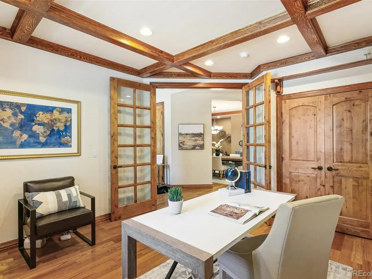 Nestled on a coveted block in Observatory Park, this custom-built masterpiece exudes modern comfort. Thoughtfully designed and meticulously maintained, the home features soaring vaulted ceilings and lots of natural light streaming through wood-trimmed windows. The upper level includes 4 spacious bedrooms and 3 bathrooms. On the main floor, a private study provides the perfect setting for remote work. The chef's kitchen, equipped with a pantry and complemented by Alder woodwork throughout, flows seamlessly into the expansive living spaces. A large main-floor laundry room adds convenience to everyday life. The fully finished basement is an open and versatile floorplan, complete with a wet bar and a wine room, 2 additional bedrooms, and a 3/4 bath. There's no shortage of storage space, and the oversized 2-car garage with epoxy flooring ensures practicality and style. Picturesque backyard, featuring a flagstone patio shaded by a majestic Siberian elm, ideal for gatherings or entertaining evenings. Elegant finishes such as oak flooring, coffered ceilings, hand-troweled walls, and art niches elevate the homes character. Located on a serene street with no through traffic, this property is just a short walk from Observatory Park Elementary and Observatory Park itself.