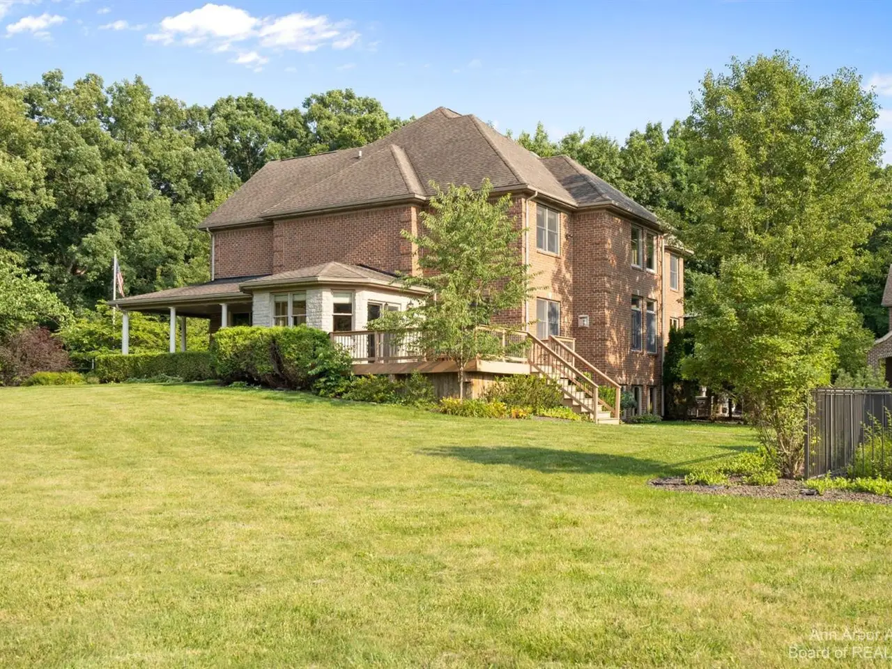 Custom Built brick & stone home with wow-factors inside & out! Showcasing 6800 sq ft, including the finished lower level, this amazing light-filled floor plan offers high-end finishes throughout. The first floor showcases a generous great room with gas FP that is adjacent to the eat-in area & stunning gourmet kitchen with a large granite island & beverage bar, formal living room, formal dining room (currently a toy room), generous office that could be a 6th bedroom, 4 season sunroom, full bathroom, powder room & laundry room. Upstairs is the well-appointed primary suite with a huge WIC & private bonus room perfect for a home office, princess suite, super functional Jack & Jill bathroom between the 3rd & 4th bedrooms. Tons of closets throughout this home. Tastefully finished lower level with a large family room with game area, spectacular wet bar, 5th bedroom, full bathroom & still plenty of storage. Located on 11 private acres this haven includes a 40x60 all brick outbuilding with a loft area, RV bay plus room for lots of toys/cars. The in-ground pool, spa bubbler & patio will transform you to your private spa retreat. Offering a mature landscaping package, seasonal flower gardens and a young orchard with apple, pear, apricot and plum trees with abundant wildlife; deer, turkeys, herons, cranes and so much more. Wrap around porch with cozy forest views, a haven for morning coffee and stunning sunrise plus an amazing back deck & pergola. Ready made private trails with a play area for kids. This home has the capability for multi generation living. The acreage includes a private pond and an abundance of privacy. Located in Cobblestone Farms offering 2 miles of private walking trails. This home is the total package with an exuberant amount of space inside and outside!