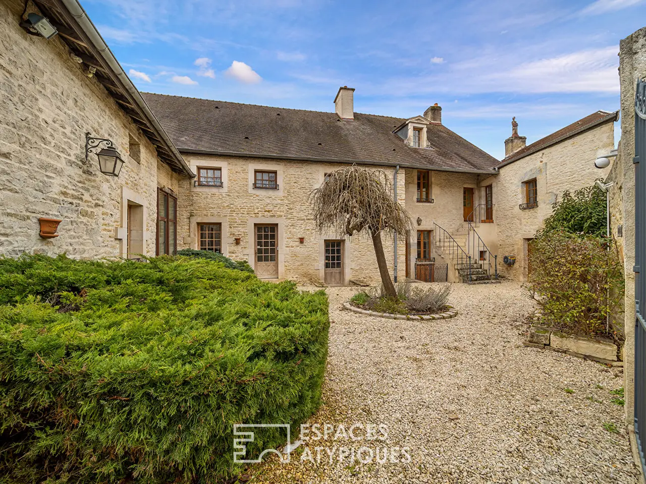Located in a sought-after village 15 minutes from Dijon, this property offers a privileged living environment. It consists of a main stone house of approximately 477 sqm and a separate guest house, all on a plot of 2000 sqm with a swimming pool. The main house is distinguished by its generous volumes and authentic charm. On the ground floor, you will discover a spacious entrance, a large living room of 80 sqm with large bay windows, a living room with a double-sided fireplace, a dining room, a separate kitchen, a gym (which can be converted into a separate studio thanks to an external access), as well as a boiler room and an additional room that can be connected to the rest of the house. The whole property benefits from direct and level access to the garden. Upstairs, a mezzanine overlooking the living room, 4 bedrooms, 2 shower rooms and a 5th bedroom in the attic complete the sleeping area. In the annexes, you will find a cellar in the basement and several outbuildings, including a magnificent living room with a glass roof, fireplace and rotisserie, ideal for convivial meals. The guest house of 59 sqm, on two levels, offers all the necessary comfort to welcome family or friends: a beautiful living room with terrace, directly opening onto the garden, and a kitchen. Upstairs, a large bedroom with bathroom, enjoying an unobstructed view from the bay window and the balcony. A rare property, combining space, charm and comfort, in the heart of a calm and sought-after environment. A unique opportunity to discover! DPE: Primary energy consumption: D 196 kWh/m2 per year Greenhouse gases: D 47 CO2/M2/year Estimated average amount of annual energy expenditure for standard use, established from 2021 energy prices between 9,636 and 13,038 of 2021 prices. Information on the risks to which this property is exposed is available on the Georisques website for the areas concerned. Nathalie FENART commercial agent EI - RSAC 337 560 569 DIJON: 06.42.82.87.16REF. 790EB Additional information* 14 rooms* 6 bedrooms* 1 floor in the building* Outdoor space : 2025 SQM* Property tax : 4 451 €Energy Performance Certificate Primary energy consumption d : 196 kWh/m2.yearHigh performance housing*A*B*C*196kWh/m2.year47*kg CO2/m2.yearD*E*F*G Extremely poor housing performance* Of which greenhouse gas emissions d : 47 kg CO2/m2.yearLow CO2 emissions*A*B*C*47kg CO2/m2.yearD*E*F*G Very high CO2 emissions Estimated average annual energy costs for standard use, indexed to specific years 2021, 2022, 2023 : between 9636 € and 13036 € Subscription Included Agency fees The fees include VAT and are payable by the vendor Mediator Mediation Franchise-Consommateurswww.mediation-franchise.com29 Boulevard de Courcelles 75008 Paris Information on the risks to which this property is exposed is available on the Geohazards website : www.georisques.gouv.fr