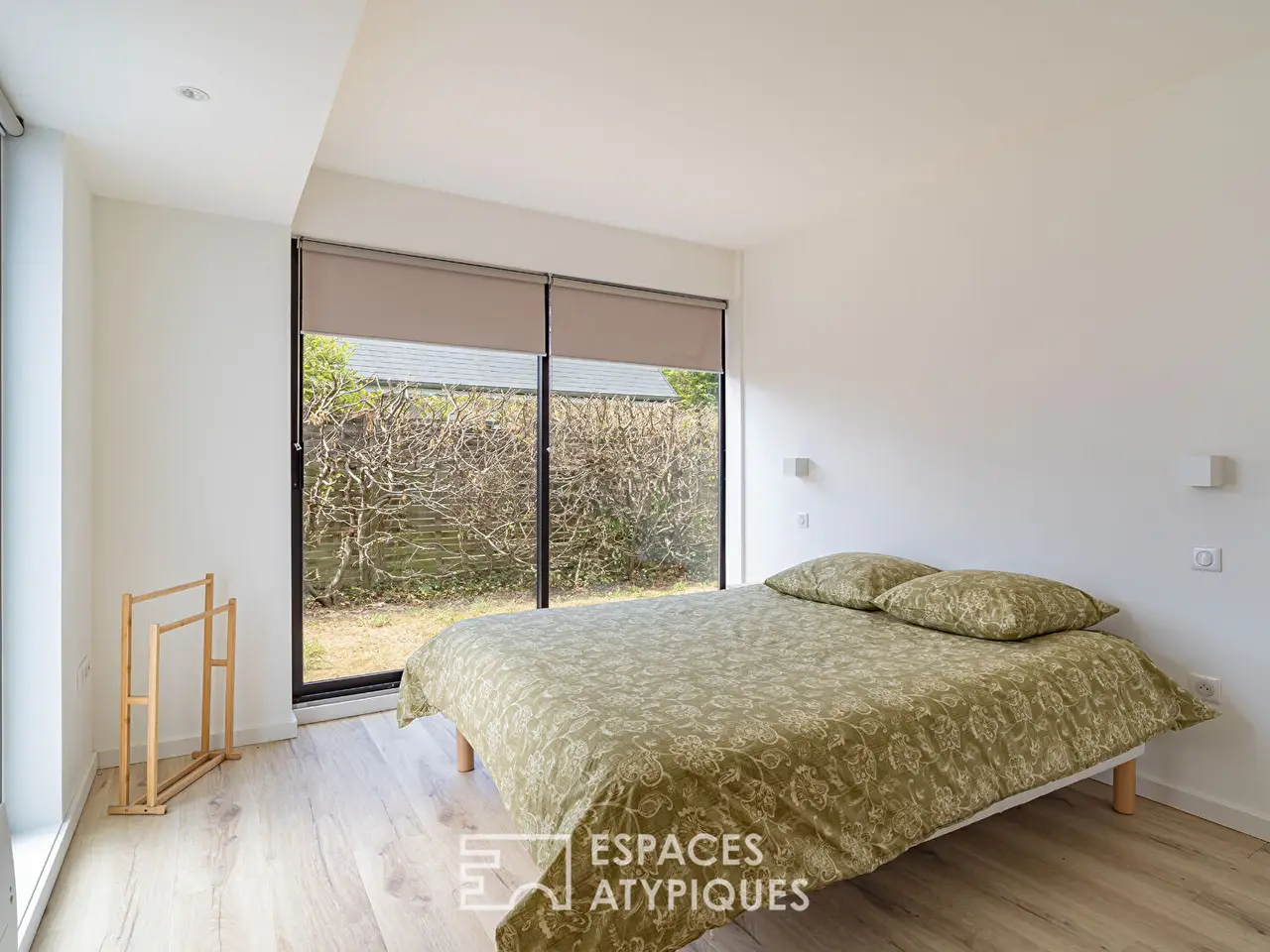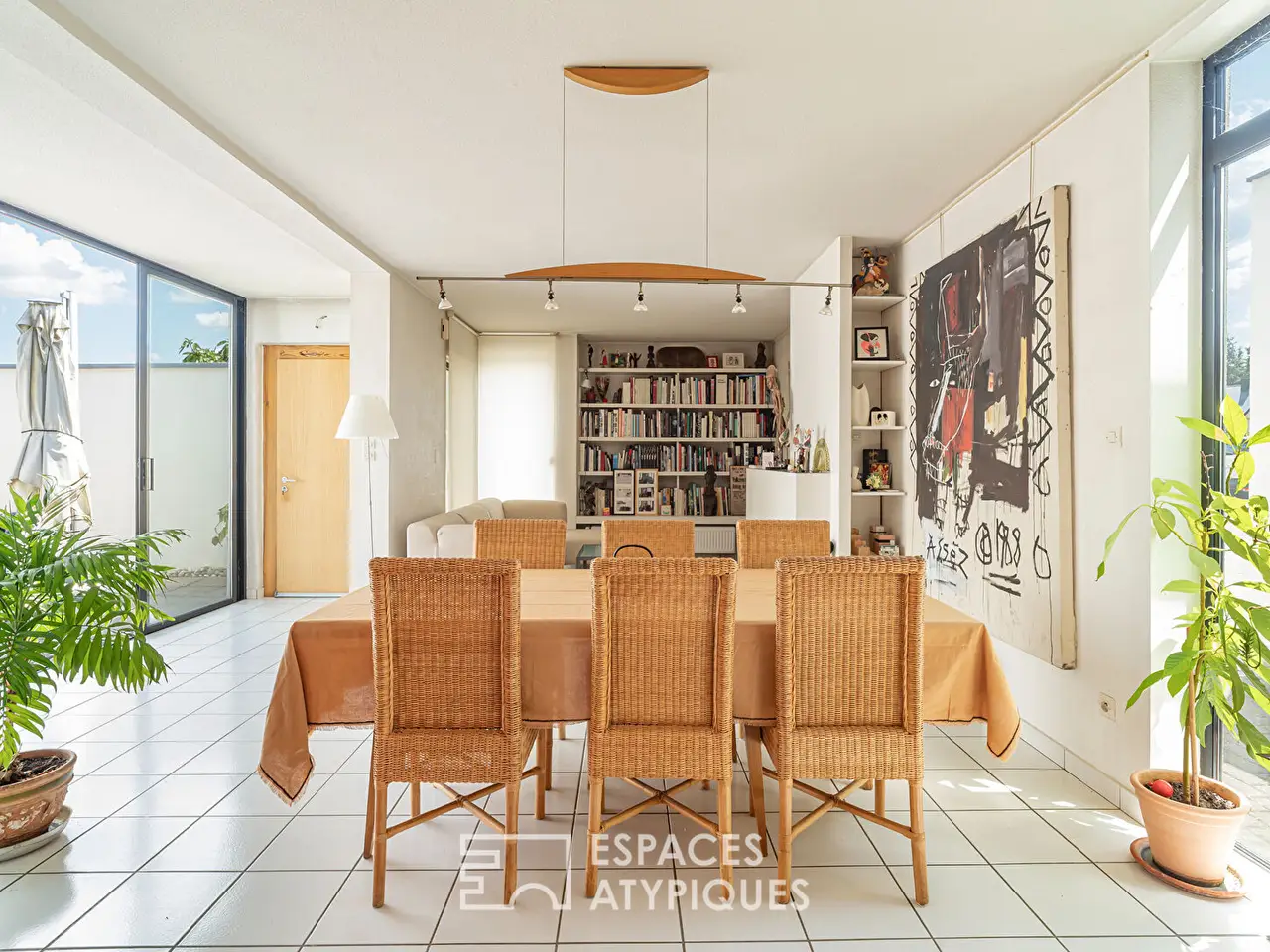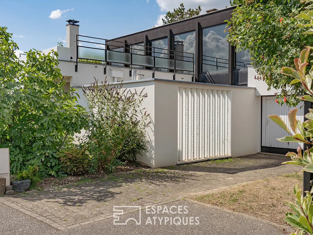 Just 20 minutes from Strasbourg, this Le Corbusier-inspired architect-designed house offers a total living area of 288 m2 on a wooded plot of over 10 acres. Organized around a light-filled central patio, it offers a rare living environment, combining generous volumes, exceptional brightness, and an intimate garden shielded from view. Included in the living space is a 90 m2 adjoining apartment, which is completely independent and offers multiple possibilities for use.The interior layout is very fluid and has been designed to offer comfortable living on one level. The ground floor features an entrance hall leading to the living areas: a fully equipped kitchen opening onto the patio, a dining room, and a cozy living room with a fireplace, ideal for relaxing moments. A second living room extends these spaces and provides direct access to the garden. This level also offers a bedroom, a shower room, a functional pantry, and a garage. Upstairs, an extension built in the 1990s houses three bedrooms, a bathroom with a skydome, and a light-filled mezzanine with access to a roof terrace, ideal for creating a private outdoor space at height.The adjoining apartment is entirely on one level and has independent access. The entrance opens onto a custom-built office space. Comprising a living room and a dining room, the living area extends into a separate kitchen and two pleasant terraces nestled in a lush green garden. A bathroom and two bedrooms overlooking the garden complete the amenities. Completely self-contained, it is an ideal solution for hosting a loved one, considering a home-based business, or generating rental income.Outside, a large tree-lined garden extends the living space, providing peace and privacy. This green space, with no neighbors overlooking, is a real living space in its own right, perfect for relaxation. The central patio, the true heart of the house, invites contemplation, creating a constant dialogue between inside and outside. The environment is peaceful, in a sought-after residential area, with all amenities close by: shops, schools, and access to major roads.This unique property appeals with its distinctive architecture, modular spaces, and remarkable potential. A discreet address, designed for lovers of unique properties A confidential address, designed for lovers of unique properties looking for a different and inspiring living environment.4 outdoor parking spacesShops 5 minutes' walk awaySchools 7 minutes' walk awayREF. 1581Additional information* 8 rooms* 6 bedrooms* 1 bathroom* 2 shower rooms* 1 floor in the building* Outdoor space : 1027 SQM* Property tax : 1 753 €Energy Performance CertificatePrimary energy consumptione : 253 kWh/m2.yearHigh performance housing*A*B*C*D*253kWh/m2.year8*kg CO2/m2.yearE*F*GExtremely poor housing performance* Of which greenhouse gas emissionsb : 8 kg CO2/m2.yearLow CO2 emissions*A*8kg CO2/m2.yearB*C*D*E*F*GVery high CO2 emissionsEstimated average annual energy costs for standard use, indexed to specific years 2021, 2022, 2023 : between 2980 € and 4080 € Subscription IncludedAgency feesThe fees include VAT and are payable by the vendorMediatorMediation Franchise-Consommateurswww.mediation-franchise.com29 Boulevard de Courcelles 75008 ParisInformation on the risks to which this property is exposed is available on the Geohazards website : www.georisques.gouv.fr