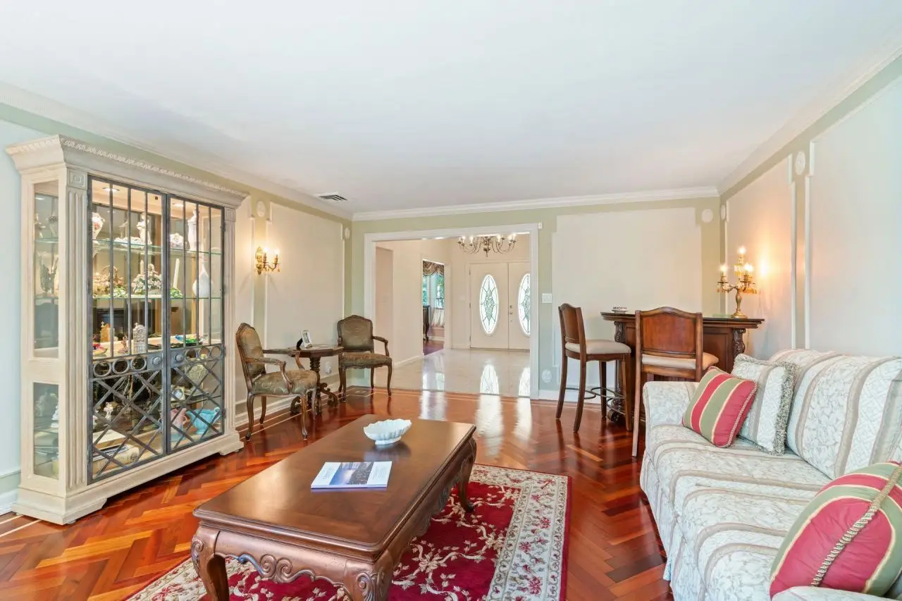 Highly desired Crown Jewel expanded Ranch in the Imperial Gardens Community. 4/5 bedrooms for extended family. Impressive scale in architectural ceiling designs throughout. Elegant Center hall entry, Cathedral Fire-lit great room with custom Windows looking out to a paradise of privacy and green. Brazilian cherry, red oak flooring with Maple Inlays. Precision patterned laid granite flooring throughout. French doors, detailed crown mouldings, Kitchen unparalleled in size and design. All new Kitchen Aid appliances, 1-1/2 inch custom edged finished granite counters, titanium sink, true fan hood, dining peninsula, custom cabinetry and a eat in area with an oversized bay window and country club view. Main primary double room suite/ two walk in closets, sitting boudoir for lounging or personal office/exercise space. En suite features an elegant jet soaker tub area, bidet, private shower, double sinks. Gorgeous Tumble marble, porcelain and ceramic all updated baths. Laundry room on main level, Oversized bedrooms and a fourth bedroom on the opposite side of home for guests/ Mom with private full bath. Massive oversized garage, dare to bring 3 cars here and enter into a finished lower level with private office, bath, sauna, gym and media. Country club back yard features a full entertainment cabana and an oasis of luxury surrounded by specimen trees and shrubs with a Gunite heated luxurious swimming pool, resort style and new walk way to a private wooded back yard for family play. Rare Oversized Ranch home, unmatched in the community and best private location. Commack schools, highways, shopping, restaurants, hospital, parks, train station transportation all at your finger tips. Come home to total Luxury and move right in this pristine four thousand square foot of one level pride of ownership residence. Unmatched elegance without driving to the Hampton's. Everything you wanted in your vision of a new home is here.