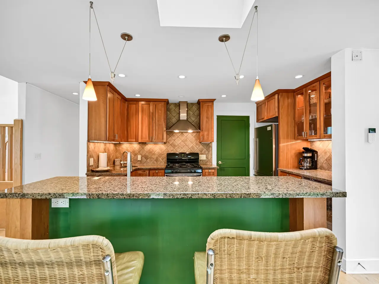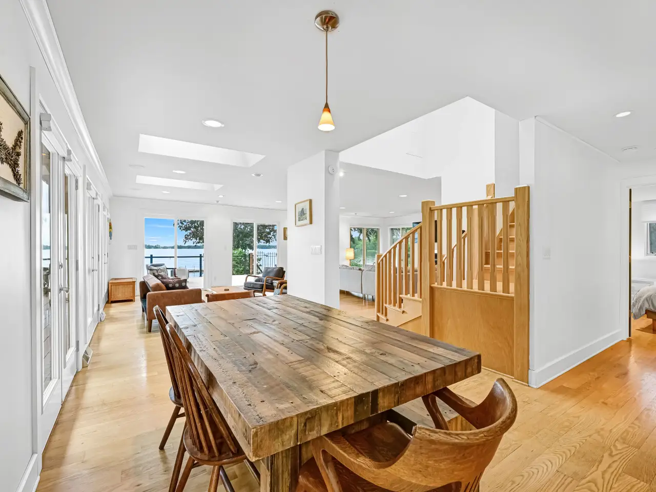 Imagine beginning your day with the breathtaking views of Eagle Lake, presenting a remarkable lakeside living experience. You can enjoy the final days of summer on your 87-foot flat lot, which offers stunning water views from a spacious, modern deck and a newly constructed pier with an expanded platform. Inside, you will find an inviting layout with a kitchen that features a large island, granite countertops, a tiled backsplash, stainless steel appliances, and attractive hardwood flooring. Enjoy the abundance of natural light from the numerous windows and new patio doors that showcase the beautiful lake perspectives from every angle. Two primary bedroom suites, situated on different levels, provide a wonderful sense of privacy for residents. The upstairs suite boasts a private balcony, a gas fireplace, and vaulted ceilings that enhance your appreciation of the peaceful lake views.