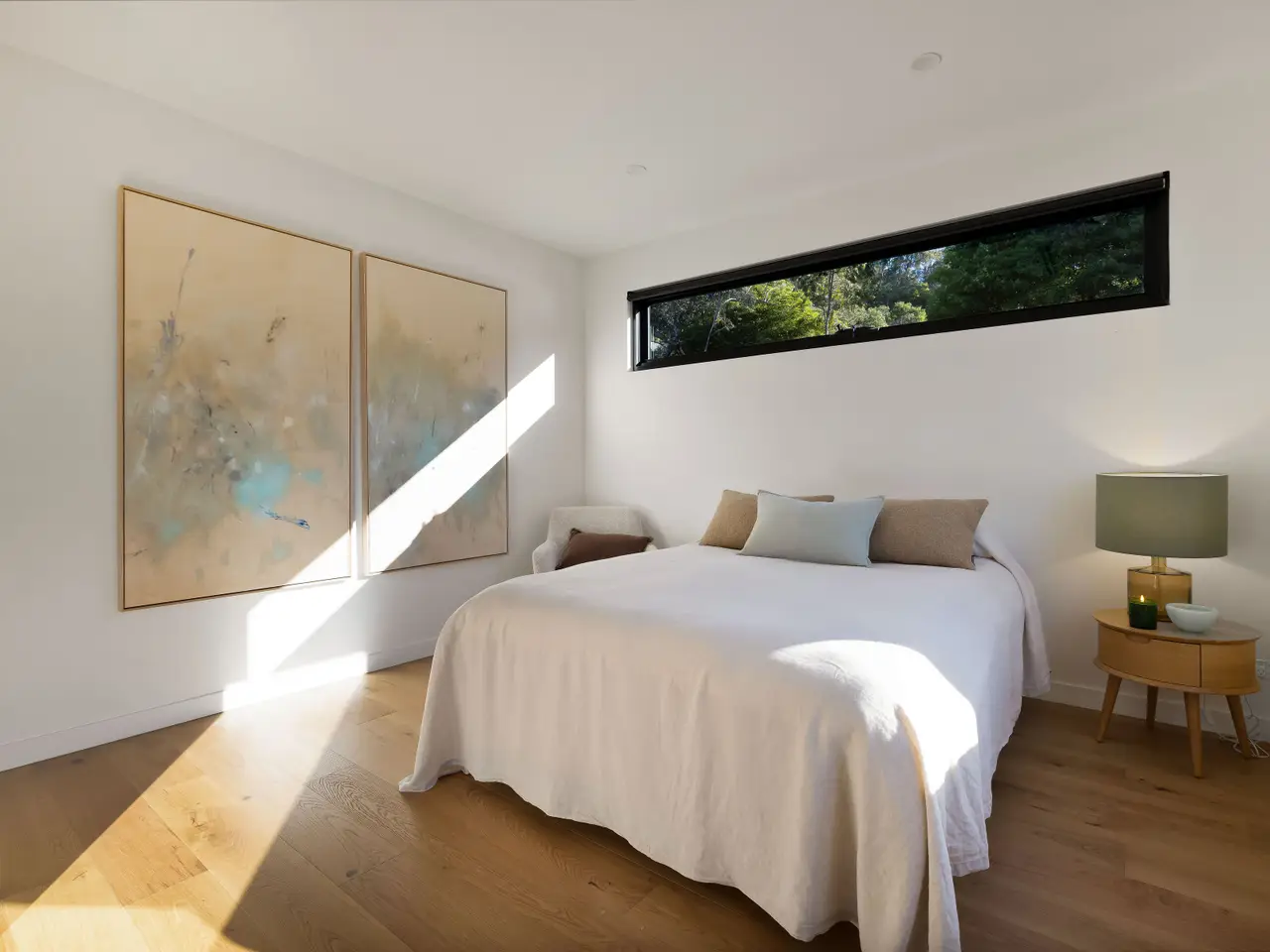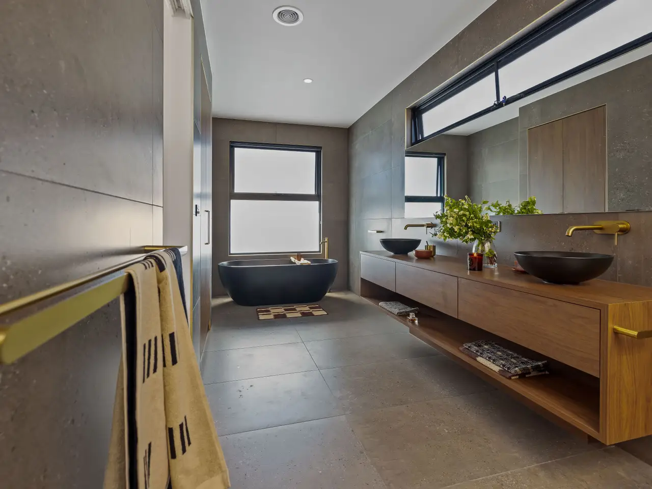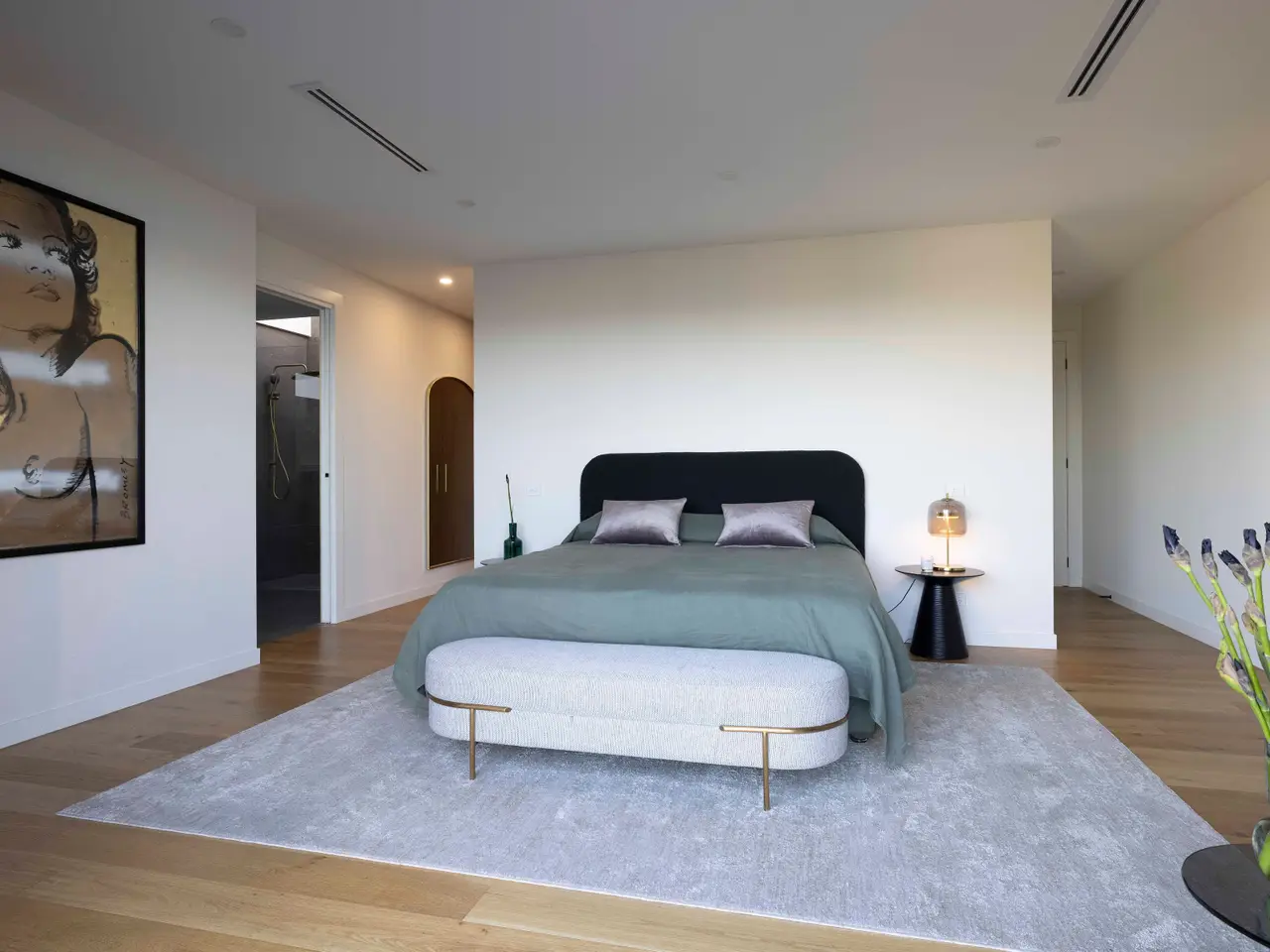 Capturing 180-degree, panoramic views across the coastline to the pristine waters of Port Phillip Bay and beyond, this brand new, architect-designed masterpiece offers more than 60 squares (approx.) of unparalleled luxury in a prized hillside location. Set against the dramatic backdrop of Arthurs Seat State Park, a truly exceptional lifestyle awaits those fortunate enough to secure this incredible property positioned on 1235m2 (approx.) with an 8m x 4m self-cleaning, solar-heated swimming pool and a fire pit area set amongst stunning gardens designed by The Block's Colin Hyett. Evoking sophistication and warmth with premium finishes and exquisite attention to detail throughout, the home boasts a showpiece kitchen with stone benchtops and splashbacks, Smeg appliances plus a large butler's pantry and bar, alongside a vast, ambient living/dining zone anchored by a striking feature wall and wood-burning heater. Designed for indoor/outdoor living, this space flows seamlessly onto a broad balcony with a built-in barbecue area and alfresco / lounge areas that set the scene for sunset drinks, entertaining in style or simple relaxing and enjoying the tranquil surrounds. Enjoy the twinkle of evening lights across the Peninsula from the private master suite which also has balcony access, a generous walk-in robe and a sumptuous ensuite with a bathtub and walk-in shower with a light well. Two additional bathrooms and a powder room are equally well-appointed with floor-to-ceiling tiles, timber accents and brushed brass tapware. Other highlights include an integrated home office and a downstairs second living zone that opens to the pool and outdoor shower with its own entrance and an adjoining bedroom and bathroom, making it ideal for further entertaining or a self-contained teenage / guest retreat. Tinted bronze toughened, double-glazed windows, skylights, two oversized pivot entry doors and electric curtains in the living areas and master suite are quality inclusions along with ducted refrigerated cooling / heating, 15kw solar panels with 24kw batteries, full security system with phone tracking plus a remote double garage, storage room, fruit trees and a vegetable garden. Just minutes to shops, restaurants, cafes, beaches and world-class wineries, hot springs and golf courses, this unique offering is truly one of a kind.