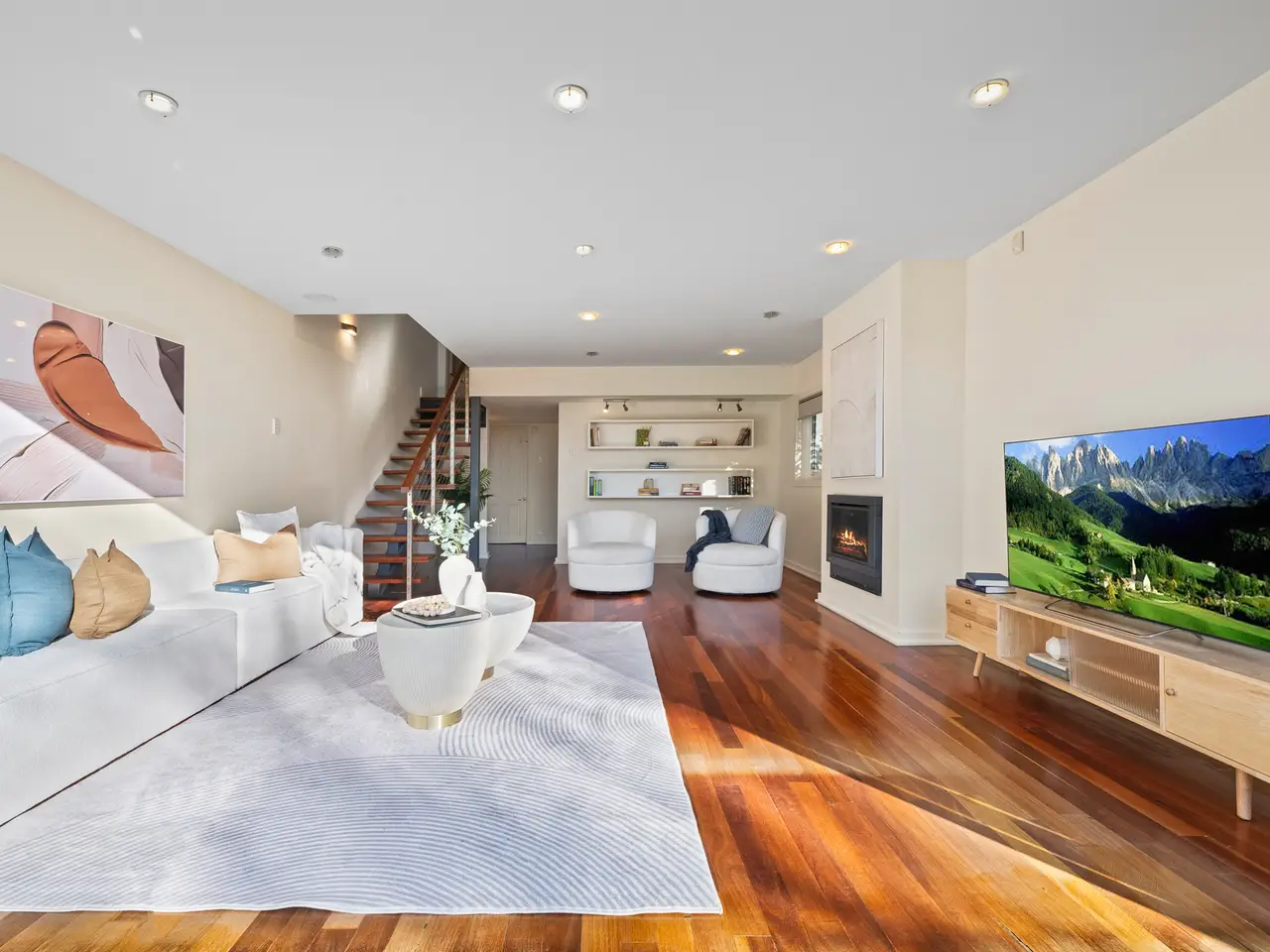Overflowing with elegance, space, timeless appeal and with captivating water views, this impeccably presented semi-detached three level residence is the ultimate indoor/outdoor retreat crafted for effortless family living and entertaining. Designed to harness abundant northern light and seamless alfresco flow, this stylish home enjoys a vibrant waterside setting, with harbour foreshore walks just minutes away. Offering versatility and lifestyle appeal, it sits within footsteps of bustling shops, popular parks, quality schools, and rapid city transport. - A well-considered, family-oriented design with bright interiors and an inviting sense of flow throughout - Expansive three level layout offering multiple formal and informal living zones - Rich timber floors, split system air-conditioning, plantation shutters throughout - Working gas fireplace and bifold doors opening directly to the sunlit backyard - Designer stone kitchen with oversized island bench, premium appliances, and sleek finishes - Four generous double bedrooms, including a private master retreat with walk-in robe, luxe ensuite, and water views - Convenient front car space, two contemporary bathrooms with quality fittings, and internal laundry - Centrally positioned in a high-demand locale, footsteps to cafés, waterside parks, schools, and direct city transport Disclaimer: This website's information has been prepared by Belle Property Drummoyne and/or its agents. While we strive for accuracy, we accept no responsibility for any errors or omissions. Prospective buyers should conduct their own investigations to verify the information.