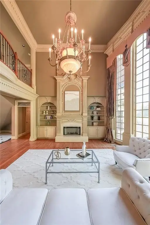 Magnificent four sides brick home with sweeping golf course views in prestigious Sugarloaf Country Club, a guard gated community. This estate home sits on one of the best lots in the community ... it is a premium golf course lot with sweeping views of the 3rd green and fairway, plus it is just under one acre and is set on a cul-de-sac near the gates. The home makes a grand first impression with its circular driveway that also provides plenty of parking. The grandness continues to the interior with a two story foyer graced by a circular staircase, gorgeous chandelier, a dramatic domed ceiling with inset lighting, and beautiful craftsmanship in the trim detail. The banquet-sized dining room and a generously sized fully paneled gentlemans study (with fireplace and built-in bookcases) flank the foyer. Straight ahead through the foyer is the elegantly appointed two story great room with its fireplace, another stunning chandelier, built-in bookcases, and views to the backyard and golf course. The gourmet kitchen is the heart of the floor plan with adjoining octagonal breakfast room, large walk-in pantry, and vaulted keeping room with fireplace and built-ins. The luxurious master suite is spacious and well-appointed with fireplace and his-n-hers closets. Upstairs is a second full master bedroom with the fifth fireplace, plus three additional large bedrooms with ensuite bathrooms and walk-in closets, and also a charming and unique octagonal office area. The terrace is finished with an entertaining bar, poker room, billiards room with the 6th fireplace, media room, and full bathroom and bathroom, plus there is TONS of room for storage. The home is in a great location in the neighborhood, on a cul-de-sac street near the gates with great golf views.