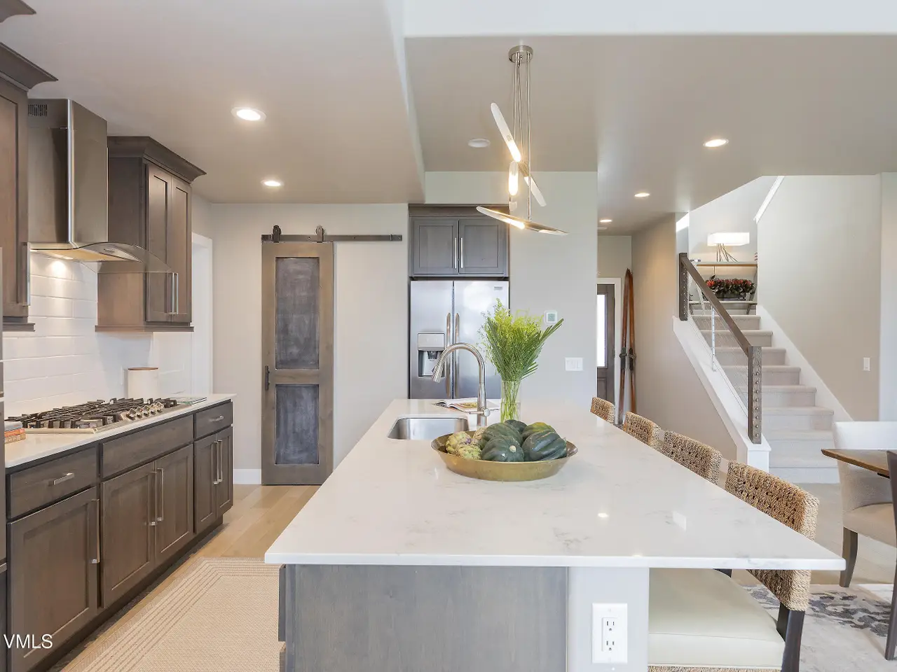Graced with the artistry of a renowned interior designer-whose portfolio includes Mikaela Shiffrin's Vail residence-this exquisitely furnished home is a rare jewel within the vibrant Soleil Homes at Brush Creek community. The main level unfolds in an airy, open-concept design where living, dining, and kitchen flow seamlessly together, enhanced by a flexible room ideal as a study, den, or fourth bedroom. Upstairs, the primary suite is a sanctuary with a spa-like bath and generous walk-in closet, accompanied by a private guest suite with its own ensuite bath. On the lower level, a sprawling family room invites relaxed gatherings, complemented by an additional guest bedroom, full bath, and abundant storage. Outdoor living is equally inspiring, with a welcoming covered porch at the front of the home and a second patio at the back that opens to sweeping views of the Sawatch Mountain Range-ideal for sunrise coffee, alfresco dining, or evenings under the alpenglow skies. Perfectly positioned just steps from the pool, ice rink, bike park, and scenic trails, this residence also offers quick access to Eagle's lively downtown, the Eagle County Airport, and the world-class slopes of Vail and Beaver Creek. A home where refined interiors meet the very best of Colorado mountain living.