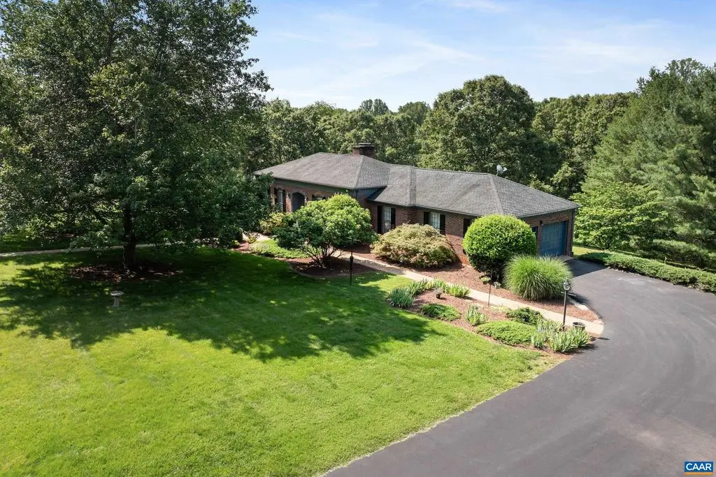 Privacy and peace in a lovely walkable neighborhood of nice homes on large manageable parcels, on a cul de sac. 631 Montei Dr is a wonderful home on a beautifully-landscaped 2 acres, with wildlife, mature trees, and plenty of area/setting for edible growing, if desired. Built by well-respected local builder, Ollie Fitzgerald, the home is a brick single level on a full walk-out basement. Incredibly well-built and maintained by the 2 owners who've called the house their home. Baths have been updated, mechanicals & appliances are all within 10 years of age. The terrace level features good light & great, open storage. There's a workshop, studio/game room/office and 3rd full bath, plus a second family room with fireplace. There is an attached, oversized garage on the main level at the kitchen. Fairgrove neighborhood is a series of three streets (Montei is one of them) off of Bleak House Rd in Earlysville, close to many recreation options... Rivanna River for fishing/rowing/kayaking, Ivy Creek Natural Area & Chris Greene Lake, and 3 or 4 wineries/vineyards are near by. The neighborhood is off the beaten path, but a moments drive to shopping at Hollymead and Stonefield. No HOA; Natural Gas is available; See FEATURES, Floorplan, 3D Tour.