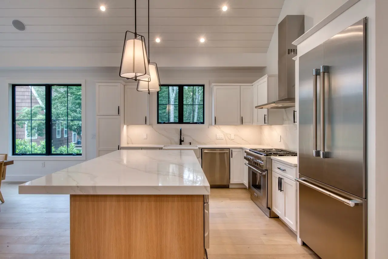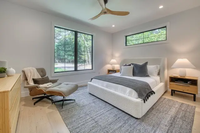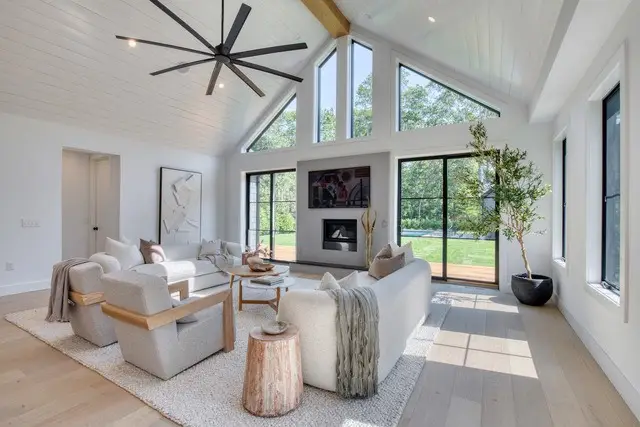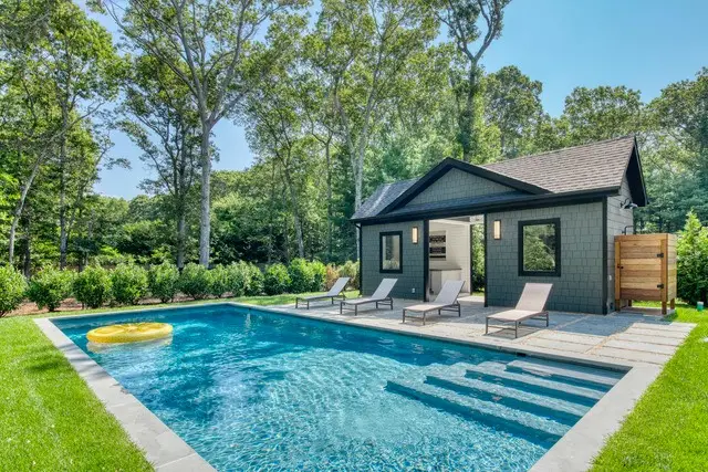 Sycamore Drive your new favorite place to call home! This modern gem features four spacious bedrooms and three and a half baths, all set on a generous half-acre in the vibrant Springs area. As you step through the door, you're met with impressive soaring ceilings and incredible floor-to-ceiling windows that fill the home with natural light. The polished concrete fireplace adds a sleek touch to the open layout, while the 8" white oak flooring brings warmth and elegance throughout. The heart of the home is the custom-designed kitchen, featuring top-of-the-line Thermador appliances and an island topped with an Arctic white and gold vein 2.5-inch quartz countertop. The primary bedroom boasts a luxurious ensuite bath in addition to sliders out to the back deck. There are also two spacious additional bedrooms, each equipped with a generous closet. Need extra space? There's a versatile office or den with a closet, perfect for work or play. Venture to the 2000 sq ft finished expansive lower level, designed for comfort and entertainment. With 9-foot ceilings and an en-suite bedroom, there's plenty of space for everyone to enjoy. The recreation area is perfect for movie nights or game days, and the mechanics room offers ample storage solutions. Plus, enjoy seamless indoor-outdoor living with double French doors that lead to your backyard oasis. Step outside onto your stunning 400 sq. ft. mahogany deck to a beautifully landscaped yard complete with a stylish pool house, equipped with a kitchenette, bath, and outdoor shower right beside a heated 18x38 gunite pool with blue stone patio. This space is tailor-made for summer lounging and epic gatherings with friends and family. Nestled just outside the Historic Springs district. You're only minutes from the breathtaking beaches on Gerard Drive and just a quick ten-minute drive to East Hampton Village, putting you in the best of Springs.