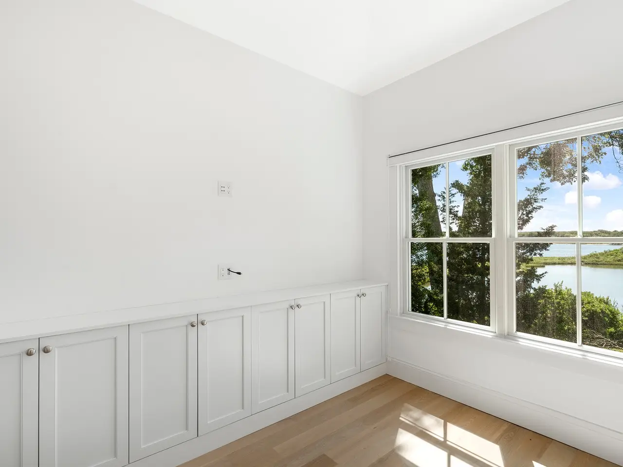 Facing due east for brilliant sunrises with 101' water frontage on Three Mile Harbor, this traditional house was thoroughly renovated in 2022. The upside-down configuration is approximately 3,500 square feet and each floor can operate separate from one another. The main floor has a 23' vaulted ceiling that creates a dramatic space for the living room with fireplace, wet bar with wine refrigerator, dining area and designer kitchen with island, double sinks, dishwashers and generous walk-in pantry. There are 5 bedrooms with 10' tray ceilings and 4.5 baths, two ensuite wings on the main floor, bedroom with private entrance and a separate private office with pocket door. The lower level hosts a living area with kitchenette including sink, dishwasher and refrigerator, two ensuite bedrooms, a miscellaneous room that had been a tackle room with shelving and a large mirror, laundry, massive amounts of storage and double doors leading to the water access. Additional amenities include a Kohler generator, solar panels, electric car charger, county water and a Self-Contained Hydro Action AN600 waste treatment system. The house sits 50 feet from the shoreline and 13 feet above sea level setting up the best 'in your face' pre-existing view of them all. This is the home of the late Hamptons Wellness Foundation creator who was also a life coach and avid sportsman. Beautifully designed, built and sited on 0.54 acre, the house is insulated from traffic noise because of the cul-de-sac location.
