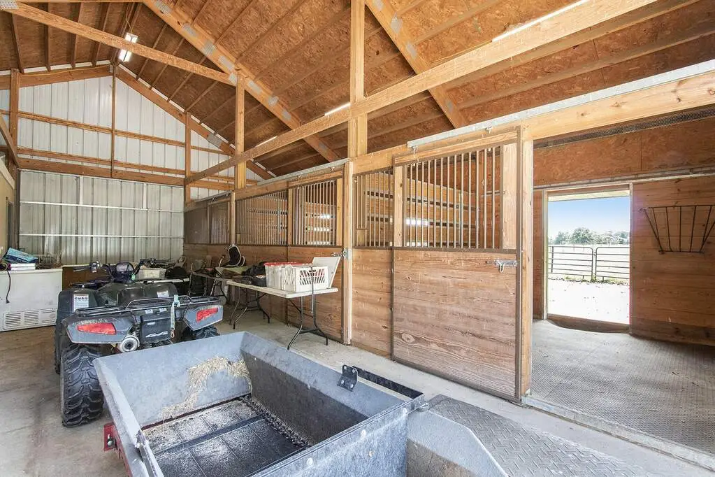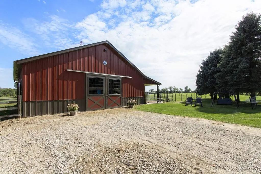 Stunning 4-bed, 3-bath luxury ranch with walkout basement overlooking scenic Pipestone Creek. Extensively remodeled on both levels, this home offers main floor living with laundry, a custom kitchen with quartz countertops, and a spacious deck with serene views. Unique features include a 900 bottle wine cellar, kitchenette in your walk-out basement, and over a mile of trails in the woods to enjoy on horseback or your ATV. The property includes 17 acres with the home, 4-stall Morton horse barn with wash station and tack room, three of the stalls with turn out paddocks attached, 40 x 72 pole barn with a 24 x 40 workshop, 64 x 22 run-in shed, and 7 acres of pastures plus an additional 27 acres of hay field. Ideal for equestrian living. The barn is equipped with security cameras, and pastures are monitored as well. A driveway sensor adds peace of mind, making this an exceptional blend of modern comfort, security, and country charm. Property is for sale with just 17 acres MLS#25046796