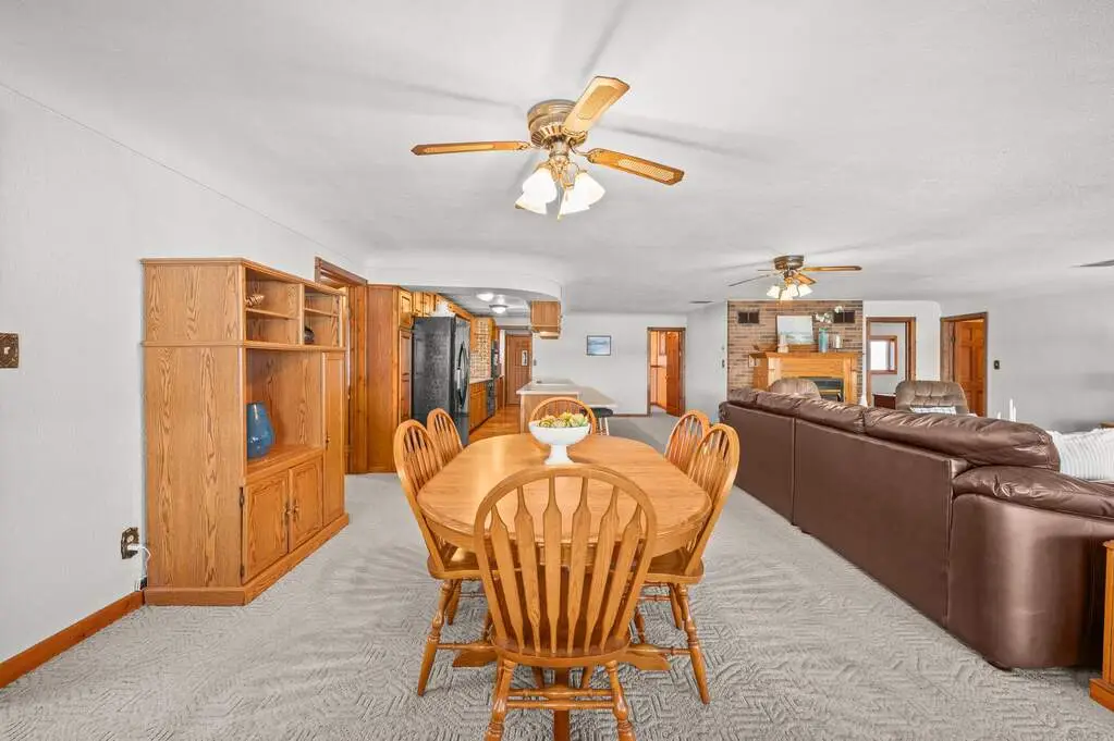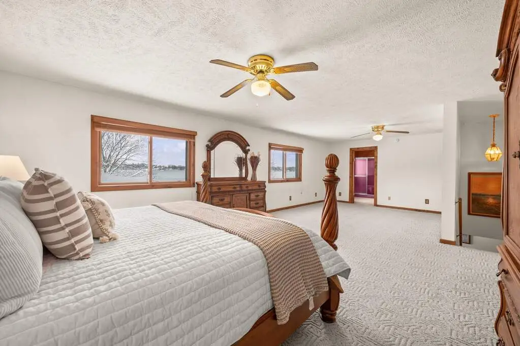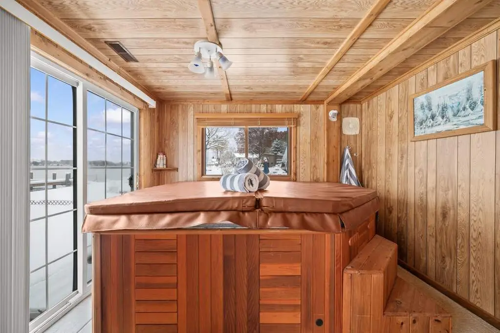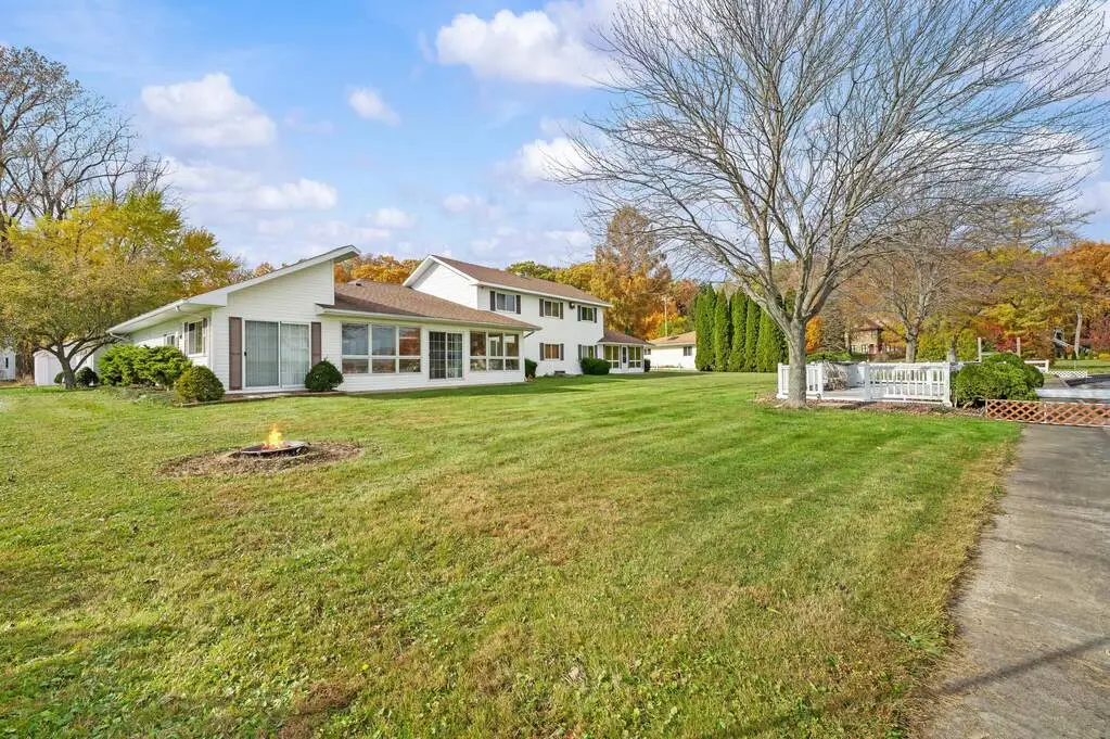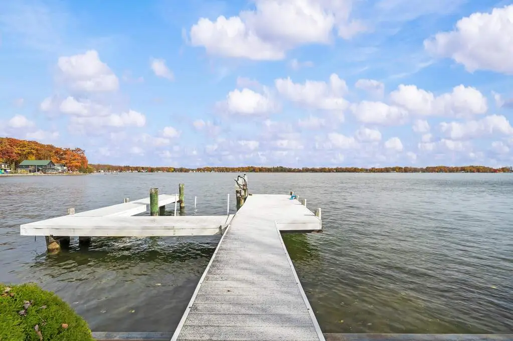 Welcome to Indian Lake in the Sister Lakes area of Southwest Michigan. This expansive property offers 140' of flat, sandy shoreline with peaceful sunrise views. The home lives like a ranch, with the primary bedroom suite located upstairs plus a second ensuite bedroom on the main level. Three additional main-level bedrooms and two more baths offer space for everyone. Enjoy a spacious game room with bar, three-season room, and hot-tub room. A connected 2BR/1.5BA apartment provides flexible space for guests, related living, or rental use. Outdoor living includes a large composite lakeside deck, permanent pier with lift, seawall, and sandy-bottom swimming. Storage is abundant with an attached 2-car garage, detached garage with workshop for boats, lake gear, and golf carts, plus an additional shed. Indian Lake is a 500-acre all-sport lake with a 27-hole golf course, clubhouse, and rare yacht club offering fuel service, social events, and a 4th of July boat parade. 2 hours from Chicago