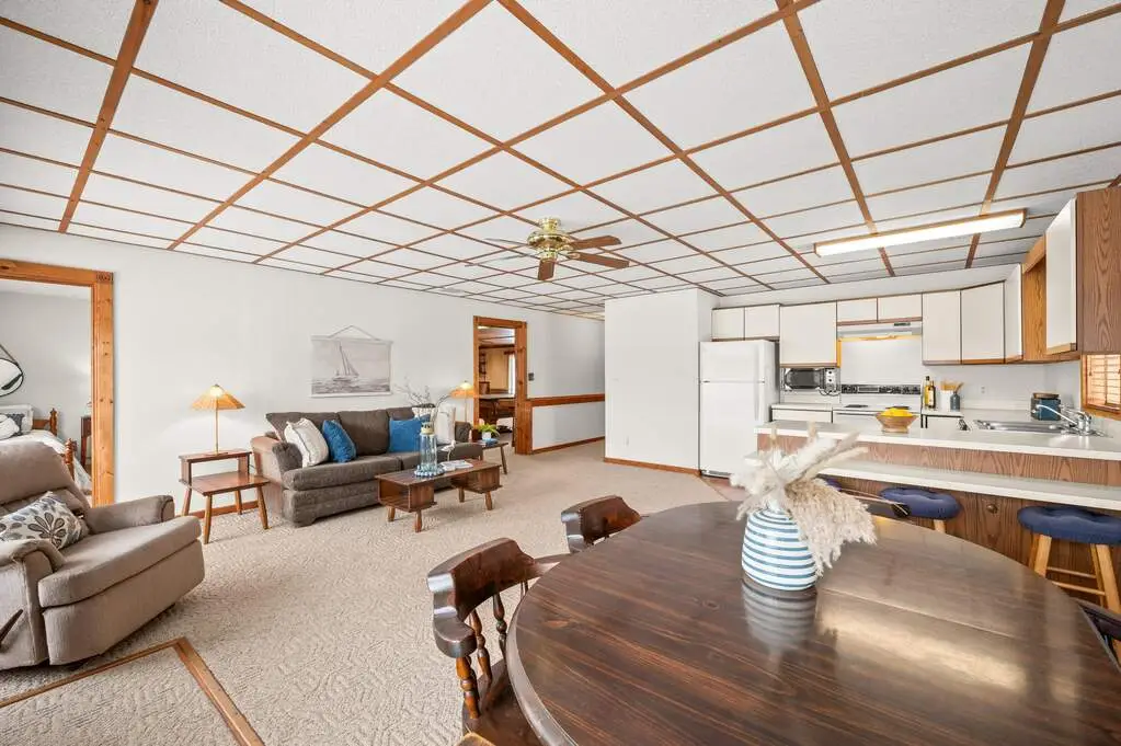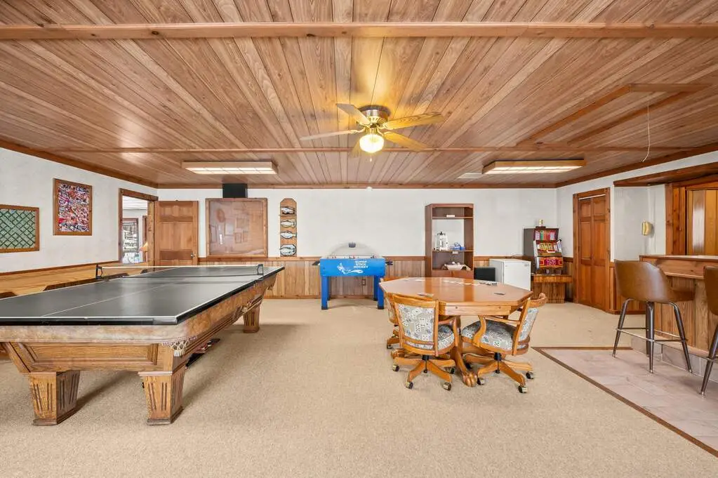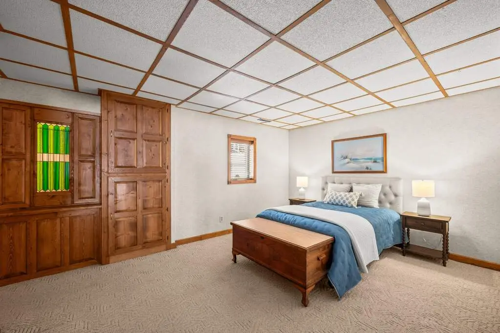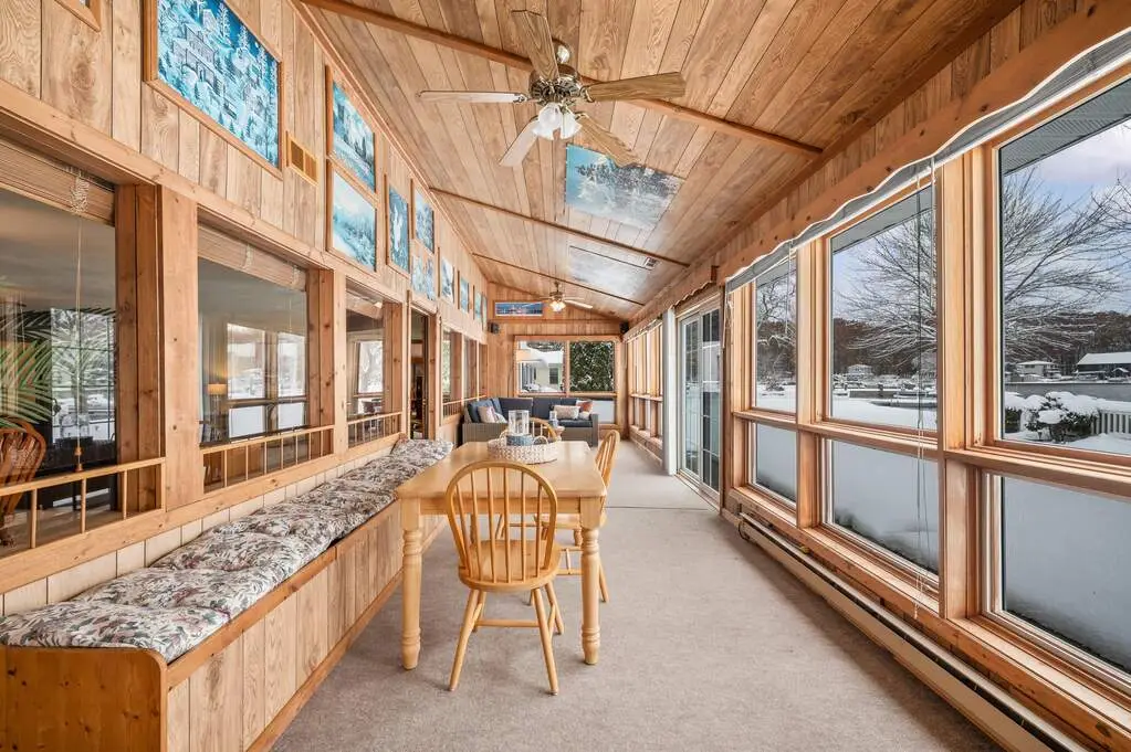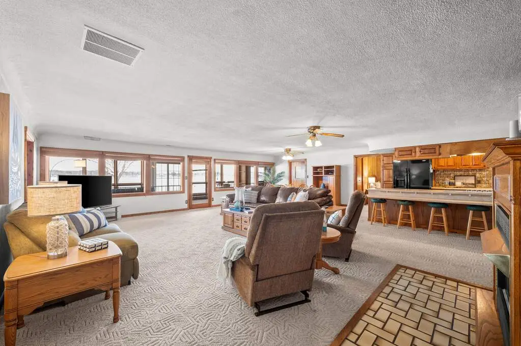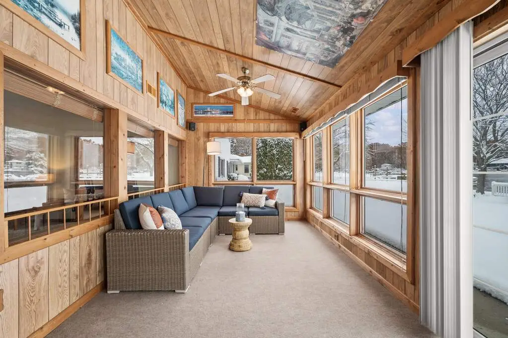 Welcome to Indian Lake in the Sister Lakes area of Southwest Michigan. This expansive property offers 140' of flat, sandy shoreline with peaceful sunrise views. The home lives like a ranch, with the primary bedroom suite located upstairs plus a second ensuite bedroom on the main level. Three additional main-level bedrooms and two more baths offer space for everyone. Enjoy a spacious game room with bar, three-season room, and hot-tub room. A connected 2BR/1.5BA apartment provides flexible space for guests, related living, or rental use. Outdoor living includes a large composite lakeside deck, permanent pier with lift, seawall, and sandy-bottom swimming. Storage is abundant with an attached 2-car garage, detached garage with workshop for boats, lake gear, and golf carts, plus an additional shed. Indian Lake is a 500-acre all-sport lake with a 27-hole golf course, clubhouse, and rare yacht club offering fuel service, social events, and a 4th of July boat parade. 2 hours from Chicago
