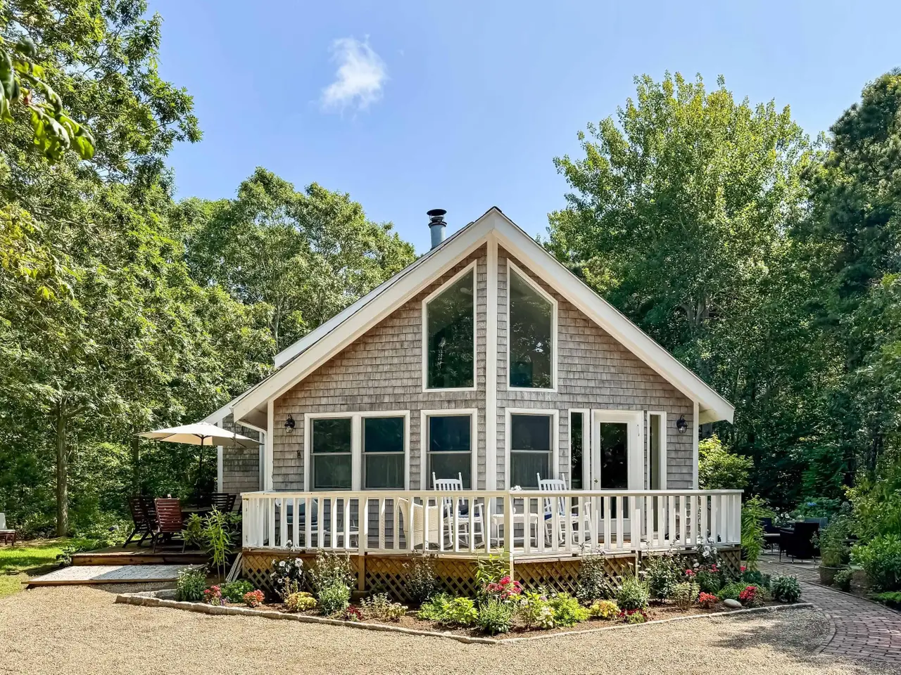This turnkey Vineyard retreat blends coastal charm with modern comfort, offering a rare combination of location, amenities, and style. A 19-foot heated swim spa with current, and beautiful wooden deck, lets you swim year-round or unwind in the attached Jacuzzi. The property comes fully furnished, making it an effortless purchase, and boasts a strong rental history for investment potential. Recent upgrades include a new roof in 2024, a beautifully renovated tile bath in 2025, new maple floors upstairs, refreshed interiors, and updated landscaping. Inside, the sun-filled kitchen and dining area with cathedral ceilings create an inviting space for gatherings. Stainless appliances, granite countertops and modern finishes make cooking and entertaining a pleasure. Additional benefits include central AC and heat, a primary bedroom suite with private balcony, two first-floor bedrooms and a second full bath offering convenient accessibility, and a town sewer connection for easy expansion to six bedrooms. Unique features, such as a rose-covered trellis, grape vines shading the outdoor shower, and a bluestone fire pit patio, add a peaceful, personal touch. Surrounded by decks, a stone picnic area, and wooded privacy, the property is just a ten-minute bike ride to South Beach or a short trip to Edgartown's shops, restaurants, and historic charm. Morning Glory Farm is only minutes away, offering fresh produce and baked goods. Whether as a year-round residence, vacation getaway, or proven rental property, this home is ready to enjoy from day one.