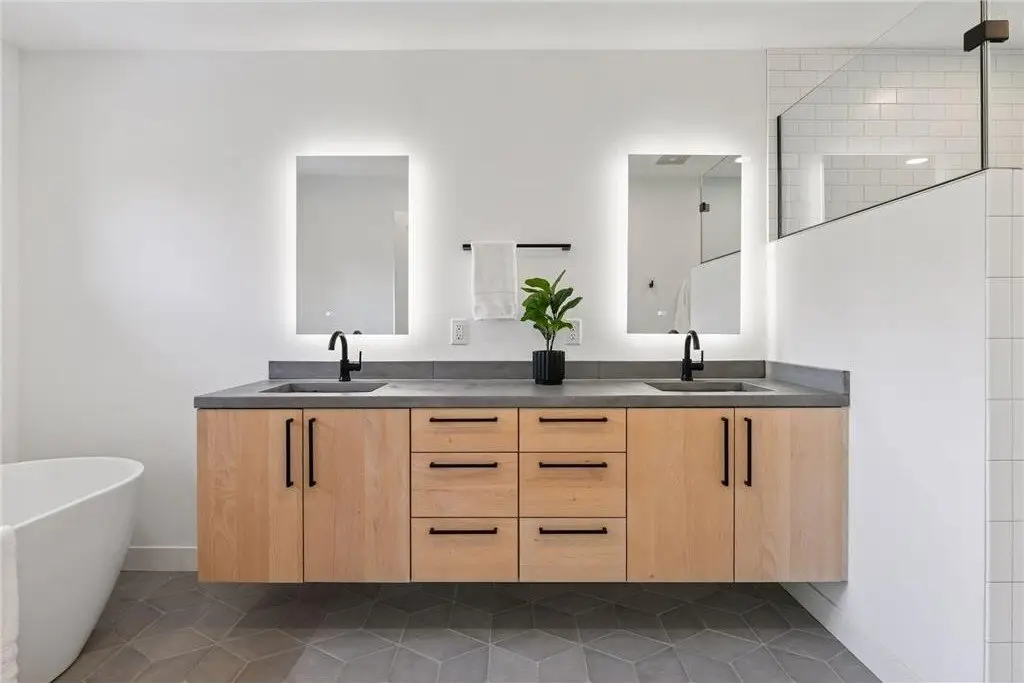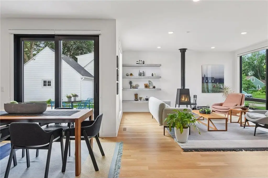 A Sustainable 9 (S9) luxury custom build inspired by Scandinavian architecture and European simplicity, this stunning Parade of Homes Dream Home is located in one of Edina’s most desirable neighborhoods. Designed with intention and executed with precision, this architect-crafted home blends timeless design with forward-thinking sustainability. The sellers envisioned a home made of extraordinary, eco-conscious materials—and the result is nothing short of spectacular. Clean lines and a harmonious connection to the natural landscape immediately set the tone. Inside, sunlight pours through strategically placed windows, emphasizing the minimalist elegance of the open-concept floor plan. Three bedrooms, three-and-a-half bathrooms, and thoughtful living spaces deliver modern luxury at every turn. Oak floors bring warmth to sleek whites and grays, while the kitchen impresses with Signature Kitchen Suite appliances, Crystal Cabinets, and a spacious island—ideal for entertaining alongside the built-in Sonos sound system. Enjoy summer meals on the main-level deck or sip coffee on the upper-level deck off the owner’s suite. In colder months, cozy up by the Wittus Shaker wood stove or relax in the cedar Finlandia sauna. The lower level features a polished concrete floor with in-floor heat, a family room with wet bar and wine fridge, a guest bedroom, and a full bath. Upstairs, the flexible loft space is ideal for work or guests. The primary suite is a peaceful retreat with blackout shades, a walk-in closet, and a spa-like bath with heated floors. Additional highlights include a two-plus-car heated garage, second-floor laundry, generous storage, and a custom mudroom. Smart home features include Wi-Fi boosters throughout. Just five blocks from Pizzeria Lola and Gia, this is conscious luxury living at its finest. 4th Bedroom can be completed prior to closing with acceptable offer.