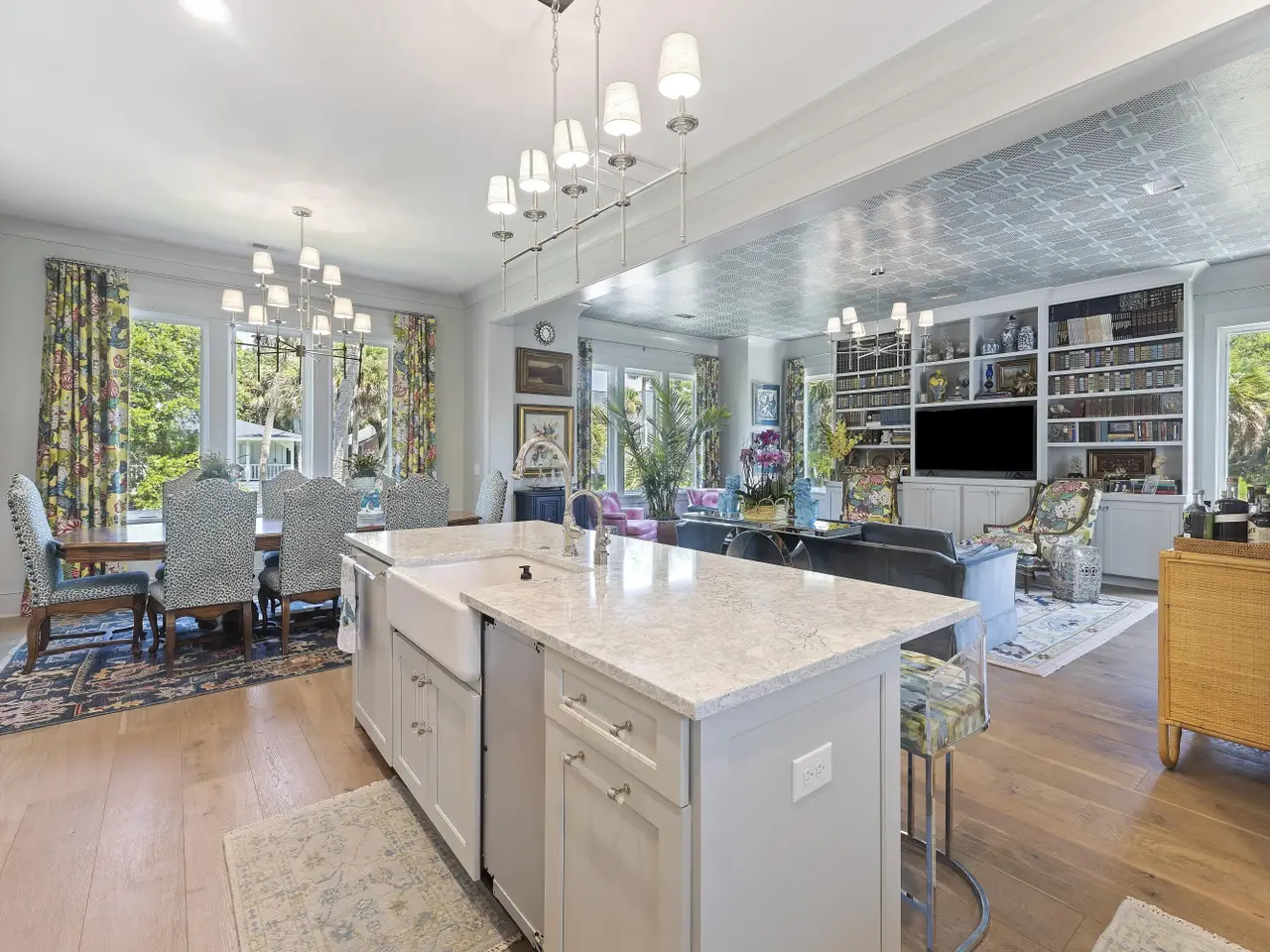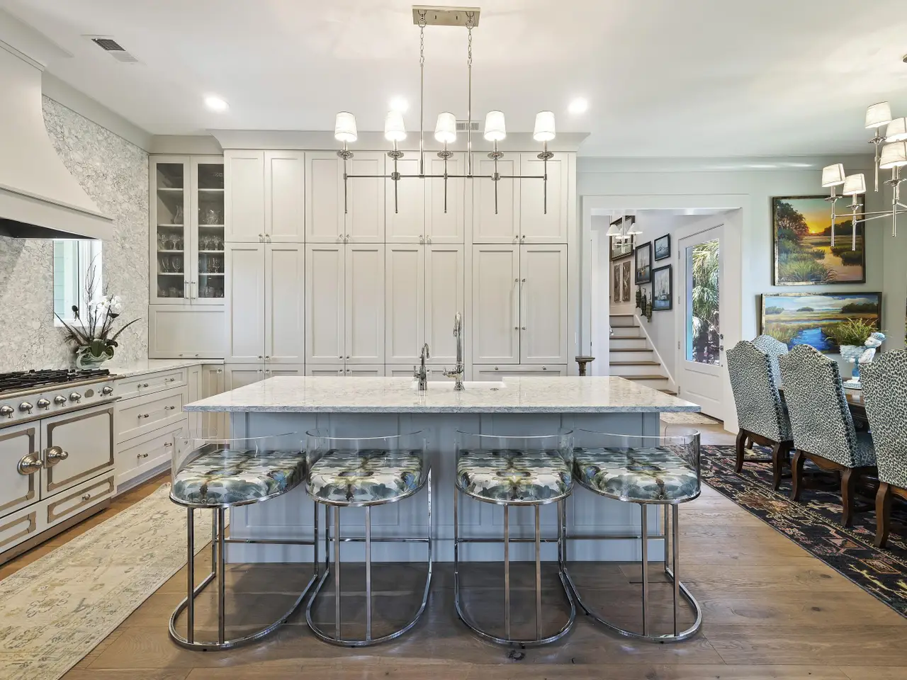 Welcome to 912 Cheehaw, your dream coastal retreat! Nestled in a prime location in the heart of the island, this stunning custom-built home is just half a block from the pristine Atlantic Ocean. Completed in 2023, this architectural masterpiece boasts high-end finishes throughout, including a La Cornue gas and electric range, elegant custom cabinets, and exquisite Cambria countertops with a stylish backsplash. Enjoy the airy ambiance created by soaring 10-foot ceilings and beautiful chandeliers adorning every room. The family room features a unique tiled ceiling and built-in bookcases, perfect for showcasing your favorite reads. Step outside to relax on the charming screened-in porch or explore the expansive backyard, which is ideal for adding a pool--electrical connections are alreadyplace! Additional highlights include an ice maker, luxurious master bath with a spacious shower and soaking tub, a stone walkway, a lawn irrigation system, whole house Generac generator, tankless water heater, an elevator shaft and durable 8 ½ inch oak plank wood flooring throughout. 912 Cheehaw is the ultimate combination of luxury and location. Don't miss your chance to make this exquisite property your own! The parrot sconces, downstairs bathroom mirror and draperies/curtains do not convey. House has never been rented. Owner occupied.