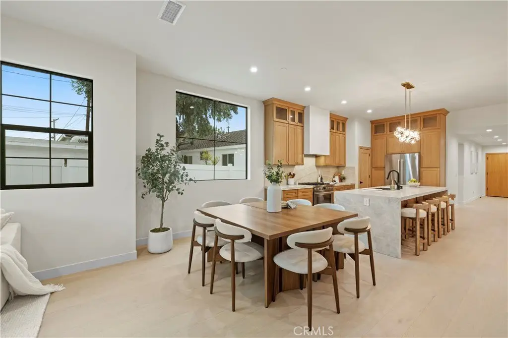 Welcome to this stunning custom-built home in Encino, perfectly situated on a generous lot! This organic modern 4-bedroom, 3.5-bath residence offers nearly 2,500 sq ft of beautifully designed living space with an open-concept indoor/outdoor layout—perfect for entertaining. From the moment you arrive, the wide frontage impresses with its expansive driveway and striking front entrance. Step inside and you’ll be greeted by a bright, airy floor plan that immediately sets the tone for sophisticated living. The formal living room at the front of the home is ideal for elegant gatherings, while the expansive great room offers the ultimate space for hosting luxurious indoor/outdoor events. The kitchen is a true showpiece, featuring floor-to-ceiling wood cabinetry, exquisite Taj Mahal quartzite countertops, and a full walk-in pantry. Adjacent to the kitchen, the sun-drenched dining area seamlessly connects to an oversized family room, where built-ins, custom shelving, and a cozy fireplace create the perfect evening retreat. Panoramic sliding doors open to a spacious deck and large backyard, creating effortless flow and extending your living space outdoors. The extra-large primary suite is a private sanctuary, complete with a walk-in closet and a luxurious spa-style bathroom featuring a double vanity and oversized shower. A secondary suite includes its own private bathroom, while two additional spacious bedrooms share a beautifully appointed bathroom at the front of the home. A separate laundry room and stylish powder room round out the interior amenities, offering total convenience and function. With thoughtful attention to detail and a well-planned layout, this home is designed to impress—featuring wood doors throughout, high ceilings, recessed and accent lighting inside and out, brand-new appliances, a finished garage, an oversized driveway, and lush landscaping. Plus, there’s plenty of space to add a sparkling pool - seller has a permit ready for you! This home truly has it all—style, space, and sophistication. Welcome home!
