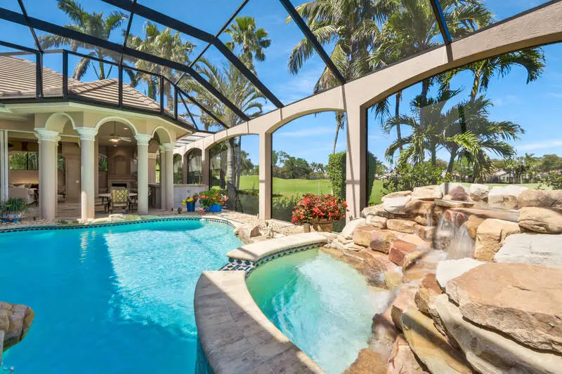 Expansive lanai with waterfall feature