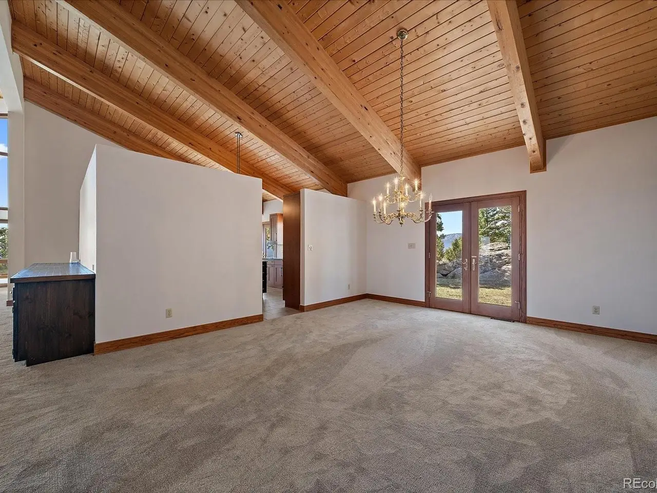 A true mountain-top experience! 5197 S. Bear Mountain Dr. is a luxurious 6-bedroom, 4-bathroom mountain retreat located in Evergreen. Perched in the trees atop an 11.32-acre lot, this property offers stunning 360-degree views of the Denver valley and the mountains to the west, including a clear view of Pikes Peak from the south side. The home features four bedrooms on the main floor, including a spacious walk-out primary bedroom with a beautiful en-suite five-piece bathroom. The basement includes two additional bedrooms and a bathroom, as well as a wet bar and built-in shelving, making it an ideal space for entertainment. Updated in 2015, this secluded mountain getaway features new carpet, fresh paint, and a remodeled kitchen and bathrooms. The in-floor electric heating system is more efficient than traditional electric baseboard heating, providing warmth during the winter months, along with excellent passive solar heat from the large windows that encase the main floor. The landscaping has been carefully designed to mitigate fire danger, with trees thinned around the home and rock gardens installed around the perimeter. The stucco exterior finish also enhances fire resistance. Additional features of the home include a security system, three 300-gallon water storage tanks, a new sewer line and septic tank installed in 2020, a 50-gallon water heater, and a new furnace installed in 2012.