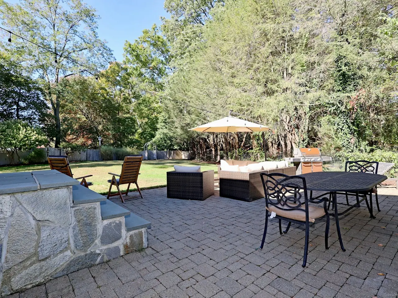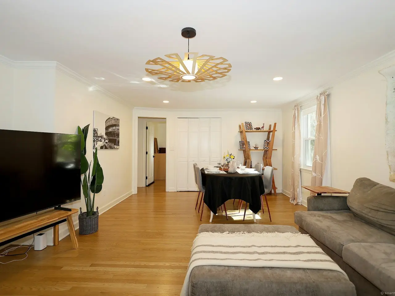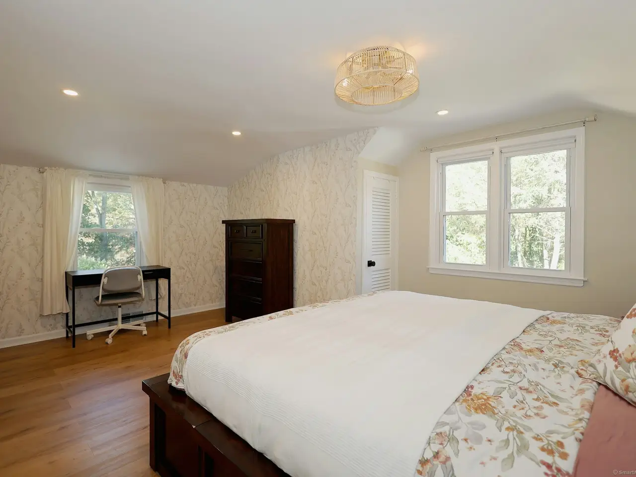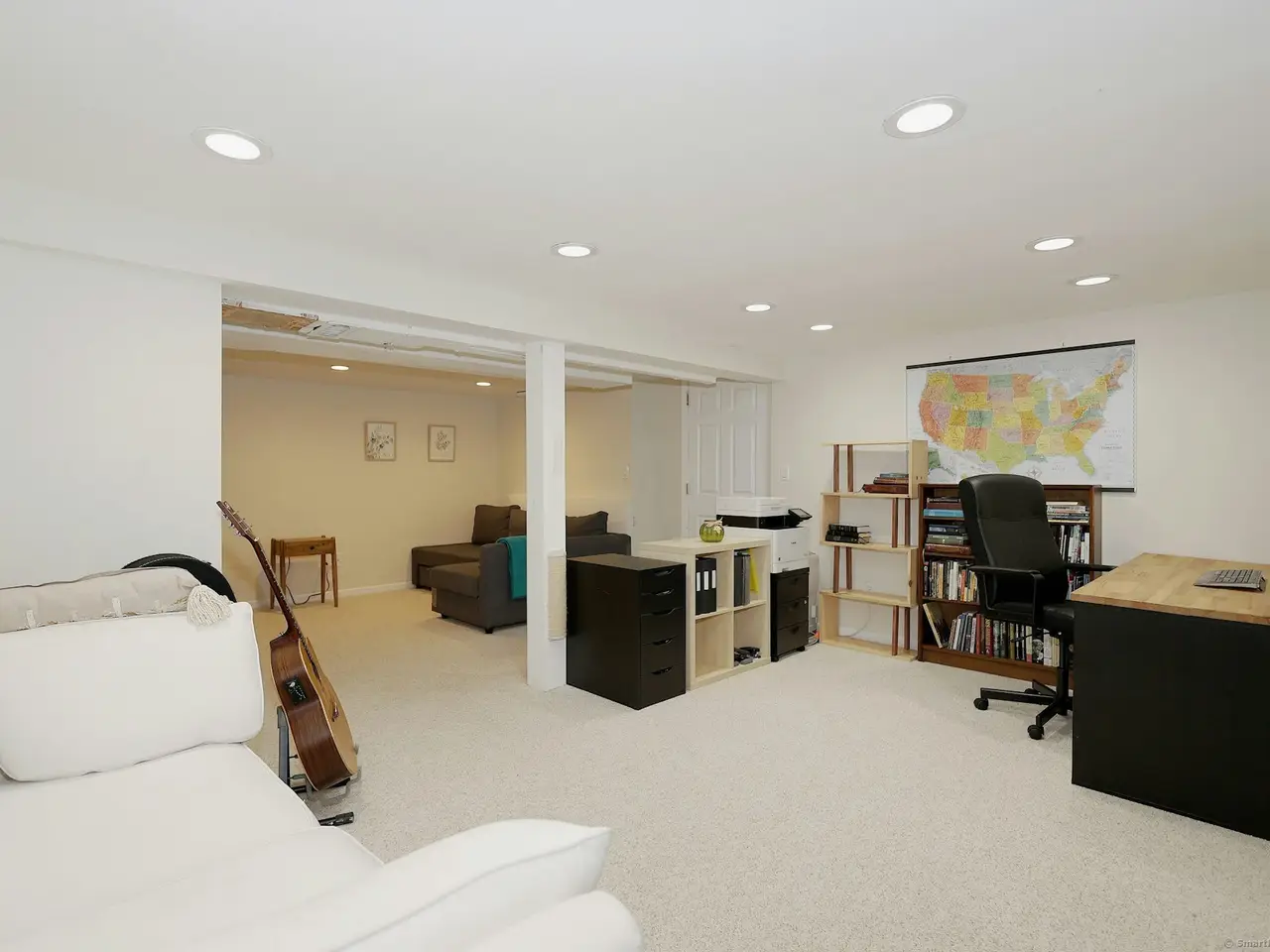 Welcome to this beautifully expanded, updated Cape situated within a quiet cul-de-sac in one of Fairfield's most sought-after neighborhoods. Step into the inviting formal living room featuring a cozy fireplace, bay window, refurbished hardwood floors, new lighting, and fresh paint. The eat-in kitchen, with entry to the covered back porch, has granite countertops, SS appliances including a new Miele dishwasher, heated flooring and new light fixtures. In the large family room you'll be struck by the oversized windows with views into the backyard and neighboring pond. The room includes ample storage, built-ins, a French door with direct porch access, new light fixtures, fresh paint and refurbished hardwood floors. A large bedroom and updated full bath round out the main level, offering comfort and flexibility for guests or single-level living. Upstairs you'll find a spacious primary bedroom, a cozy guest bedroom, a versatile 4th guest room/office/nursery, and full bathroom. The finished lower level offers even more living space with endless possibilities such as a media room, home gym, rec room, or office. It also includes a full bath, a laundry area with new Miele appliances, dedicated storage, and direct access to the two-car garage and backyard patio. Enjoy a tranquil, fully fenced, level backyard with a spacious patio and covered porch that is perfect for relaxing or entertaining. Located just minutes from downtown Fairfield's vibrant shops, dining, and beautiful beaches. Please do not walk through the gate to view the pond, it is private property.