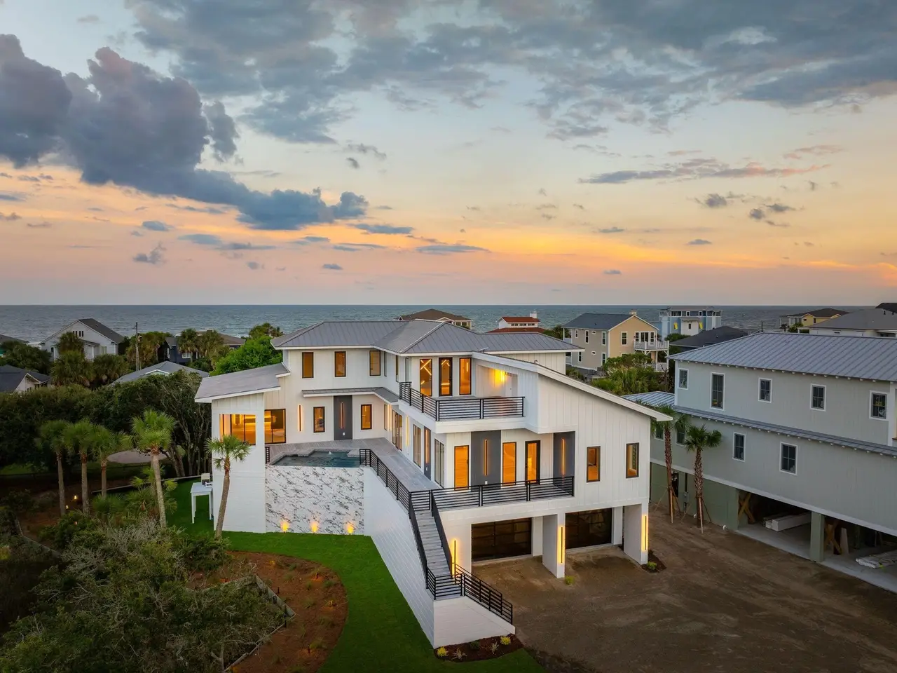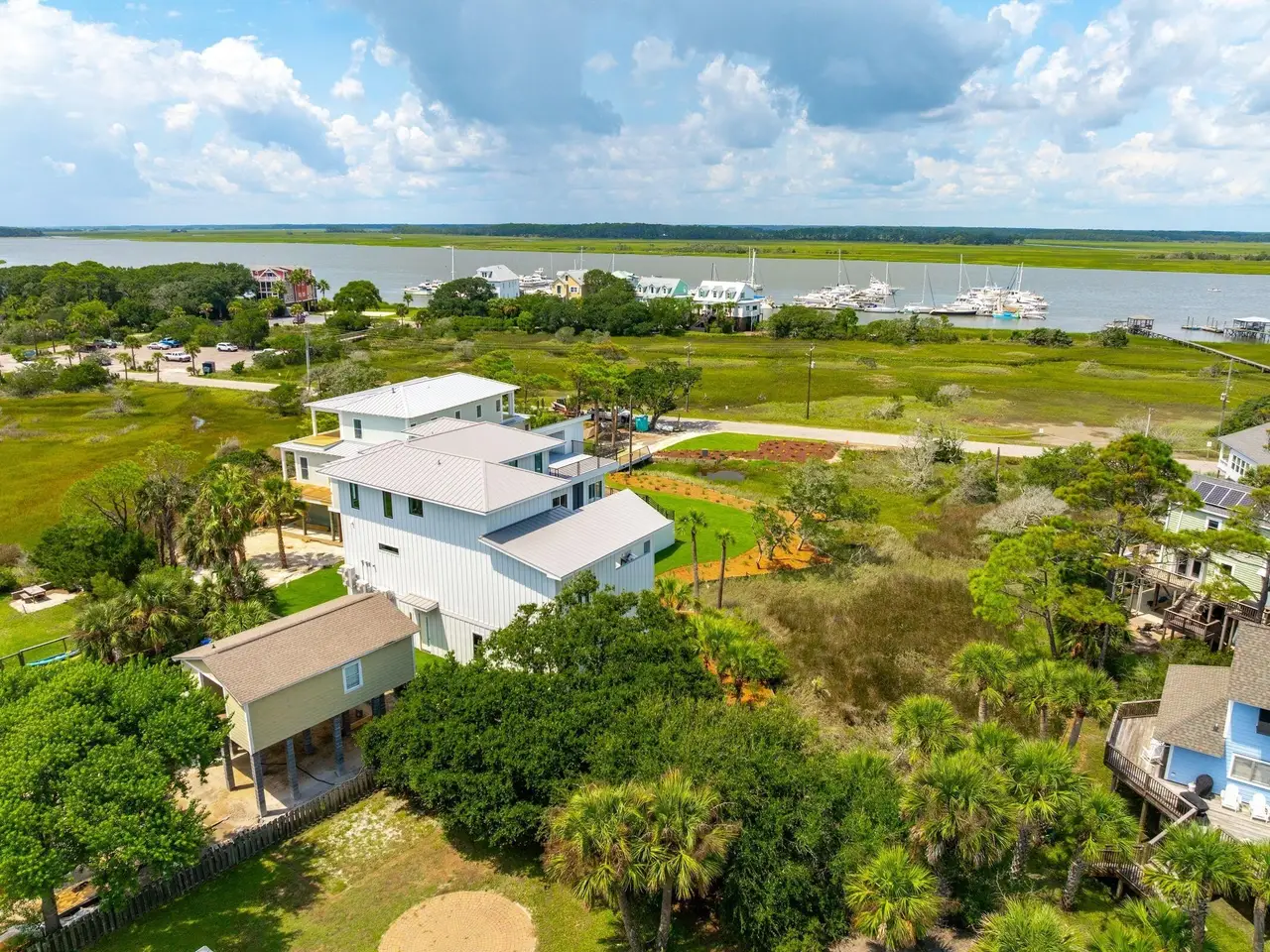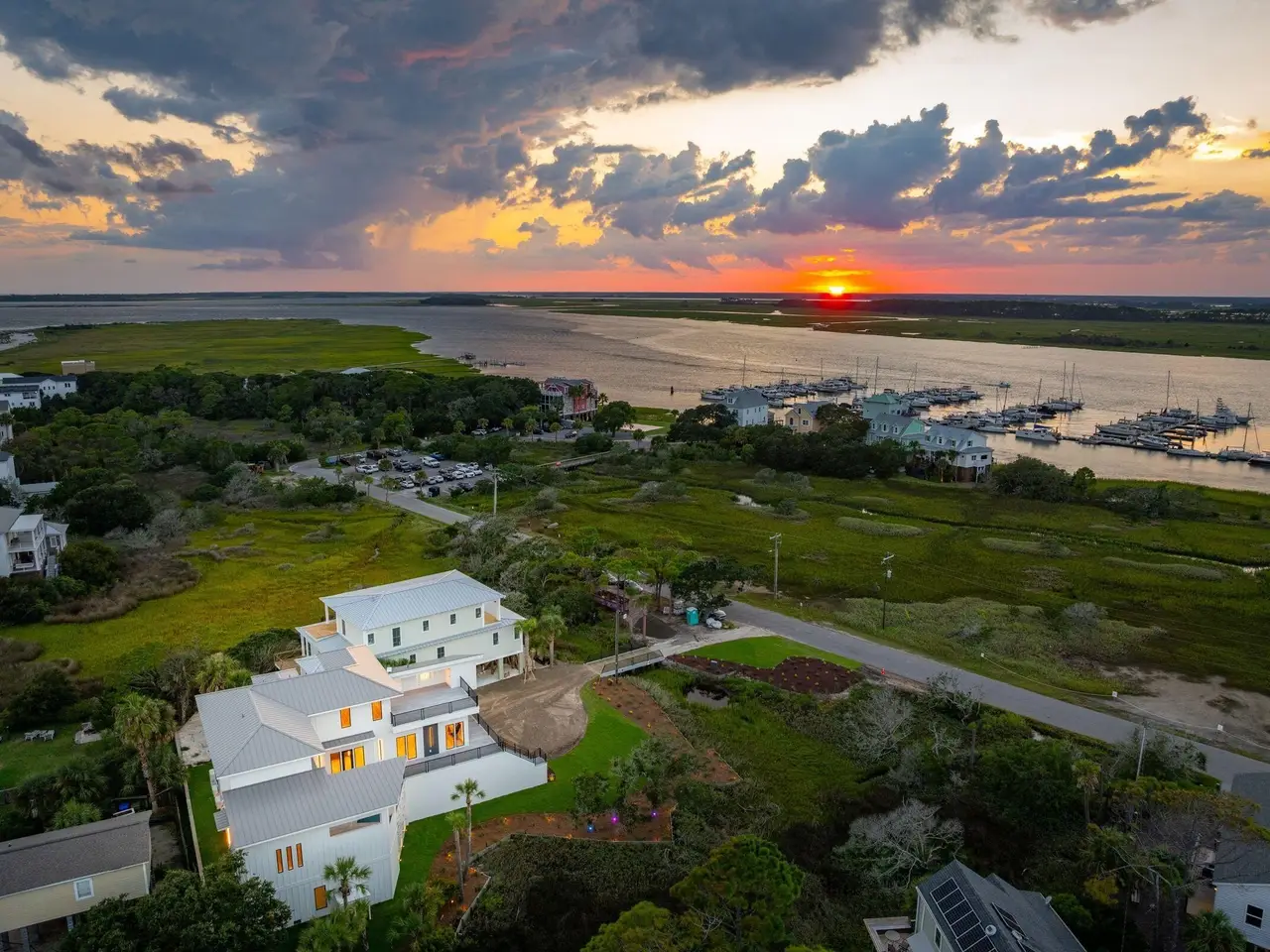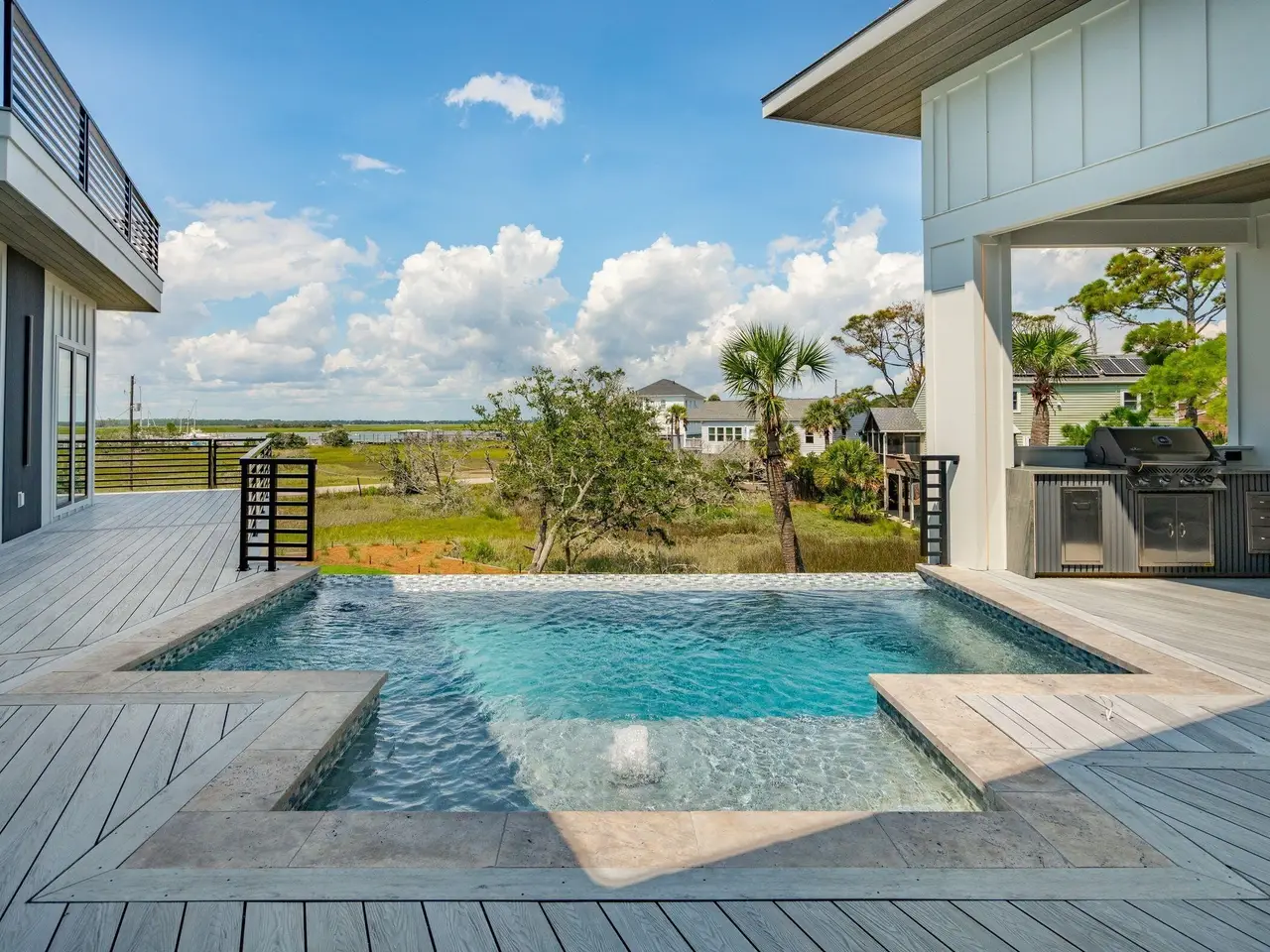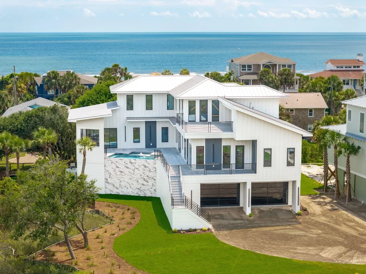 Welcome to 35 West 9th Street - Your dream coastal retreat at iconic Folly Beach is awaiting! This one of a kind property is nestled on the quiet west end of Folly and on a pristine .56 acre lot overlooking the serene views of the Folly River while also boasting spectacular ocean views as well. The home is stunning and offers a rare blend of sophistication and tranquility. Custom built and meticulously crafted, this home offers an array of upscale amenities including an outdoor kitchen, an amazing elevated pool heated by natural gas and a rooftop deck perfect for entertaining or simply unwinding from the end of the day.The home spans 3822 square feet and offers the perfect blend of luxury, comfort, and breathtaking views. There are 3 spacious bedrooms, 4 full bathrooms, a flex room that can serve as an additional guest room or a perfect home office and a bonus poolside room in the design. You will be greeted by an open-concept main floor with sprawling 11-foot ceilings where a spacious family room, dining area, and the chef's kitchen seamlessly flows together. Floor-to-ceiling windows bathe the space in natural light while offering uninterrupted views of the river, the sprawling marshes, the elevated pool and the outdoor kitchen. No detail has been overlooked in this home's design. The Chef's Kitchen features gorgeous stone countertops, custom cabinets and a high end stainless steel appliance package, including a 6-Burner gas stove top range & oven. The perfectly designed bar seating at the kitchen island allows plenty of room for family and friends to relax, spread out and enjoy this magical kitchen space & its wonderful views. The expansive 1st floor primary bedroom suite boasts custom built-ins, vaulted ceilings, a walk-in closet, and a luxurious steam shower with a soaking tub. This bedroom suite also has its own climate controlled cooling & heating system allowing for whatever specifically maintained temperature you prefer. Additionally, a vanity studio adds a touch of indulgence to your daily routine. The main floor also features a versatile flex room with its own full bathroom, perfect for creating a home office or accommodating guests. An elevator ensures accessibility throughout all levels of this gorgeous home and the large butler's pantry with its 2nd full refrigerator and laundry room provide convenience and ample additional storage. A mudroom provides a practical entry point, keeping the rest of the home pristine. Upstairs, a loft-style family room offers wonderful views and access to a large rooftop deck where you can entertain guests or just unwind while taking in the panoramic water vistas and gorgeous ocean views. The second bedroom functions as a 2nd primary suite, complete with its own en-suite bathroom and incredible river views. The third bedroom, which has sweeping ocean views, provides additional comfort and privacy for family, friends and guests. Outside, the stunning raised pool, complete with bench seating areas are perfectly complemented by the aforementioned outdoor kitchen, and are ideal for hosting events of any size. There is even a pool house entertainment room to watch your favorite sports team while enjoying the pool and jaw dropping river views. The grand garage below the home has four over sized bay doors and will accommodate multiple cars. This massive garage space adds 2200 additional square feet of dry storage below the home ideal for your at-home gym, boat storage and general storage. All of your beach and boat toys, your golf cart, surf boards and bikes store easily. From the pre-wired gas Generac whole house generator to the 2 Tesla superchargers and the pre-installed Starlink home internet system, this home's dynamic and unique high end finishes are unmatched. The home is just steps from the Sunset Cay Marina and a very short walk to the 9th street beach access. Folly Beach is a laid back Bohemian style beach town with miles of beautiful beaches, a teeming commercial district with restaurants, bars and cute shops. A short 20 minute drive will get you to downtown historic Charleston where you can enjoy all that the Holy City has to offer. This stunning custom built home and its private location makes it an ideal coastal sanctuary. Don't let this one of a kind opportunity pass you by!