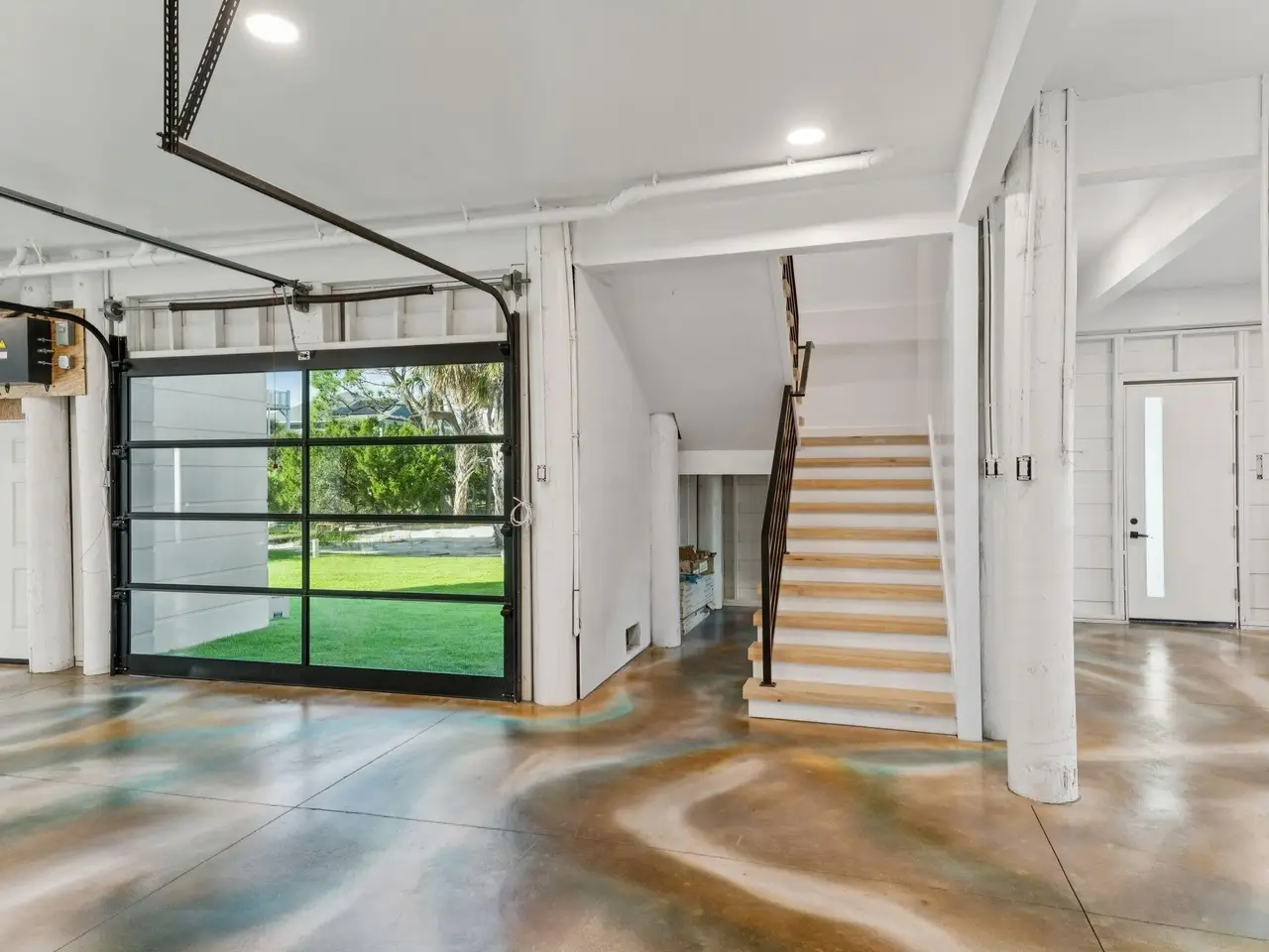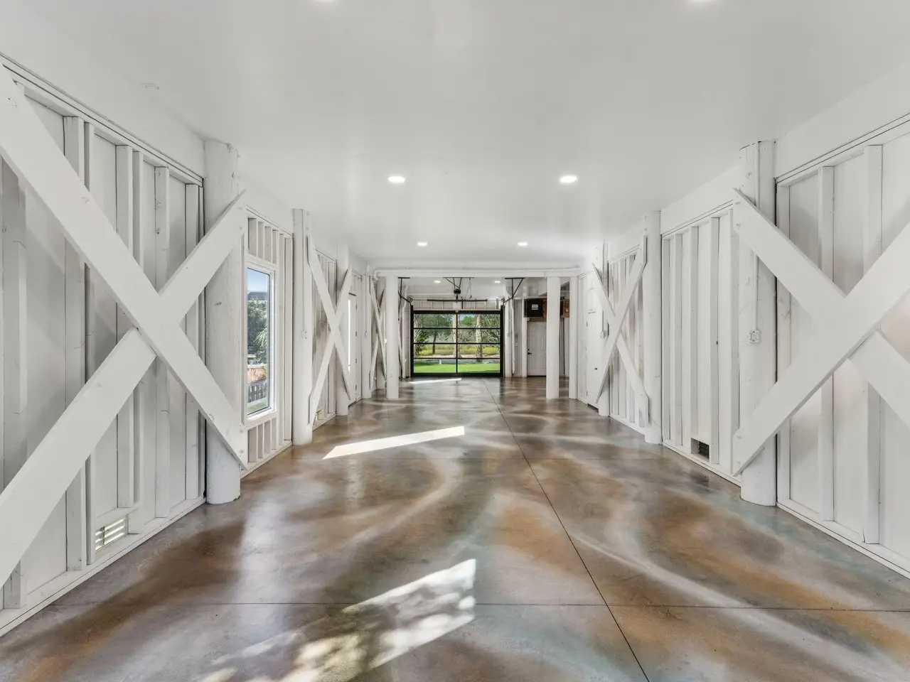 - Expansive garage with multiple bays