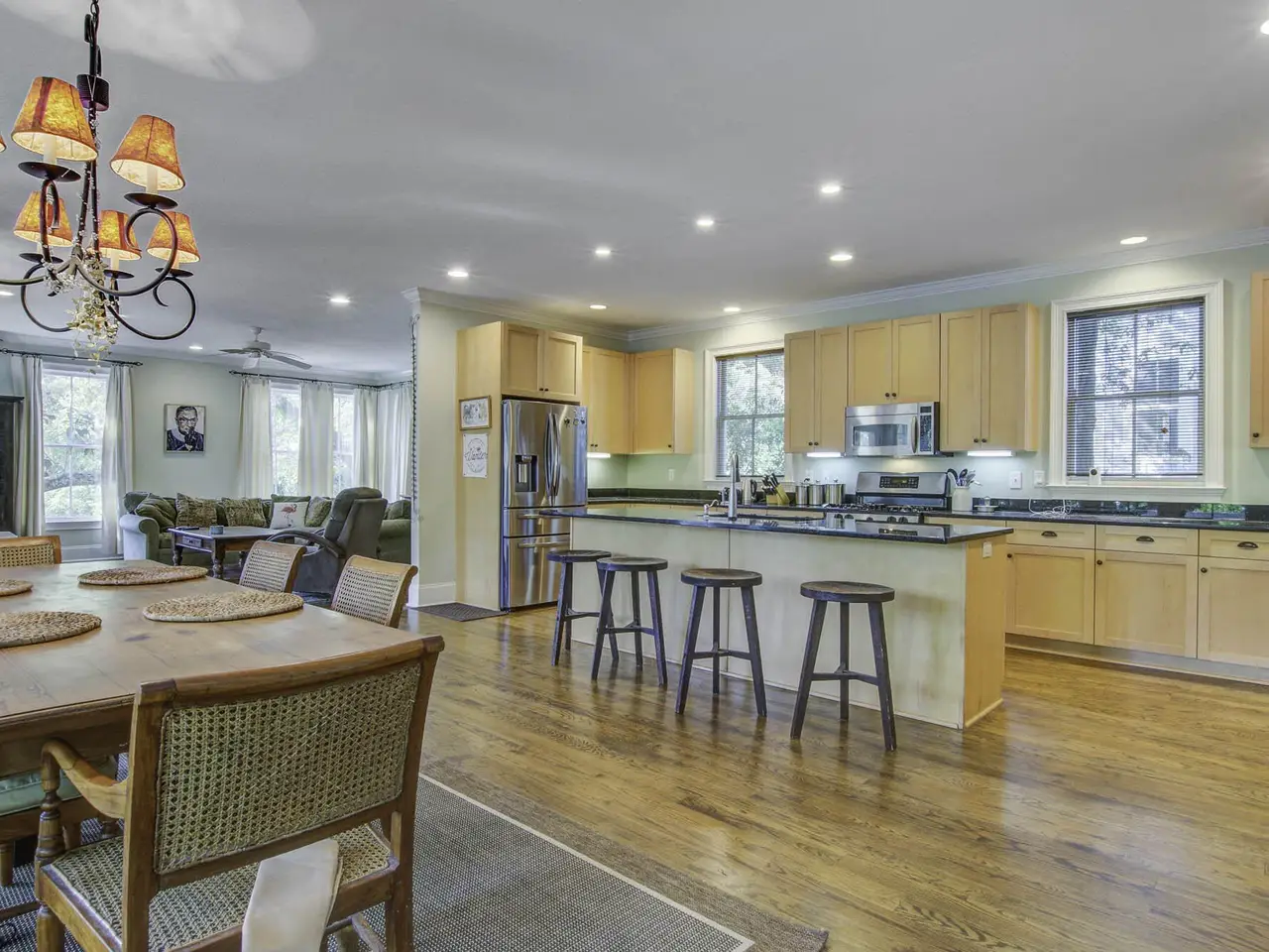 Nestled among mature oaks and magnolias in the island interior, this spacious home feels like a treehouse! 614 E Cooper is a rare, spacious duplex that lives well. The 2 story, main residence boasts hardwood floors, granite countertops, stainless steel appliances, crown molding, custom closet systems, screened porch and open deck. The First Floor, 2 Bedroom apartment has an open living, dining and kitchen concept, laundry and full bathroom. The property also features a storage/hobby house. This property is a must see if you're looking for an elegant, income producing, island home.
