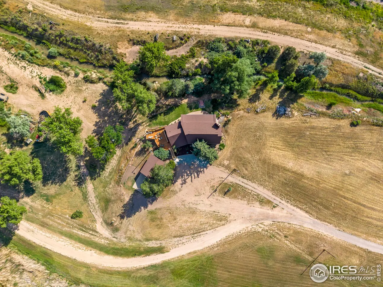 Nestled on a 5.75-acre parcel, this extraordinary home offers unmatched privacy and stunning views of the Front Range, including Longs Peak and the foothills. Surrounded by 120+ acres of open space, a reservoir to the south, and Boxelder creek and open space to the west, enjoy serene living amidst nature. The property features gorgeous mature landscaping and is adjacent to Mountain Vista Golf Course, perfect for outdoor and golf enthusiasts. This 3-bed, 3-bath home exudes personality and charm, with solid construction and open vaulted ceilings that create a spacious feel. A huge deck provides the ideal space for entertaining or relaxing while taking in the breathtaking scenery and the sounds of Boxelder Creek. Experience the perfect blend of seclusion, natural beauty, and distinctive design in this one-of-a-kind retreat.
