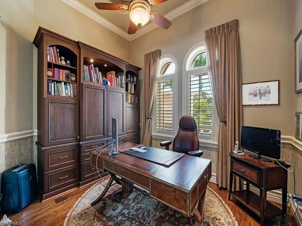 NO WAITING FOR GOLF MEMBERSHIP AT SHADOW WOOD GOLF AND COUNTRY CLUB!! If you are looking for unending, spectacular views, you've come to the right place! This custom built three bedroom/den, 3.5 bath Harbourside home offers wide, expansive lake, golf and preserve views. Volume, tray and beamed ceilings, and crown molding in all main living areas, primary bedroom, den and beautiful built ins are just a few of the high end designer upgrades that makes this home a step above the rest! Ready for entertaining this home offers a kitchen with high-end appliances, Viking gas range, and plenty of counter space. A wine cooler and ice maker at the wet bar in the formal dining room are a plus! Plenty of room for seating with a breakfast bar, breakfast nook and the formal dining room will help you host family and friends. The great room opens to the expansive and lush lanai with it's spectacular views. The pool, with sun deck and spa, is a great place to relax and enjoy the the peace and beauty of Shadow Wood Preserve. The oversized lanai, with built-in outdoor kitchen has plenty of room for relaxing or dining and allows for time in the sun as well as under cover. A split bedroom floor plan provides privacy for you and and your guests and each guest bedroom has its own en-suite. Impact windows and doors and the three-car garage are a plus! Shadow Wood Preserve is a low density community designed to preserve the natural beauty of southwest Florida. Shadow Wood Country Club is a member owned club with 3 Championship Courses and two Club Houses. The Preserve is an Arthur Hills course with Robert Cupp designs on the other two courses. Shadow Wood Preserve community amenities include pickle ball, tennis, fitness trail, fishing pier with canoe and kayak launch on the Historical Mullock Creek. This community is close to shopping and fine dining and minutes from RSW airport. If outstanding craftsmanship and quality are what you are looking you won't to miss seeing the home!