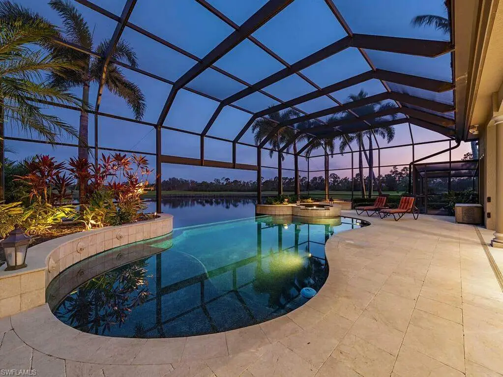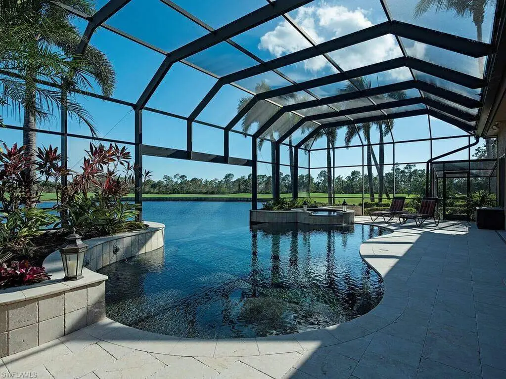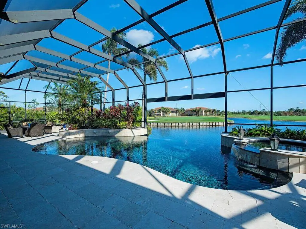 Pool with sun deck and spa overlooking Shadow Wood Preserve