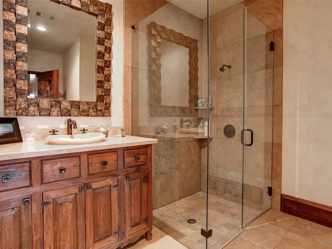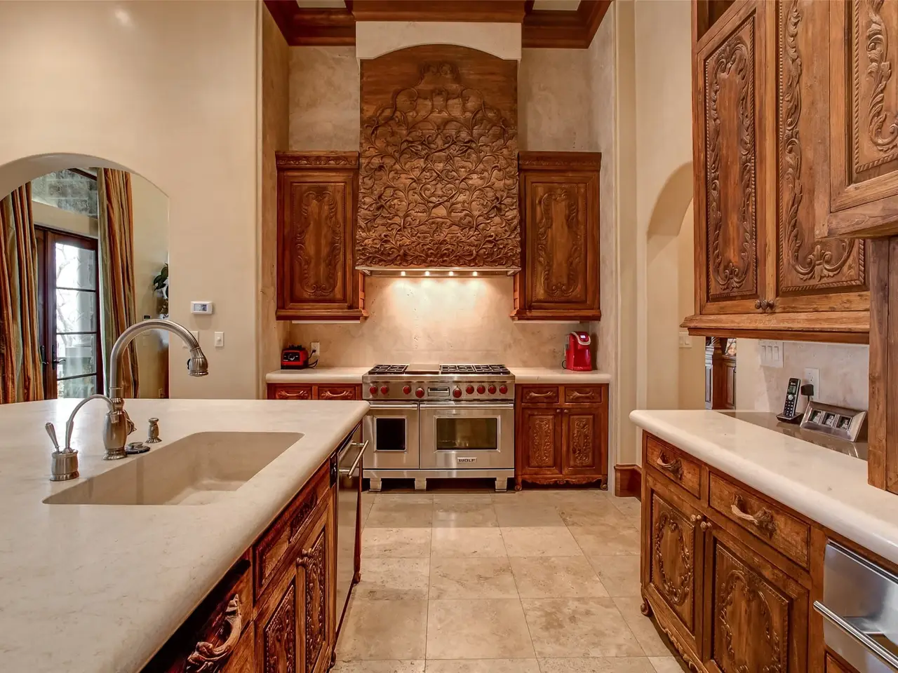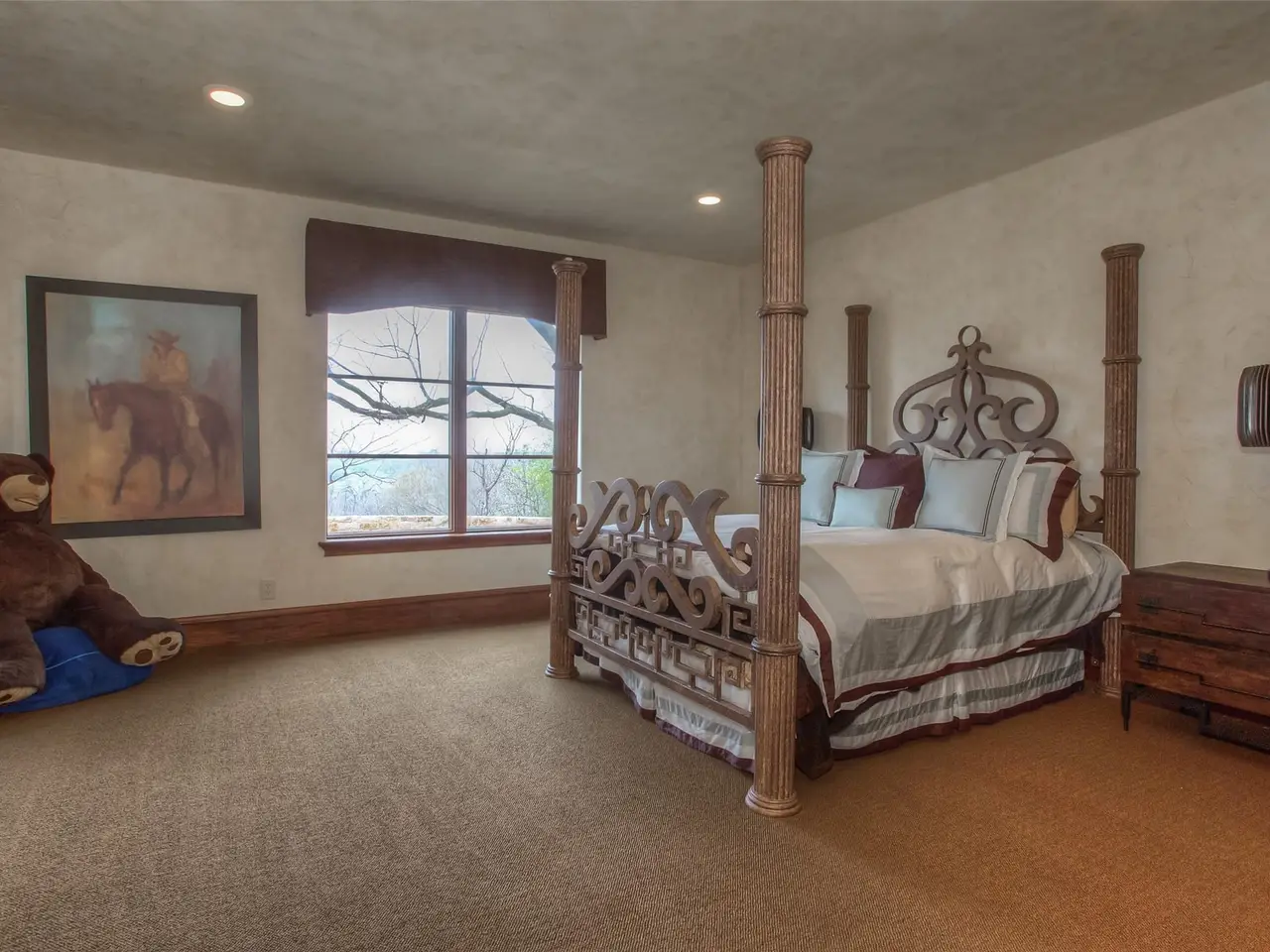 Privacy and exceptional craftsmanship define this custom-designed, custom-built 3-bedroom, 4.5-bath home. Built in 2010 by the current owners and nestled into a hillside, this home offers panoramic views from every room. The downstairs features a spacious flex room with a full bath, which could easily be converted into a 4th bedroom, game room, media room, or a combination. The attention to detail is unparalleled, with stunning woodwork throughout, including massive wood doors and cabinet handles crafted by the Jason Scott Collection using Teakwood from Indonesia. Highlights of the home include soaring 14-ft ceilings, Venetian plaster finishes, marble columns, and clerestory windows. Additional features include elegant stone floors, a fully stone-clad exterior, a wine cellar, a 3-car garage, two gates, an office off the kitchen, multiple balconies, and beautifully landscaped grounds. This home truly blends privacy, luxury, and thoughtful design at every turn.