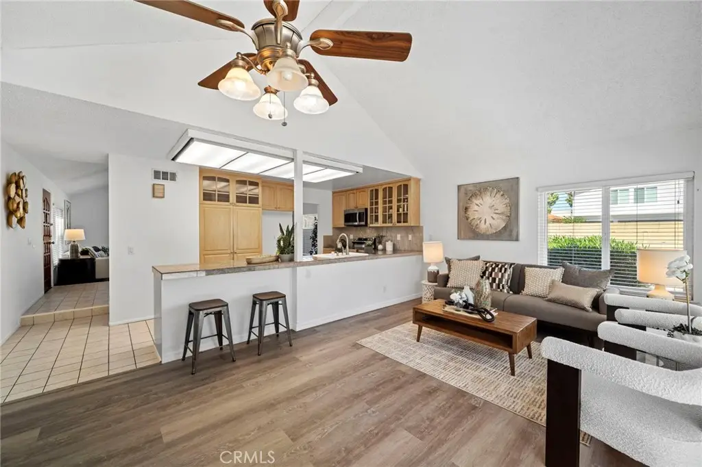 Highly desired Seville model single story home located in the sought-after Greenbrook community of Fountain Valley, just steps to the association clubhouse, pool with the "Gators" swim team, and park with BBQ and picnic area, plus it's within the top-ranked school zone and only 4 miles to the beach. This lovely residence offers an open, flowing, light-filled floorplan with cathedral ceilings, dual pane windows, and ceiling fans throughout. It showcases beautiful curb appeal with fresh exterior paint, manicured landscaping, and a private front courtyard leading to the entry. Inside, the tiled foyer opens to an extra-large formal living and dining room with soaring ceilings and a cozy fireplace. The kitchen has been upgraded with granite tile countertops and backsplash, natural wood cabinetry with glass display panels, and an oversized pantry, and it opens to a separate family room with cathedral ceiling and sliders to the backyard. Outdoor living includes a spacious concrete patio, wrap-around lawn, and stucco & blockwall privacy fencing. It features 3 bedrooms, 2 baths, and a spacious 1,539 square feet. The primary suite features mirrored closets, sliding doors to the backyard, and an ensuite bath with walk-in shower and clear glass enclosure, while the hall bath includes a tub/shower combo. Additional highlights include a direct-access 2-car garage with washer/dryer hookups and attic storage.