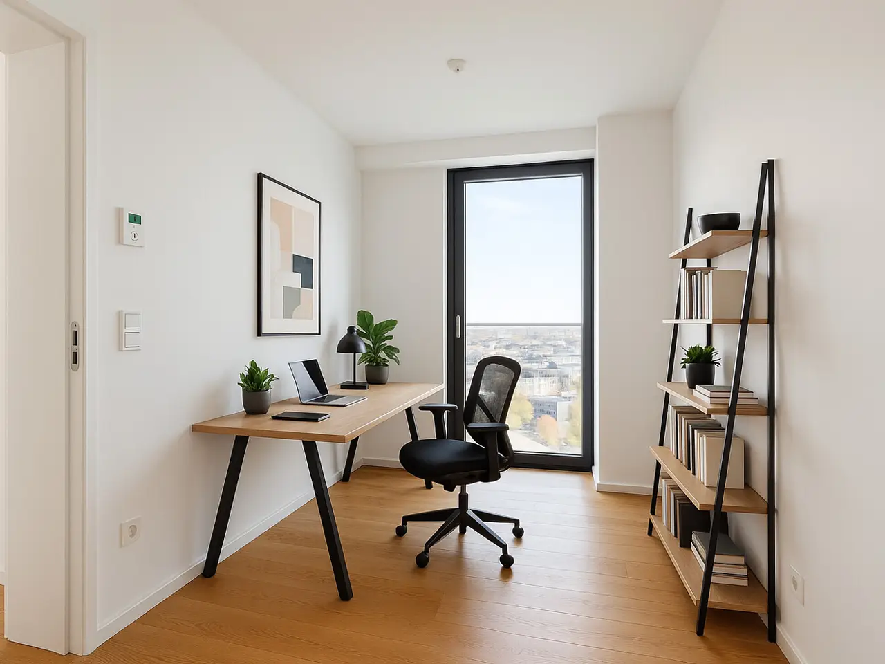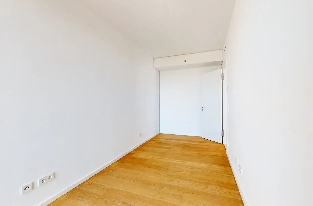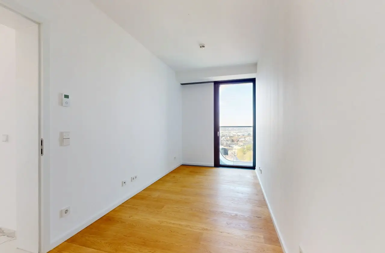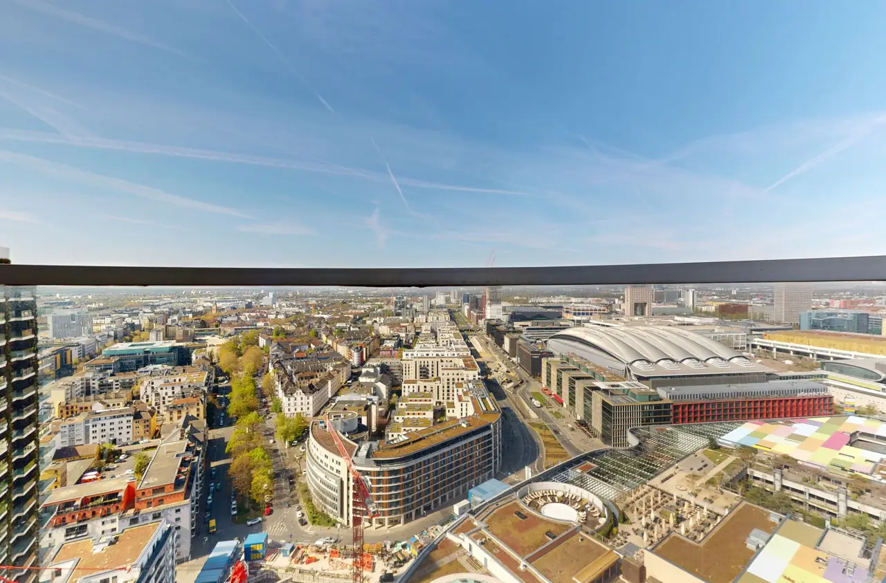 Welcome to the exclusive Grand Tower in Frankfurt - Germany's tallest residential high-rise, which stands for stylish, urban living with the highest standards. This extraordinary apartment on the 27th floor offers you a unique living experience on around 112 m² above the rooftops of the city. Thanks to the floor-to-ceiling windows, the entire apartment is flooded with light and opens up breathtaking views of the Frankfurt skyline and beyond. The spacious living area with open-plan fitted kitchen forms the heart of the apartment. The modern kitchen is seamlessly integrated into the room and impresses with high-quality appliances and plenty of storage space. From here, you have direct access to a large balcony that invites you to spend relaxing moments with a view over the city. A large, bright bedroom with direct access to the balcony offers you maximum living comfort. Adjacent is a high-quality en-suite bathroom, equipped with a bathtub and separate shower - ideal for relaxing morning routines or a peaceful end to the day. Another, smaller room with fine parquet flooring is perfect as a study or guest room and has access to a second, separate mini-balcony - a quiet retreat at a lofty height. There is also a third, smaller room, also with parquet flooring, which can be used in a variety of ways, for example as a home office or walk-in closet. The space is rounded off by a second, interior bathroom with a modern shower - stylishly designed and practical for guests or daily use. As a resident of the Grand Tower, you will enjoy numerous exclusive benefits that go far beyond ordinary living. A concierge service is available to you daily and ensures the highest level of comfort - just like in a luxury hotel. The Skydeck at a height of 172 meters is a real highlight: enjoy spectacular 360-degree views over the city and experience Frankfurt from a completely new perspective. The spacious Grand Garden offers a green oasis in the middle of the city - perfect for relaxing or meeting other residents. Stylish lounge areas and an underground parking space with quick and easy access round off the exclusive offer. The central location of the Grand Tower speaks for itself: the trade fair, the banking district, numerous shopping facilities, restaurants, cafés and cultural institutions are all in the immediate vicinity - everything that makes urban life worth living. In the neighboring Skyline Plaza shopping center, the exclusive Meridian Spa offers fitness, wellness and body care in an upscale ambience. This apartment is more than just a home - it is a lifestyle. Ideal for people who are looking for something special and value quality, design and service. Arrange your viewing appointment now and be inspired by the Grand Tower.