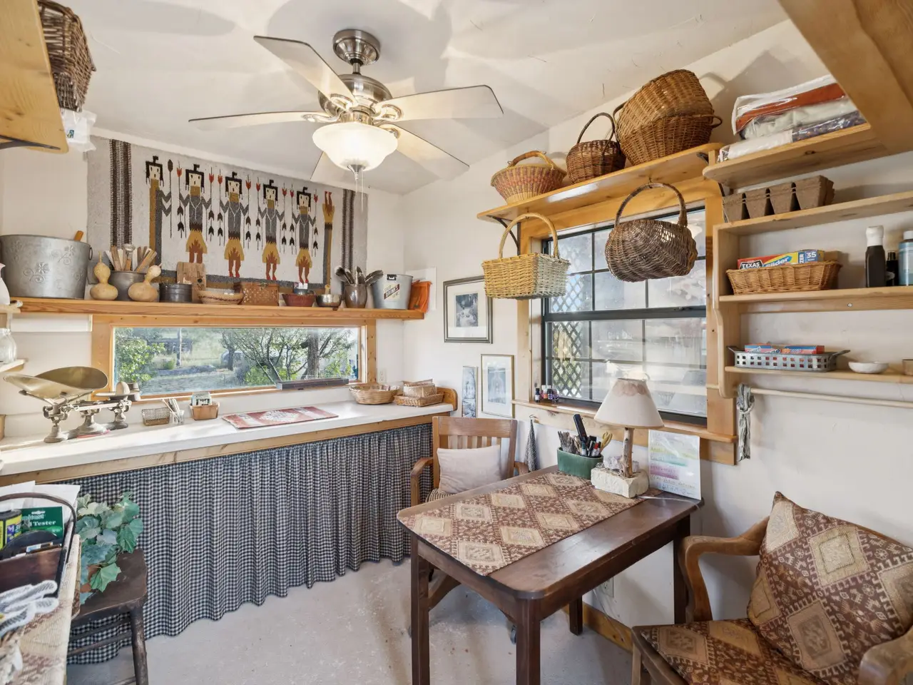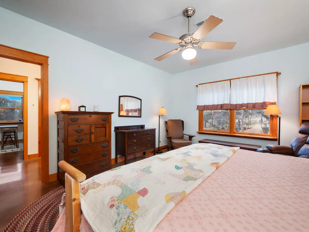 Nestled in the heart of Enchanted Vista, this beautiful 61.54-acre ranch stands as a testament to the beauty and solitude of the Texas Hill Country. Located just 23 miles north of Fredericksburg and a mere 2 miles from Enchanted Rock, it offers the perfect blend of seclusion and convenience, making it an ideal spot for those looking to escape the hustle without straying far from civilization. The land itself is a sight to behold, with gently rolling hills dotted with mature Live Oaks, Texas Persimmon, Juniper and other native foliage, providing not just a haven for game like whitetail deer, turkey, and axis; but a picturesque backdrop that defines the area. The presence of minimal hogs ensures the tranquility of the land is preserved. It's a canvas of natural beauty, with scenic vistas that stretch towards the horizon, including Enchanted Rock. At the heart of the property sits a charming 2,800 square foot custom ranch house, built on a bluff to capture awe-inspiring views of the surrounding landscape. Beside the house lies an expansive, fenced garden, a beacon of self-sufficiency adorned with fruit trees, plentiful beds, a greenhouse, and a workshop featuring a half bath for those sun-soaked days of labor. Nearby, a charming chicken coop and rabbit hutch enrich the setting, offering fresh produce and a taste of pastoral bliss. Beyond, a tranquil pond nestled behind the home provides a perfect haven for reflection or a peaceful afternoon angling. Supporting structures feature a detached two-car garage with a 550 square foot living space above, as well as a vital water well for reliable household and agricultural water supply. Currently serving as a primary residence, this property holds the potential to be more than just a home, offering a seamless transition for those desiring a weekend retreat in the stunning Texas Hill Country. It stands as an inviting option for anyone in search of a secluded haven or a gathering spot for friends and family, providing a rare mix of privacy, scenic beauty, and accessibility.