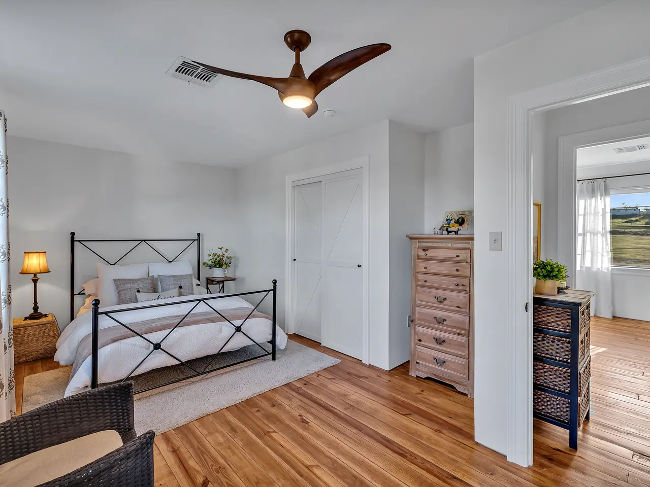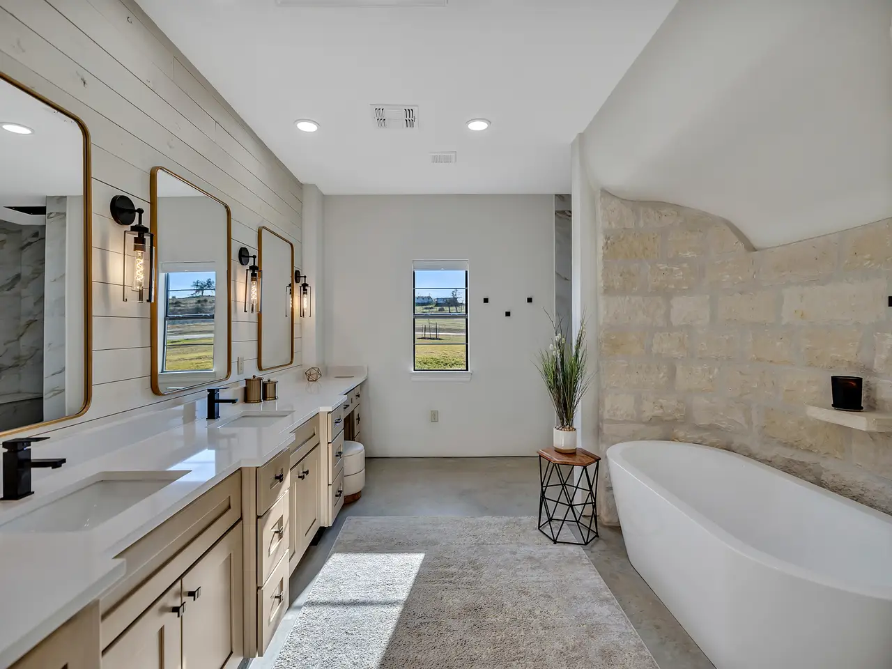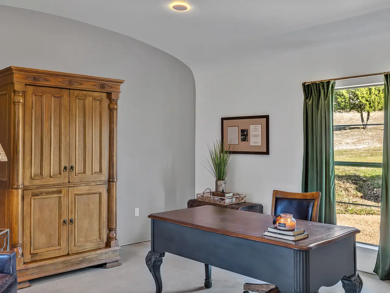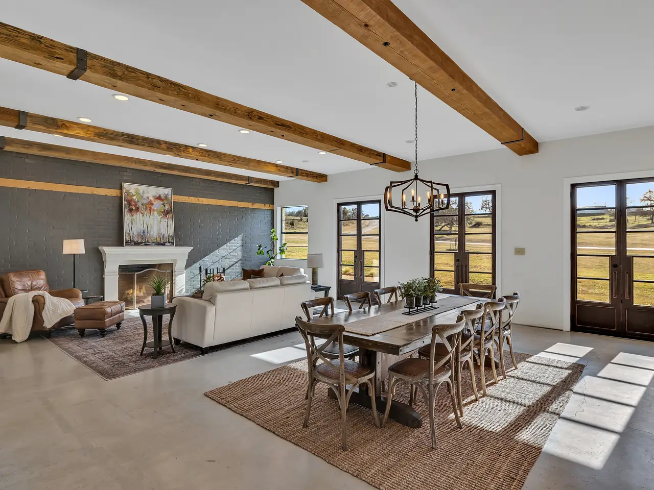 Experience serene luxury in a modern farmhouse nestled in the picturesque Texas Hill Country. The property is ideally located near the charming towns of Fredericksburg, Comfort, and Kerrville. Upon entering the property, an expansive limestone pathway leads to the entrance. The inviting courtyard adorned with a vine-covered pergola and twinkling lights provides a delightful spot to relax. The two-story home has been thoughtfully designed to blend functionality and luxury seamlessly. The first level features elegant hallways that guide you through the various rooms. The entire first level has heated flooring and recessed lighting with evening mood settings. The chef-ready kitchen is an excellent space for culinary enthusiasts, with multiple workstations, three sinks, high-end appliances, a butler's pantry, and quartz and woodblock countertops. The kitchen is perfectly set up for hosting events with separate stations for kitchen tasks, ample storage, and an 11-foot-long island that can accommodate up to five guests. The open floor plan leads to the dining area and living space, where large, rugged beams span the ceiling. The brick accent wall and wood-burning fireplace ground the light-filled room. Large solid steel entry doors line the exterior on each side of the home, providing easy access to the surrounding yard. The entire home is filled with natural light, and during the late afternoon, the main living area is transformed into a warm and serene space as the setting sun beams bounce off the floors, illuminating the space. The east wing of the home leads to the primary suite and office space. The elliptical arched ceilings with evening mood lighting provide an exceptional peaceful retreat. The en suite bath features a dual vanity, a freestanding porcelain tub, and a walk-in shower with a heated stone bench. The primary suite's dressing room boasts built-in shelving, a center console with storage, and a tri-fold mirror. The spacious and secluded office offers privacy and a reflective workspace. The second level features three spacious bedrooms, two full bathrooms, and a family room. The wood floors on the second level complement the abundance of natural light that fills the entire home. The property's detached oversized garage provides ample space for two cars, a golf cart/ATV, and extra storage. The barn, measuring 36x30 feet, is currently set up as a horse barn but can be restructured as a storage barn, among other options. Restful country living can be experienced at this tranquil, private home.
