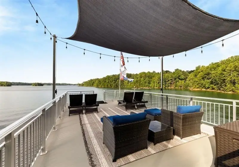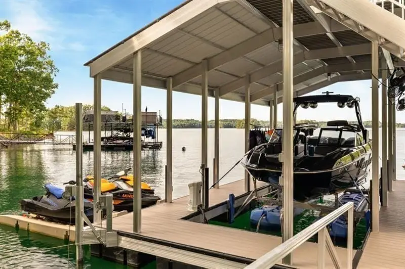 Custom Lakefront Home with Dock on Lake Lanier! Priced BELOW appraised value. Experience lakefront luxury with this stunning newly built custom home on Lake Lanier. Completed in 2024, this exquisite property offers the perfect blend of modern design, spacious living, and unparalleled lake views, located in the sought after Gainesville GA area, yet just inside Forsyth County. Enjoy breathtaking open water views and deep-water access. It's premier lakefront location with expansive water views from your private dock makes this property the perfect gem. The brand new 32' x 32' custom built dock by Martin Docks entertains well with single boat slip, spacious lower deck sitting area, and an upper party deck, perfect for enjoying the ultimate lake life. This Custom Home offers expansive open floor plan with high ceilings, large windows, and abundant natural light. Custom engineered white oak flooring throughout, provides a seamless and elegant look. Gourmet Kitchen with top-of-the-line appliances, custom cabinetry, and a large island opens to living area and large covered porch overlooking private courtyard. Gorgeous walk-in pantry with coffee bar, custom cabinetry and tons of storage. Four spacious bedrooms, five full baths, and two half baths. The primary suite features stunning lake views, a spa-like bath with a walk-in shower, soaking tub, and a custom closet. Two oversized laundry rooms, one upstairs, one down. Four beautifully designed fireplaces throughout the house. Huge Media Room equipped with a 160-inch screen, four custom built-in queen size bunk beds, and a full bath. Two family rooms, a game room with a full bar, ideal for entertainment and leisure. Three covered porches and one screened sleeping porch overlooking the lake. Enjoy the spectacular courtyard with an outdoor fireplace, large patio, outdoor grilling bar perfect for outdoor cooking, dining and entertaining. State-of-the-art finishes and features throughout. Entire house is insulated with spray foam walls and roofline for maximum energy efficiency, coupled with high-efficiency HVAC systems. Gated entry for privacy and security. This exquisite home combines luxury living with the tranquility of lakeside life. Whether you're looking for a primary residence or a vacation retreat, this property has everything you need for comfortable and stylish living. Don't miss the opportunity to own this spectacular home on Lake Lanier. For more information or to schedule a private showing, please contact owner/agent Kim McCrary.