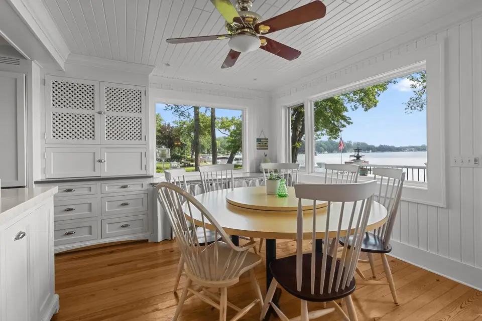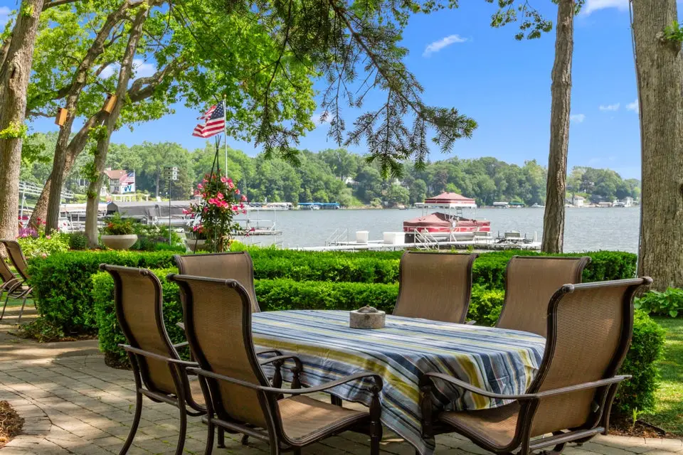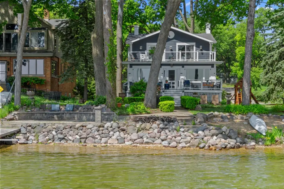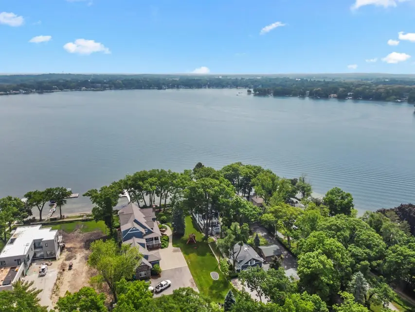 Stunning, thoughtfully curated home on 50 'of level frontage on Powers Lake. From the moment you arrive, it's clear this is a truly special retreat. Main home with 4 spacious bedrooms and 3 full baths. Charming guest house offering 2 bedrooms and a full bath. Enjoy sweeping lake views from multiple decks and patios, ideal for entertaining or simply relaxing. The gourmet kitchen features high-end appliances, marble countertops, and uninterrupted views of the water. The open-concept layout allows natural light to fill the living spaces, creating an inviting and serene atmosphere. A large private pier, sandy beach area, and stone seawall complete the exceptional lakefront experience. Plus, no-maintenance turf grass ensures you spend more time enjoying the outdoors and less time on upkeep.