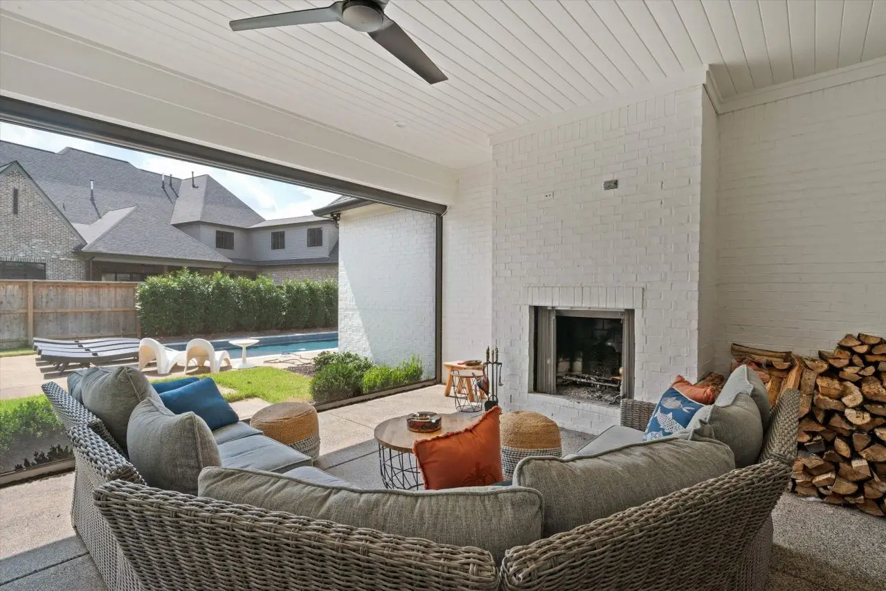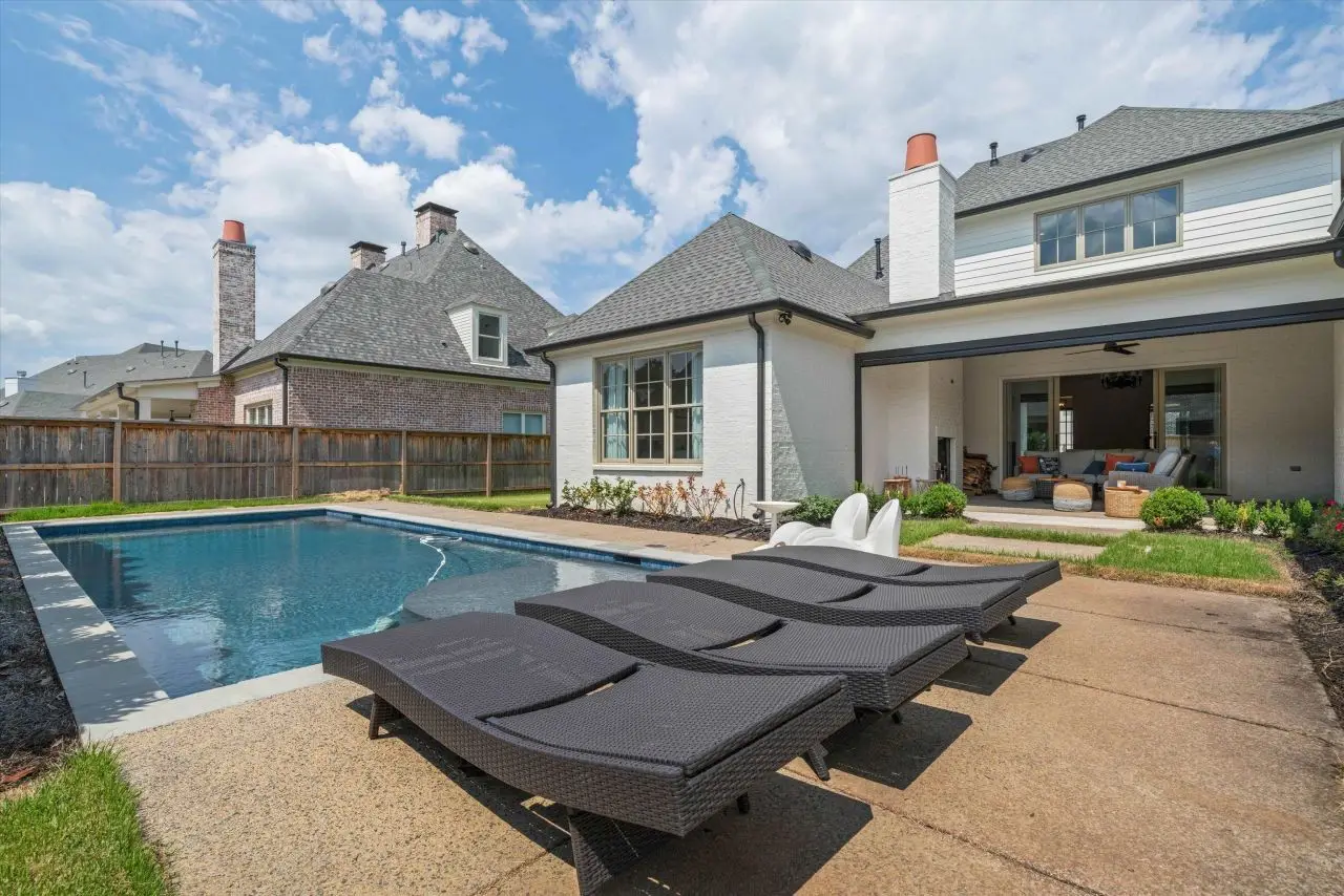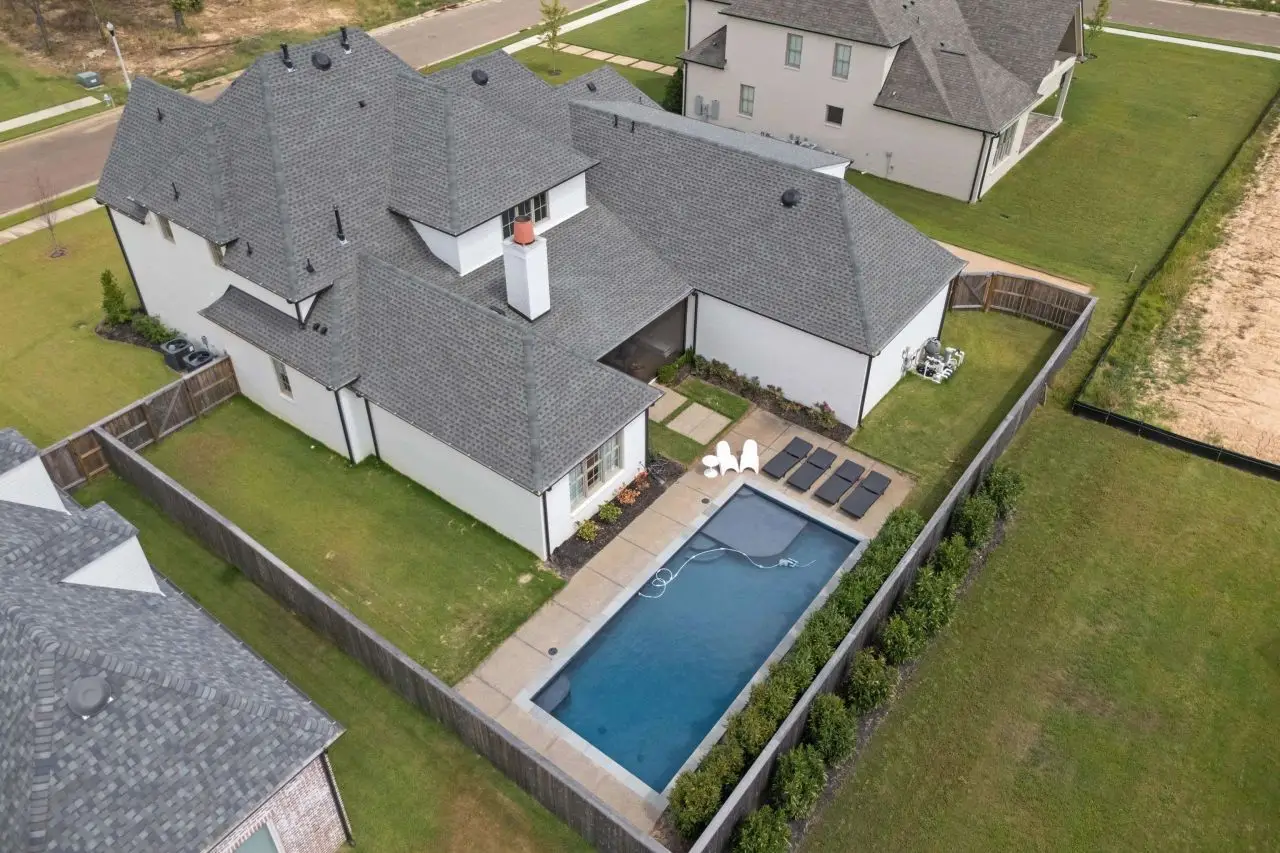Completed in May 2024 by Griffin Elkington Builder, this stunning Germantown home offers 5 bedrooms and 4.5 baths with 2 bedrooms down. Interiors feature 10-13' ceilings on the main level and 9' upstairs, creating a light, airy feel throughout. The open kitchen boasts quartz countertops, GE Profile appliances, and a six-burner gas cooktop, flowing seamlessly into the living room with fireplace. Upstairs includes a 21' x 19' media room and 22' x 13' playroom. The living space extends to a screened patio with woodburning fireplace, overlooking a gunite pool. The primary suite offers a spa-like bath with soaking tub and dual walk-in closets. Additional highlights include a 3-car garage, 3 HVAC systems, and 2 tankless water heaters.