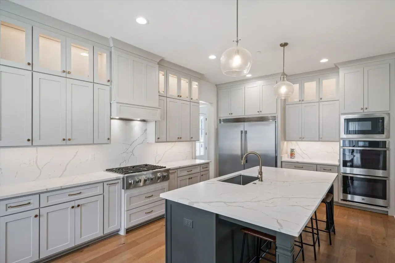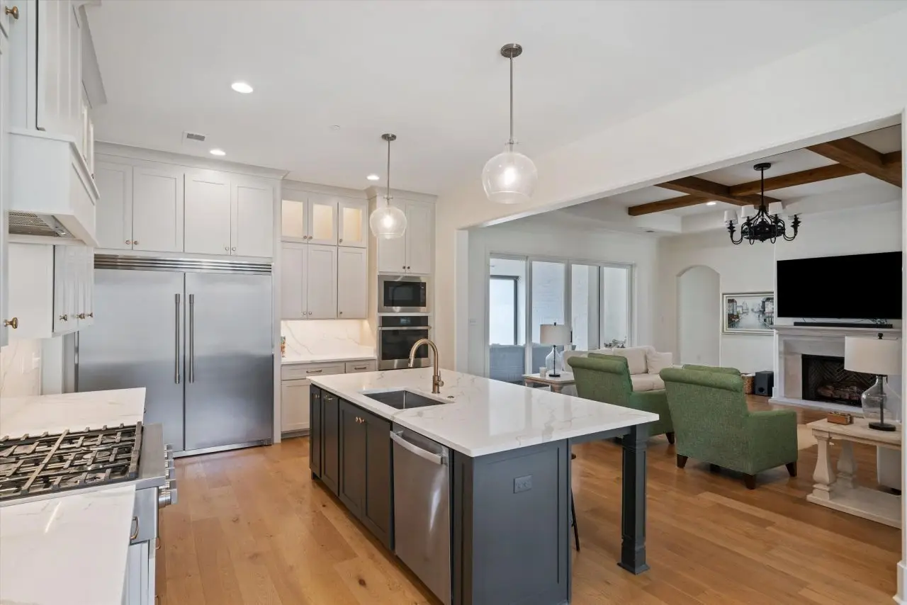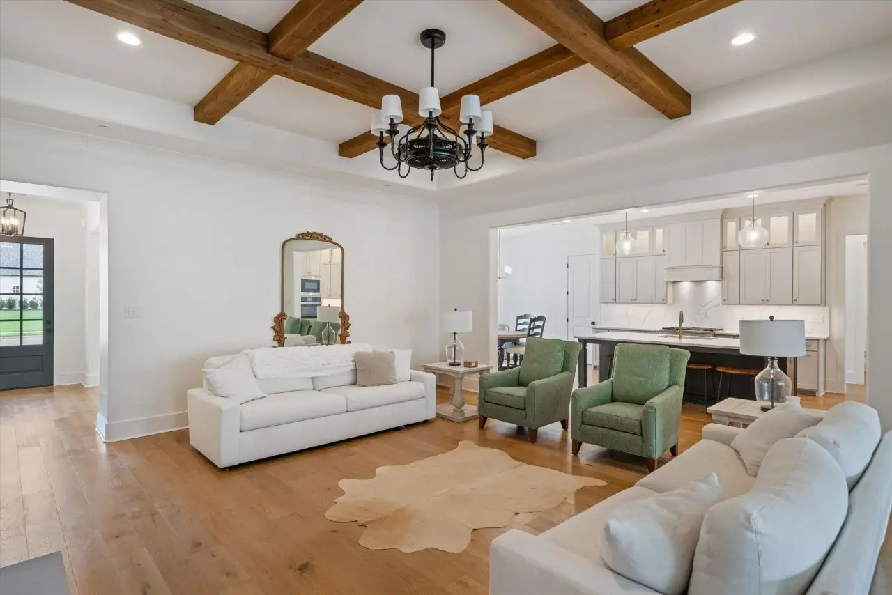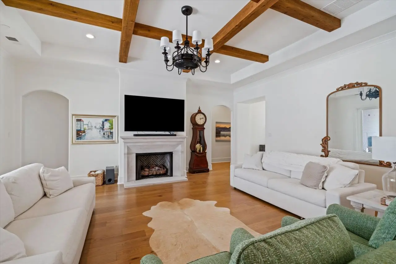 Completed in May 2024 by Griffin Elkington Builder, this stunning Germantown home offers 5 bedrooms and 4.5 baths with 2 bedrooms down. Interiors feature 10-13' ceilings on the main level and 9' upstairs, creating a light, airy feel throughout. The open kitchen boasts quartz countertops, GE Profile appliances, and a six-burner gas cooktop, flowing seamlessly into the living room with fireplace. Upstairs includes a 21' x 19' media room and 22' x 13' playroom. The living space extends to a screened patio with woodburning fireplace, overlooking a gunite pool. The primary suite offers a spa-like bath with soaking tub and dual walk-in closets. Additional highlights include a 3-car garage, 3 HVAC systems, and 2 tankless water heaters.
