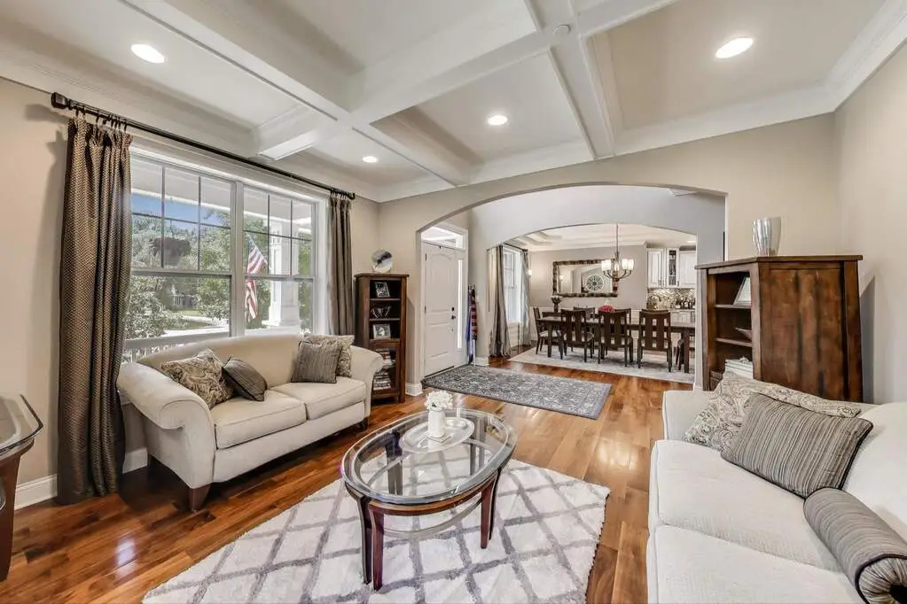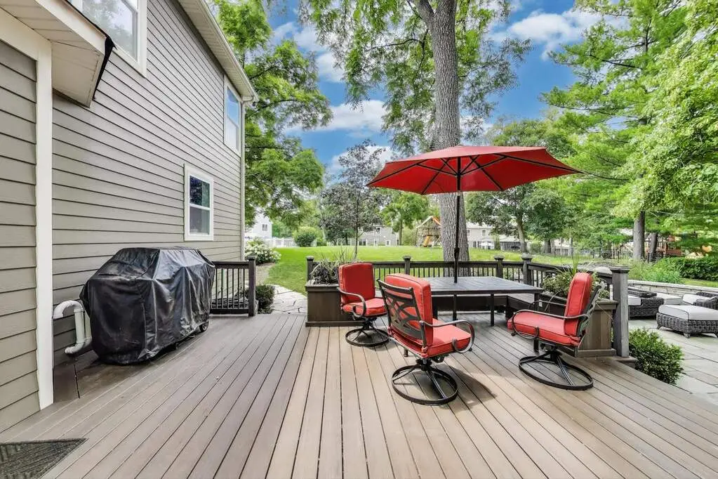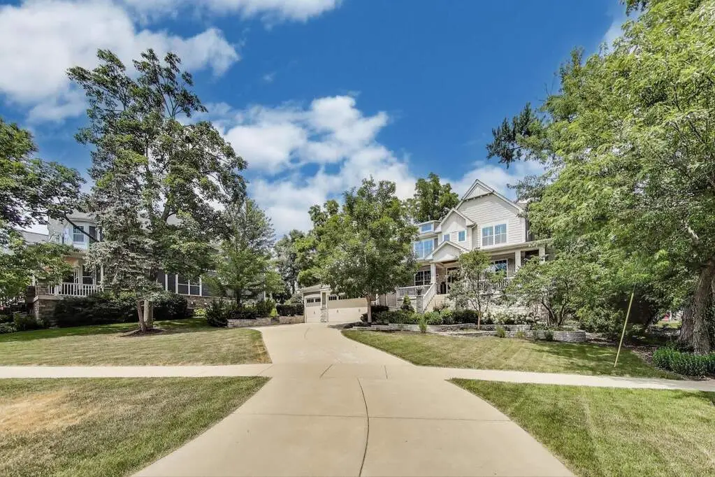 East Coast elegance meets Midwestern charm in this beautifully crafted shingle-style residence, ideally located just blocks from vibrant downtown amenities-including restaurants, boutique shops, the train, and top-rated schools. This one owner home, built in 2014, 5,700 sq.ft approx. was thoughtfully designed for modern living, featuring an open-concept main floor and a spacious backyard ideal for entertaining. From the inviting front porch to the moment you step through the front door, you'll be struck by the attention to architectural detail throughout. The heart of the home is a stunning family room anchored by a stone fireplace, seamlessly flowing into the kitchen and dining area. Expansive windows throughout flood the interior with natural light, creating a warm and welcoming atmosphere. Upstairs, the second level offers generously sized bedrooms, each with excellent closet space and access to multiple bathrooms and a well appointed laundry room. The luxurious primary suite is tucked away in its own private wing and features two walk-in closets, and a spa-inspired bathroom. The fully finished lower level is equally impressive, offering a custom wet bar, stylish ambient lighting, a fifth bedroom, and abundant storage. Step outside to a beautifully landscaped backyard complete with a deck and slate patio-perfect for outdoor gatherings. Additional highlights include an attached three-car garage with a fourth tandem space, offering ample room for vehicles and storage. This exceptional home combines timeless style, modern comforts, and a highly desirable location. A must-see property for discerning buyers.