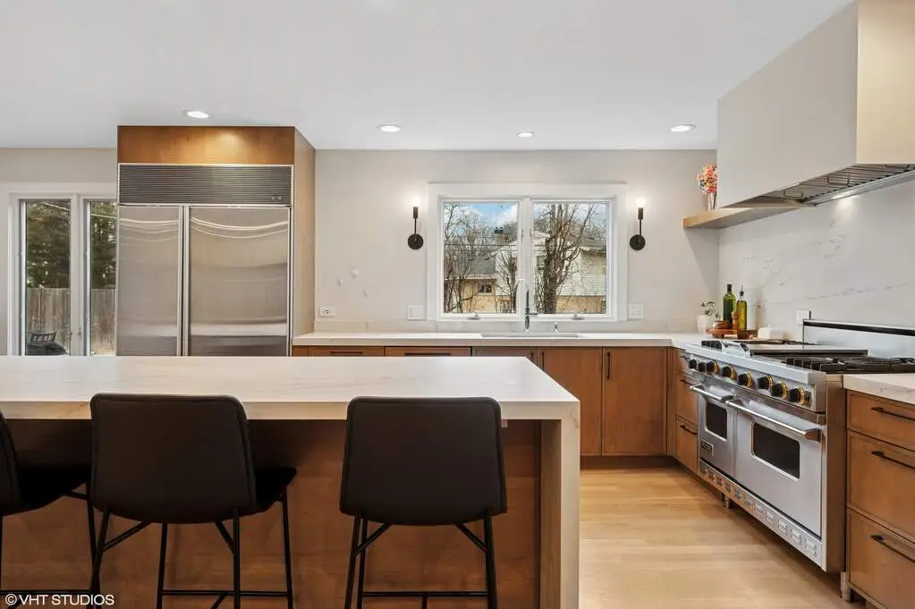 Walk your kids to school and the beautiful Avoca Park playground next door! The interior of this home is infused with gorgeous natural light and a masterfully crafted flow. A spectacular custom kitchen to accommodate any chef, with a large waterfall island, Viking stove, Sub-Zero refrigerator and wet bar. Oversized dining room made for special gatherings and holidays. The picturesque living room is surrounded by vaulted ceilings and a cozy wood burning fireplace. The second floor features four bedrooms and three full bathrooms, a custom laundry room with two washer and dryers that makes laundry a breeze in half the time. Also a large bonus room with skylights that can be used as a playroom, gym, or guest room. Open the double doors to a large primary bedroom on a separate wing of the upper level, with two walk-in closets, spa-like bathroom with dual sinks, stand up shower and jacuzzi tub. The finished basement is almost 2,300 square feet with access to the backyard and an additional fireplace to unwind. Plenty of storage areas including a walk-in cedar closet as well as a shelved area spanning the length of the lower level. Get creative in a current music studio that can easily be used as another office or bedroom. The large, fenced-in yard is professionally landscaped with blooming perennials that highlight the beauty of this outdoor space. Gather your loved ones and friends as you venture out on the brick patio, with plenty of space for entertaining or enjoying a quiet evening in the backyard of this tranquil East Glenview neighborhood home. Take a stroll or bike to the Harms Woods Forest trail just minutes away. With easy access to the highway, Old Orchard mall, Wilmette Recreation Center and more, don't miss an opportunity to own this one-of-a-kind home in the New Trier School district, contact your agent and schedule a showing today!