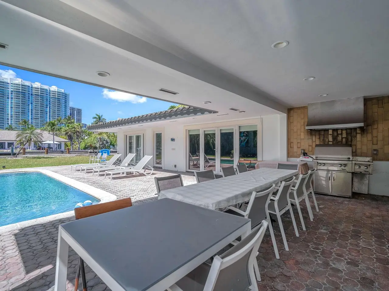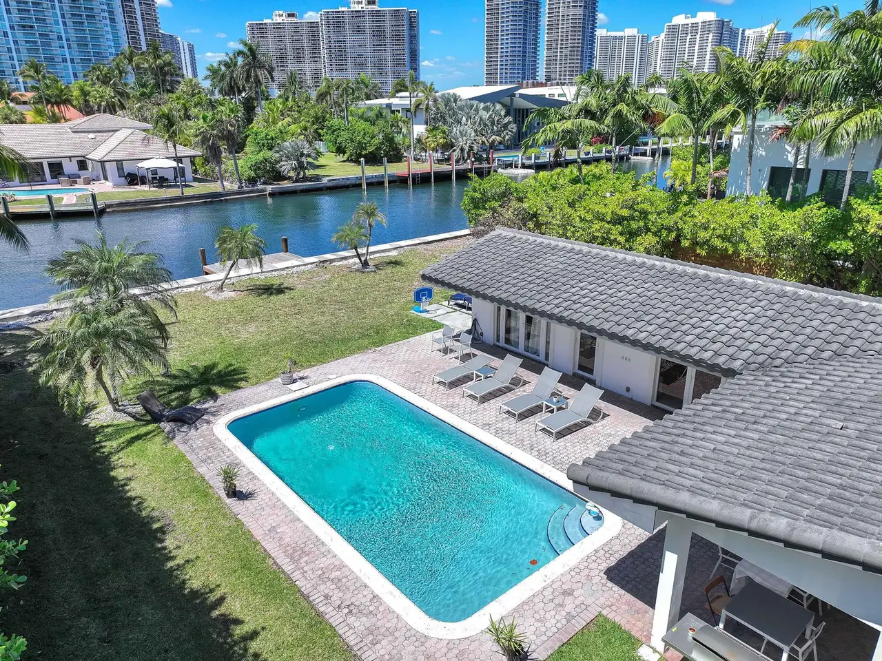 Beautiful desired Golden Beach updated home on the water. Two-story spacious home features, a guest house, heated pool & 100-foot sea wall on the intercoastal for a large yacht. Well-kept home has a large kitchen with breakfast counter, stainless steel appliances, gas stove, kitchen island & new cabinetry. Huge living area with French doors to backyard, pool & covered outdoor dining area with gas grill, great for entertaining large parties. Ample room by pool area for sunbathing. Formal dining & living areas, playroom & all updated bathrooms. Upstairs bedrooms have wood floors, downstairs has elegant white tile throughout. Large driveway for 8-10 cars. Town of Golden Beach offers a clubhouse, private beach, tennis, pickable, basketball & their own police department. Town building spa/gym.